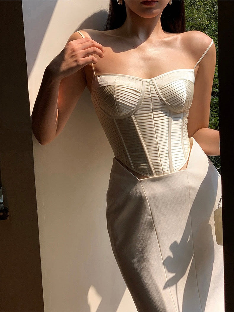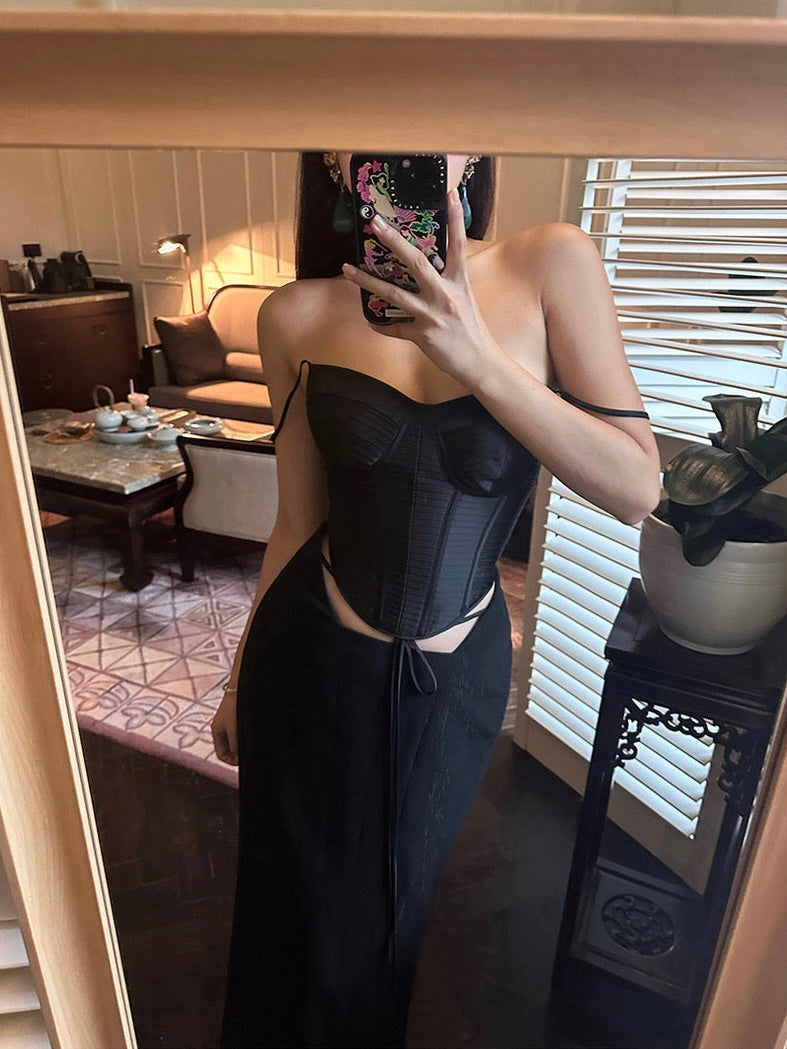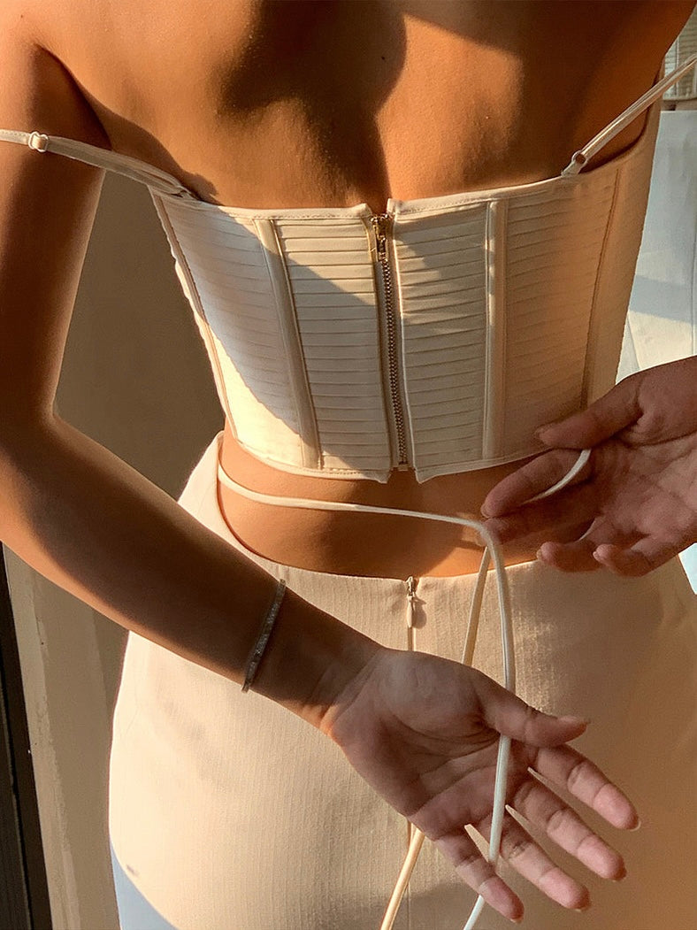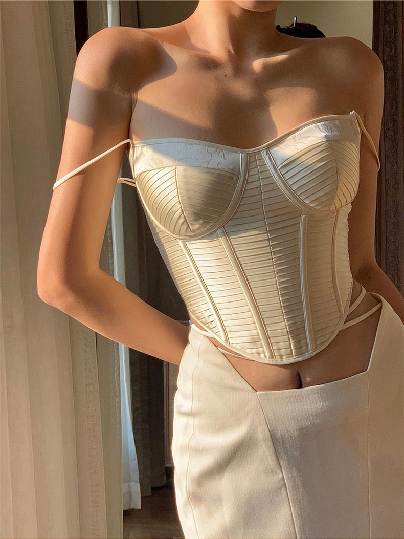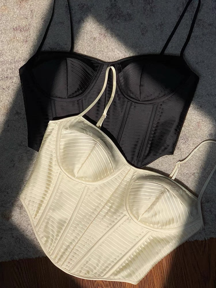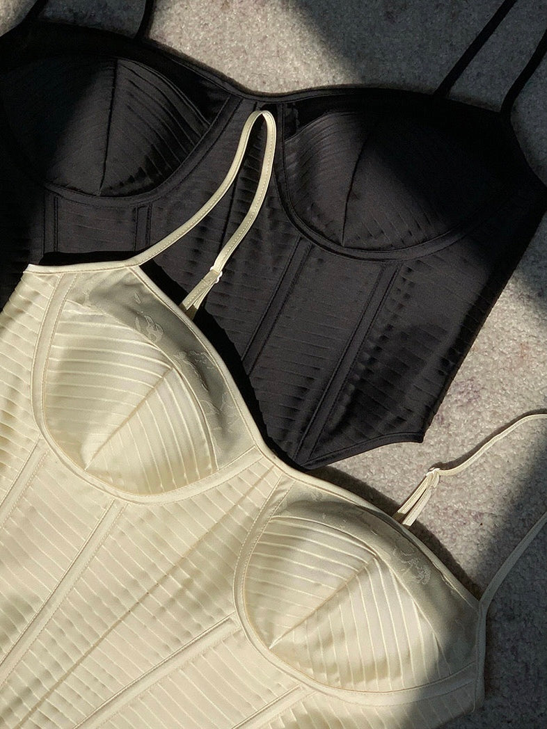 We built the ‘Marini’ top to feel beautifully structured and unmistakably sculpting, with dimensional boning that traces the body’s curves in the most flattering way, then finished it in a luxe mix of glossy satin and textured jacquard for a richer, more elevated depth.