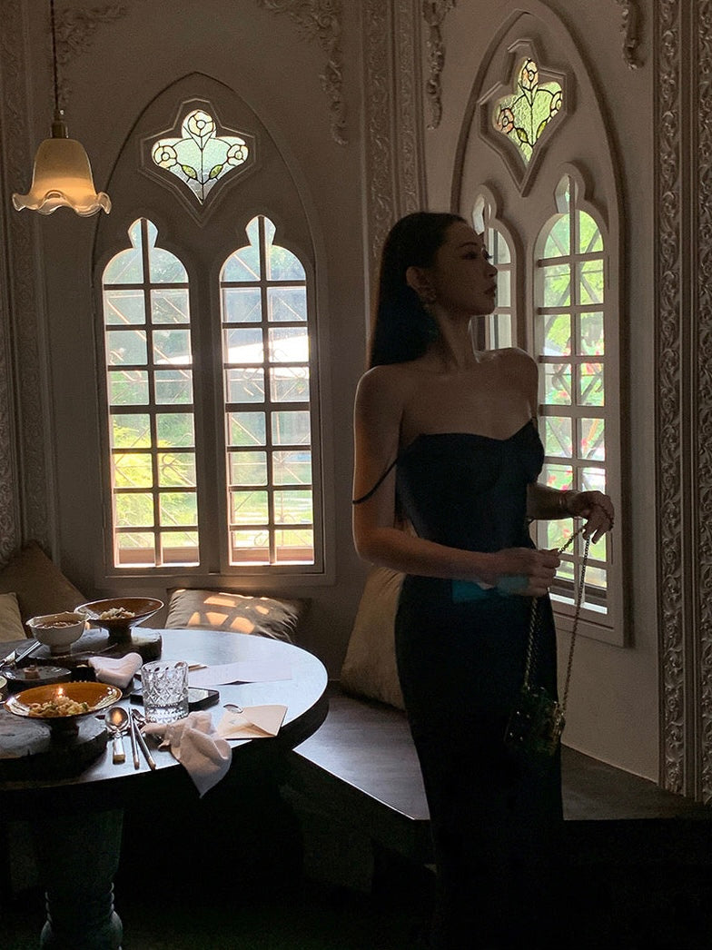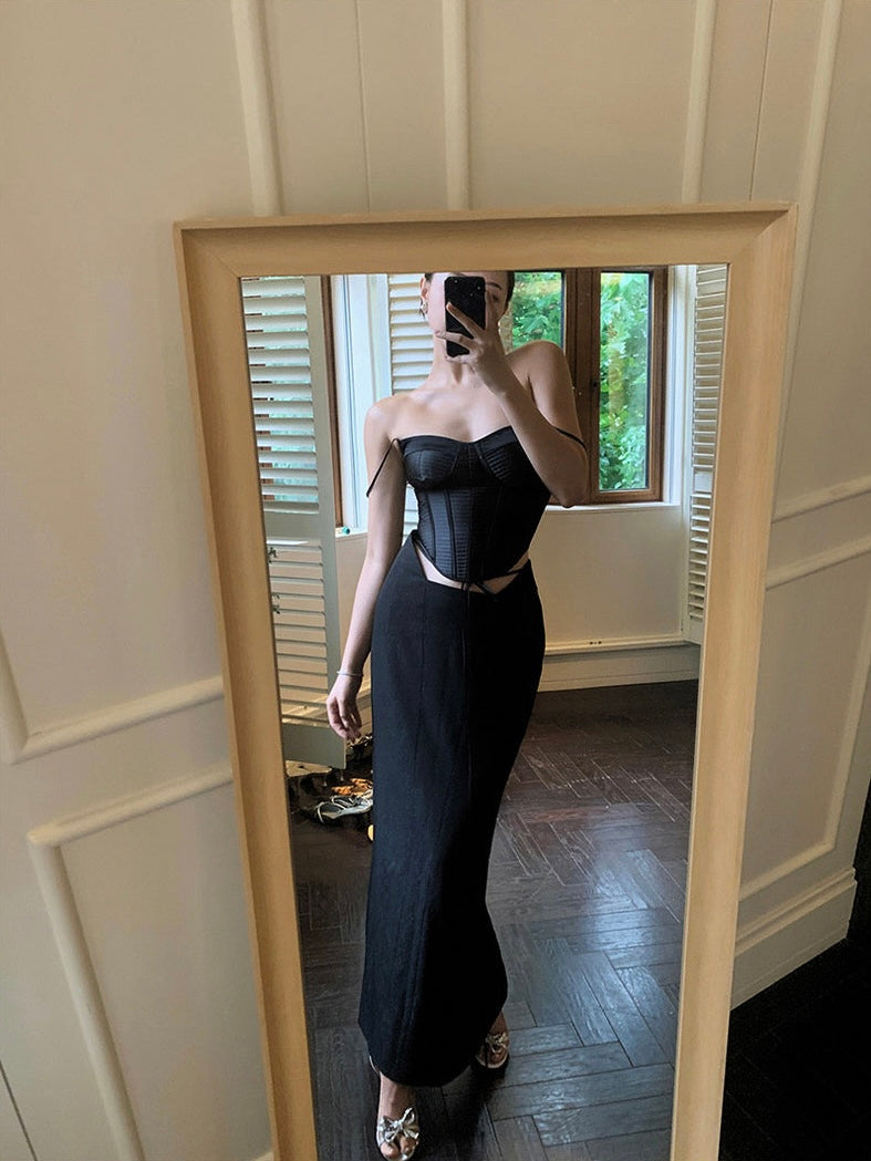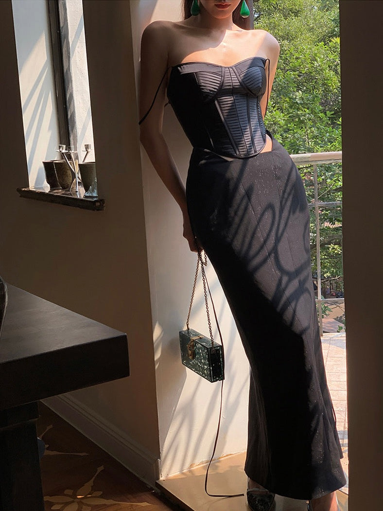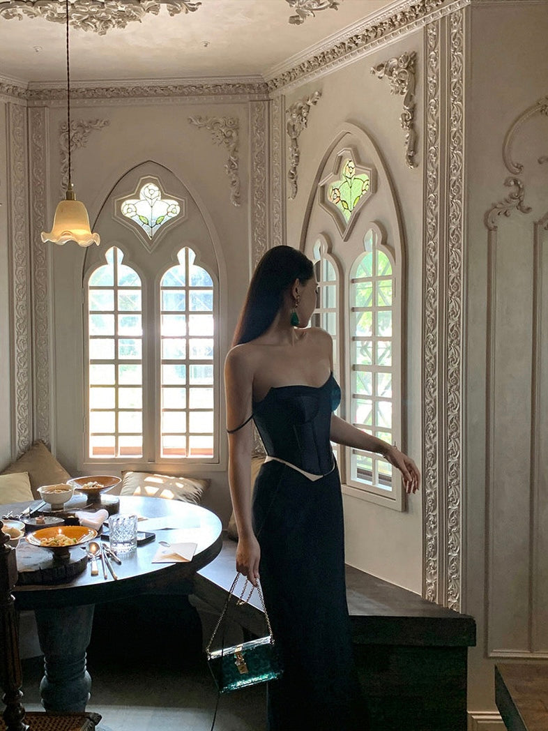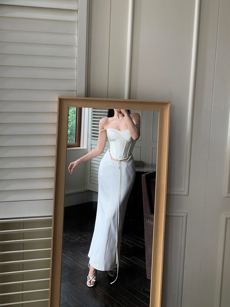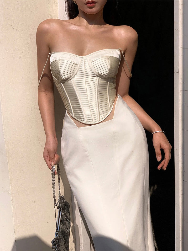 We built the ‘Marini’ top to feel beautifully structured and unmistakably sculpting, with dimensional boning that traces the body’s curves in the most flattering way, then finished it in a luxe mix of glossy satin and textured jacquard for a richer, more elevated depth.
