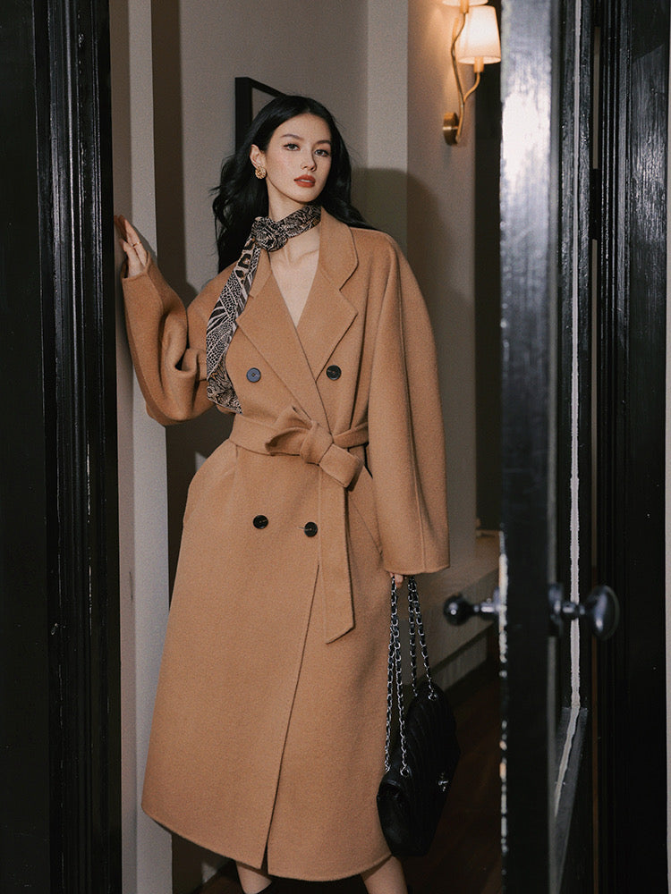 This drop-shoulder coat offers a relaxed, versatile fit that flatters without overwhelming your frame. The refined lapels strike a perfect balance between formal and approachable, while adding a belt transforms it into a chic, robe-like silhouette with a touch of romantic femininity. The generous shoulder width makes it easy to layer with any style of base.