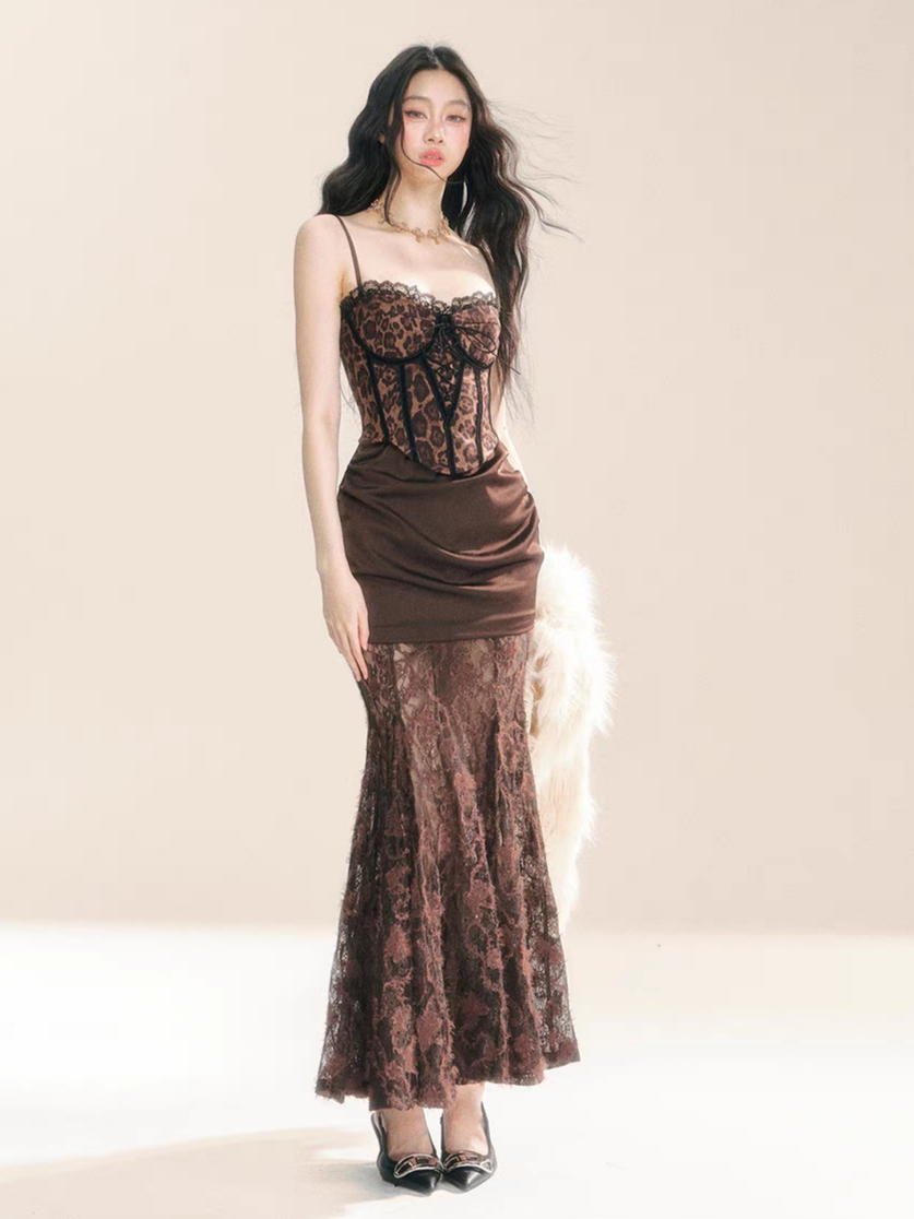 The Gisela Lace Maxi Dress combines bold leopard prints with elegant lace detailing for a modern femme-fatale look. Featuring a structured corset bodice with a flattering sweetheart neckline and delicate lace trim, this dress effortlessly blends seduction with sophistication.