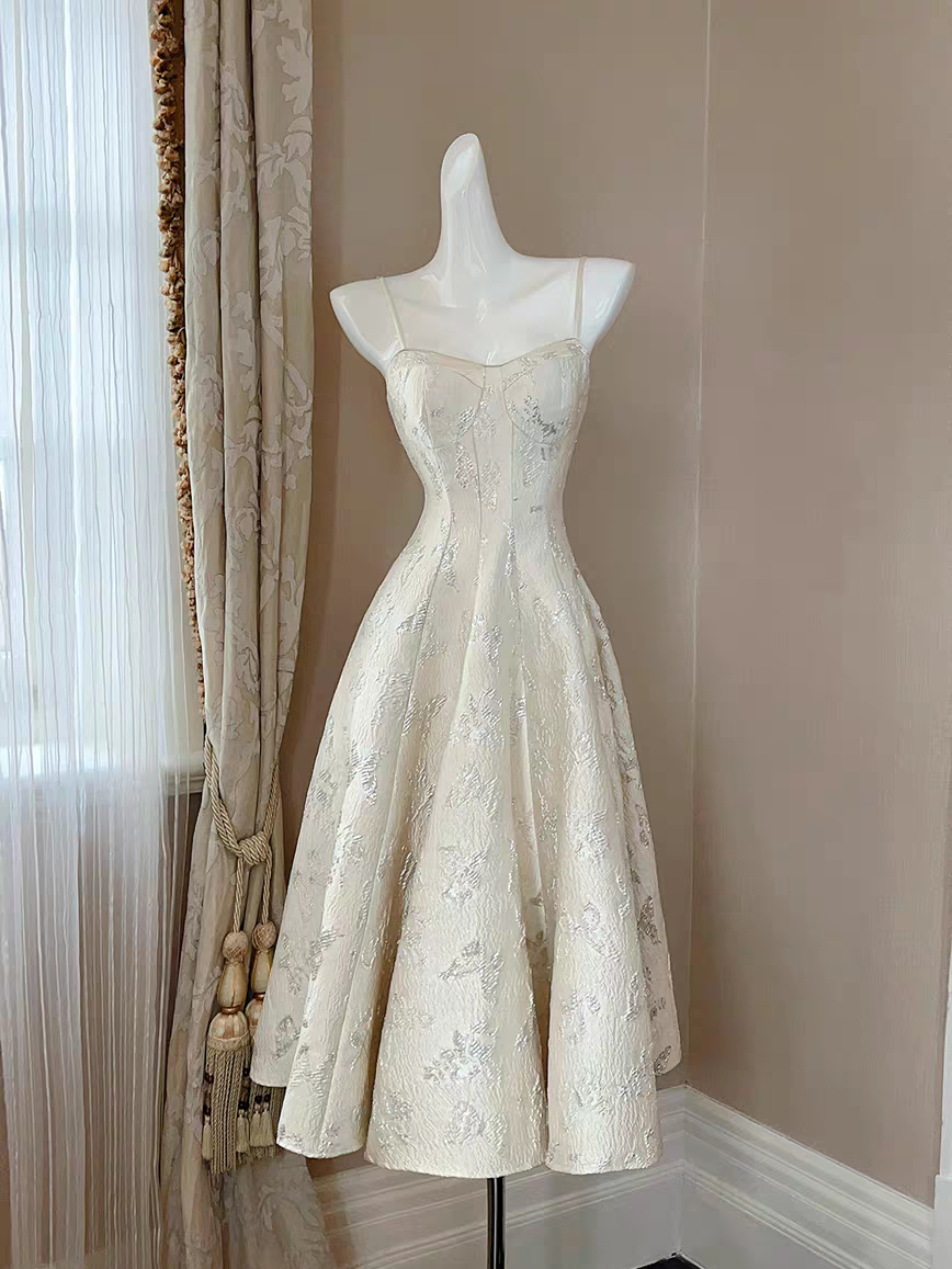 Crafted with meticulous care from exquisite silver-thread jacquard fabric, this dress brings a shimmering elegance to every twirl. The intricate 3D design of the fabric creates a rich, textured dimension that beautifully complements the voluminous A-line silhouette, perfect for those dreamy princess moments. As you wear it, you’ll feel light as air, with a fluttering grace that echoes the very movement of a butterfly in flight.