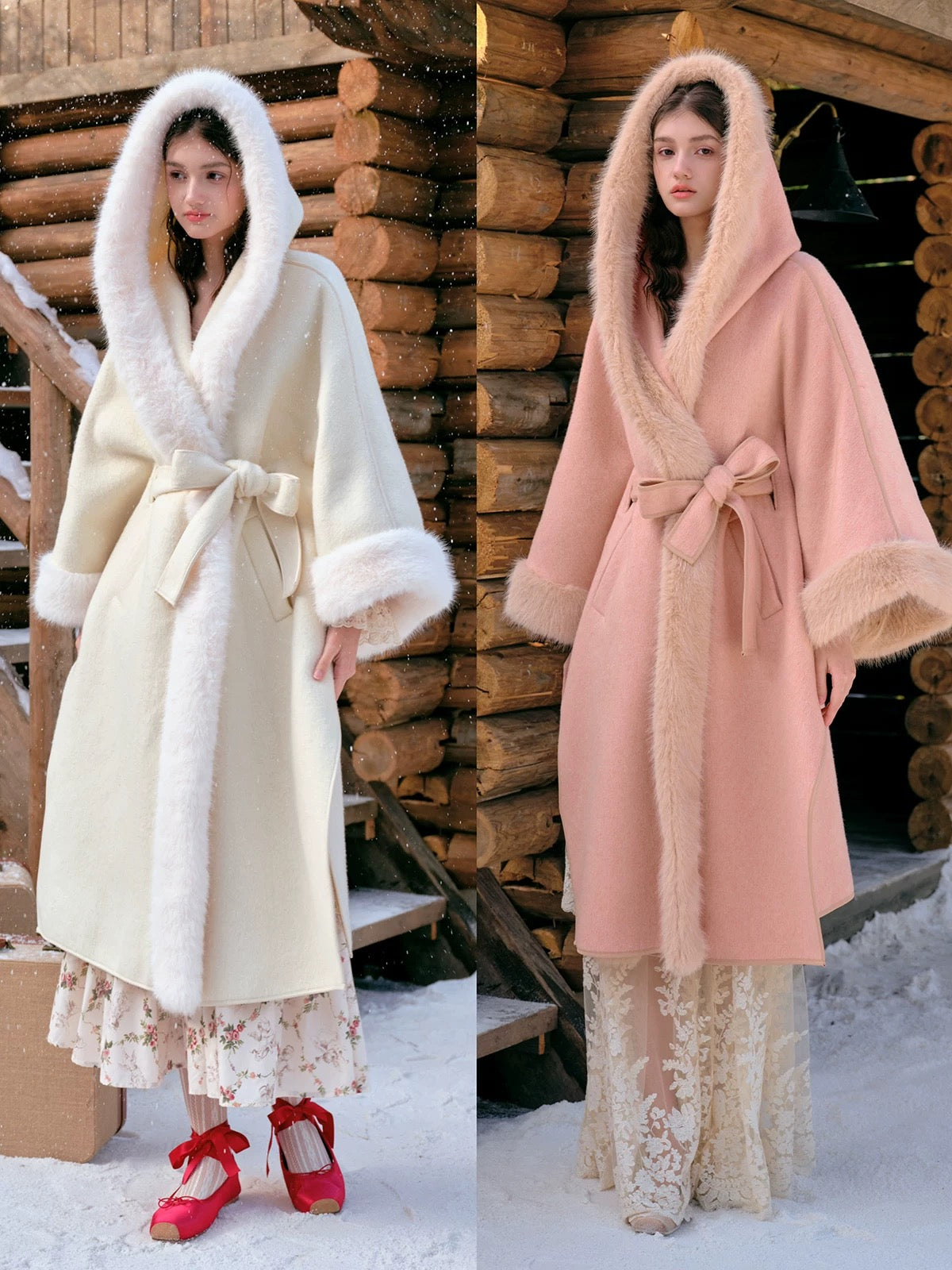 Crafted from a double-faced wool blend, the fabric feels thick and toasty yet remains buttery soft to the touch. We added faux fox fur trims for that plush, cloud-like texture that’s both smooth and full of depth — luxury without the fuss.