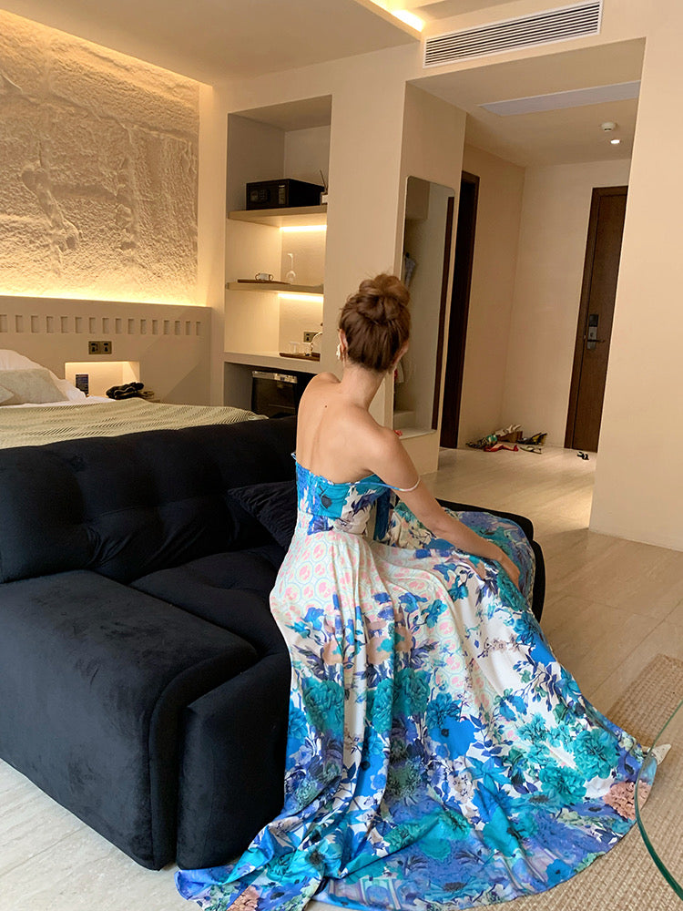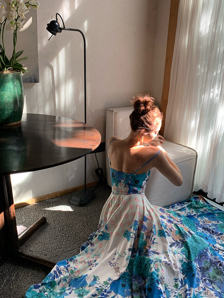 The hem sways with each step, evoking the gentle rhythm of the sea, making this dress ideal for beach strolls or exploring a seaside town. It offers a sense of effortless elegance, combining light, breathable fabric that drapes beautifully against the skin with a relaxed, vacation-ready charm.