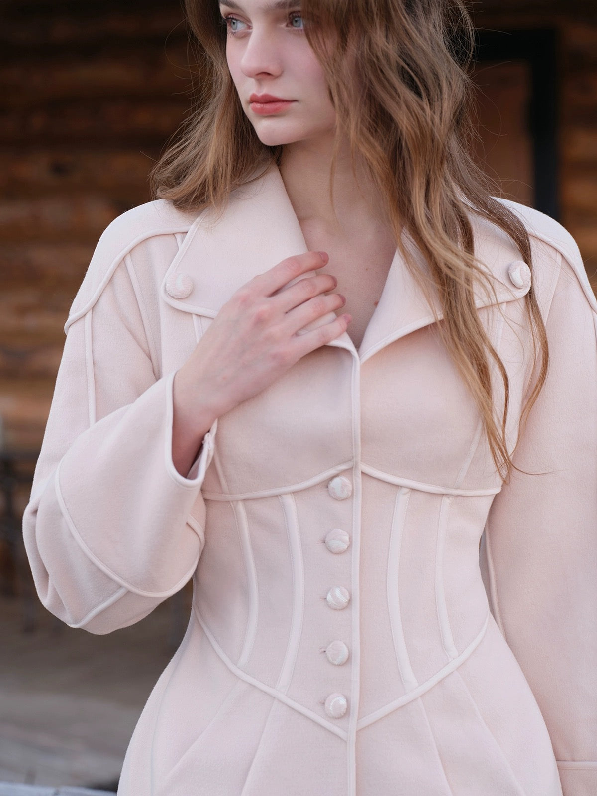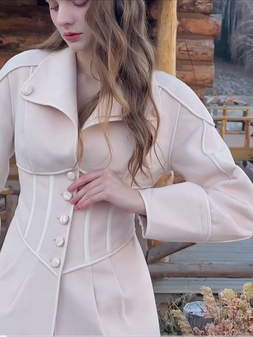 Elegant jacquard buckles in matching colors add a refined touch to the design, while the classic large lapels enhance the shoulder and neckline, offering a retro yet chic look. The waist-shaping girdle, complete with built-in fish scale bones, ensures stability and accentuates the waist for a flattering, contoured shape.