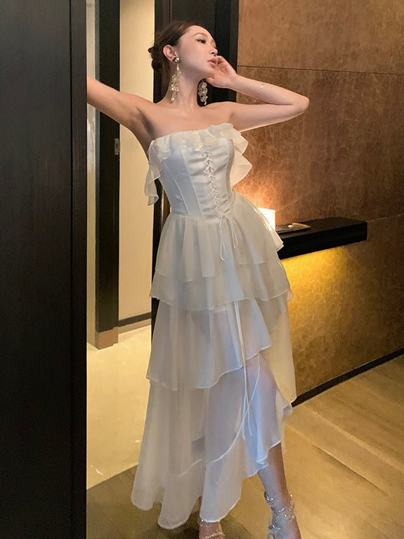 This asymmetrical gauze fabric captures the poetic beauty of soft, misty textures. The delicate ruffles evoke the lightness and romance of summer, while the embroidered eyelets add a refined, three-dimensional touch. Made from 100% high-elastic yarn for comfort and durability.