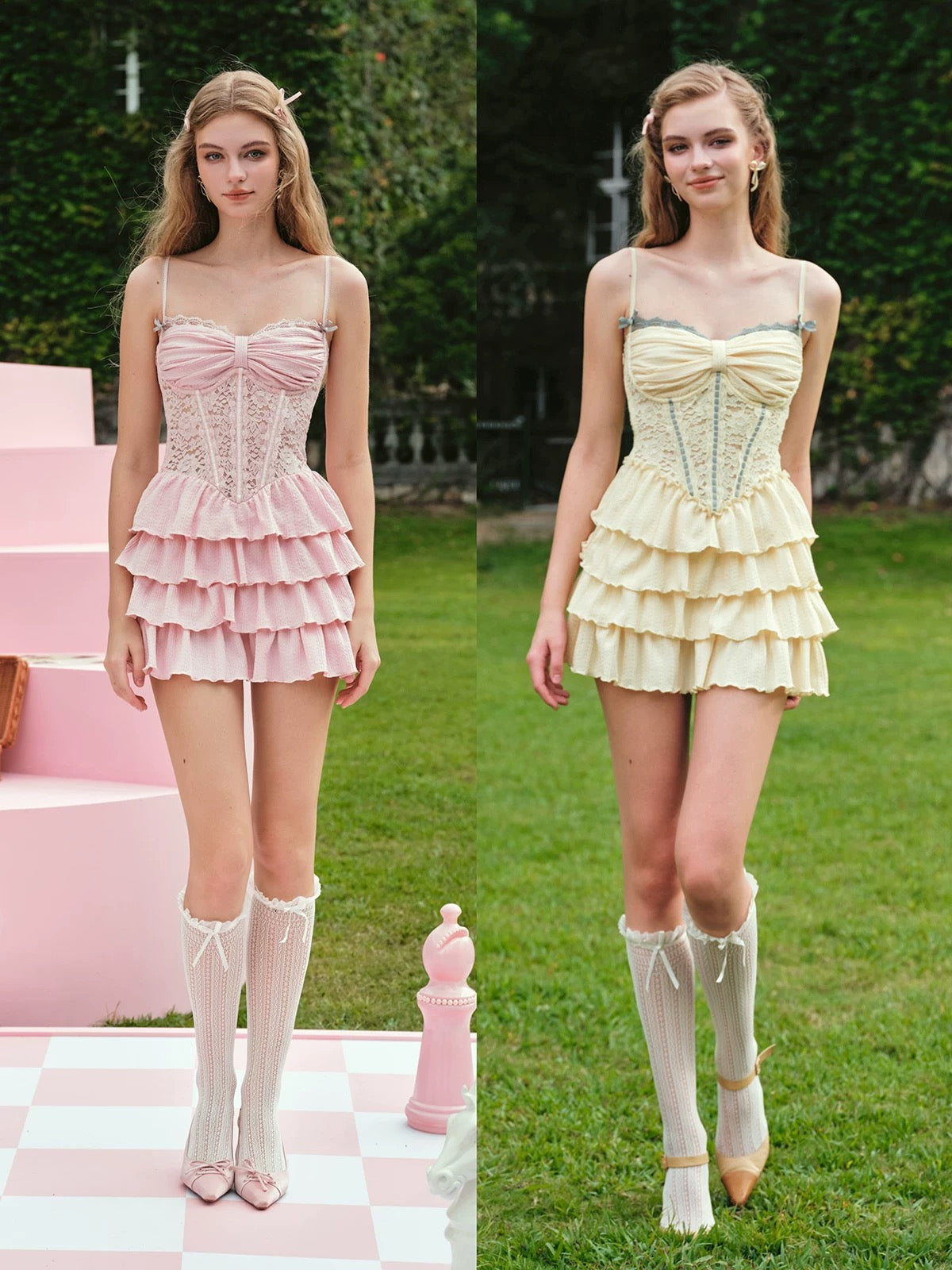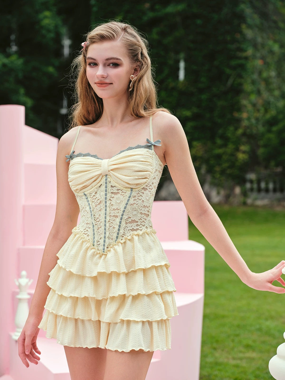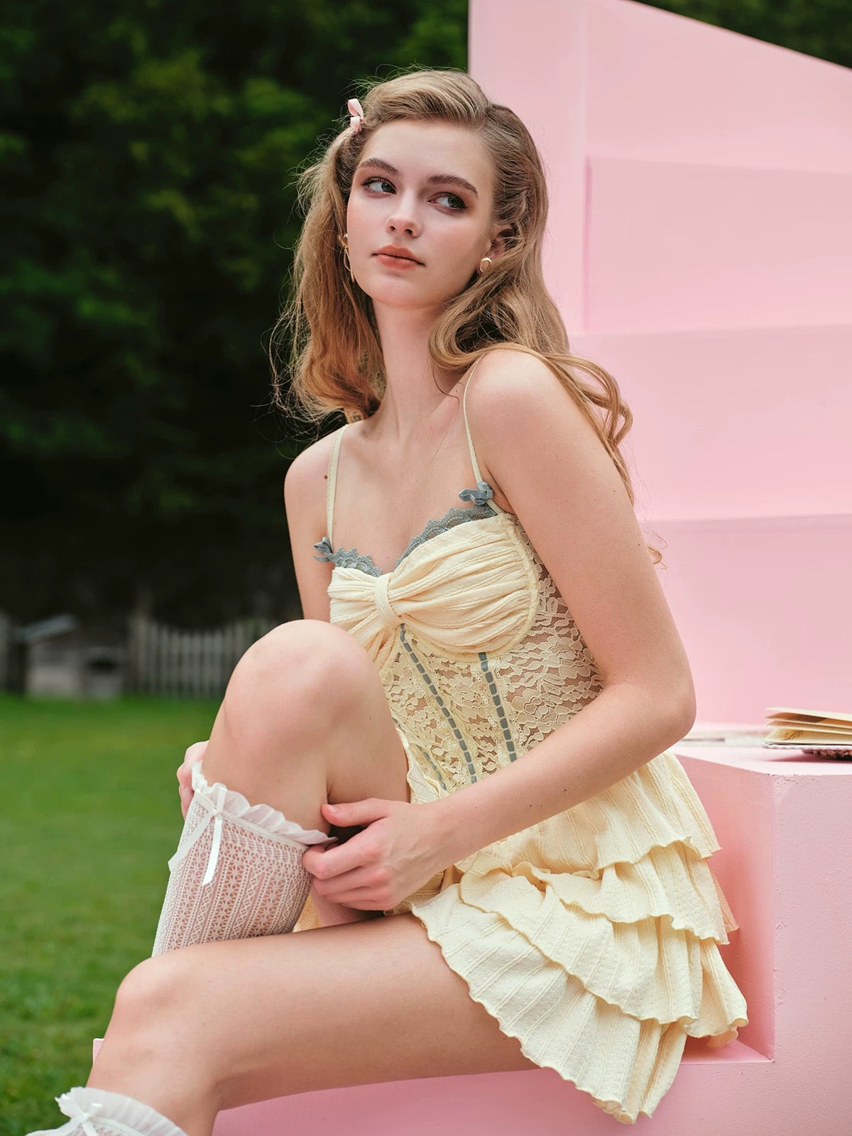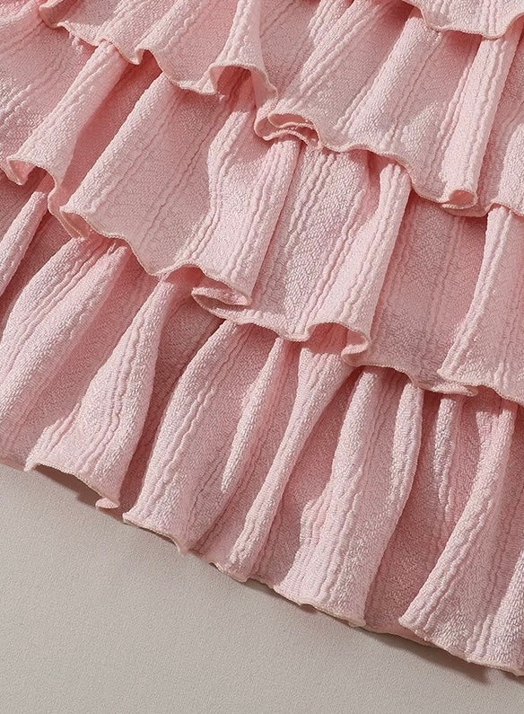 Below, tier upon tier of jacquard-knit ruffles flutter with each step, adding volume exactly where you want it and spotlighting the waist-to-hip curve. The fabric feels supple and gentle against the skin, while the full lining keeps everything smooth and comfortable all day long.
