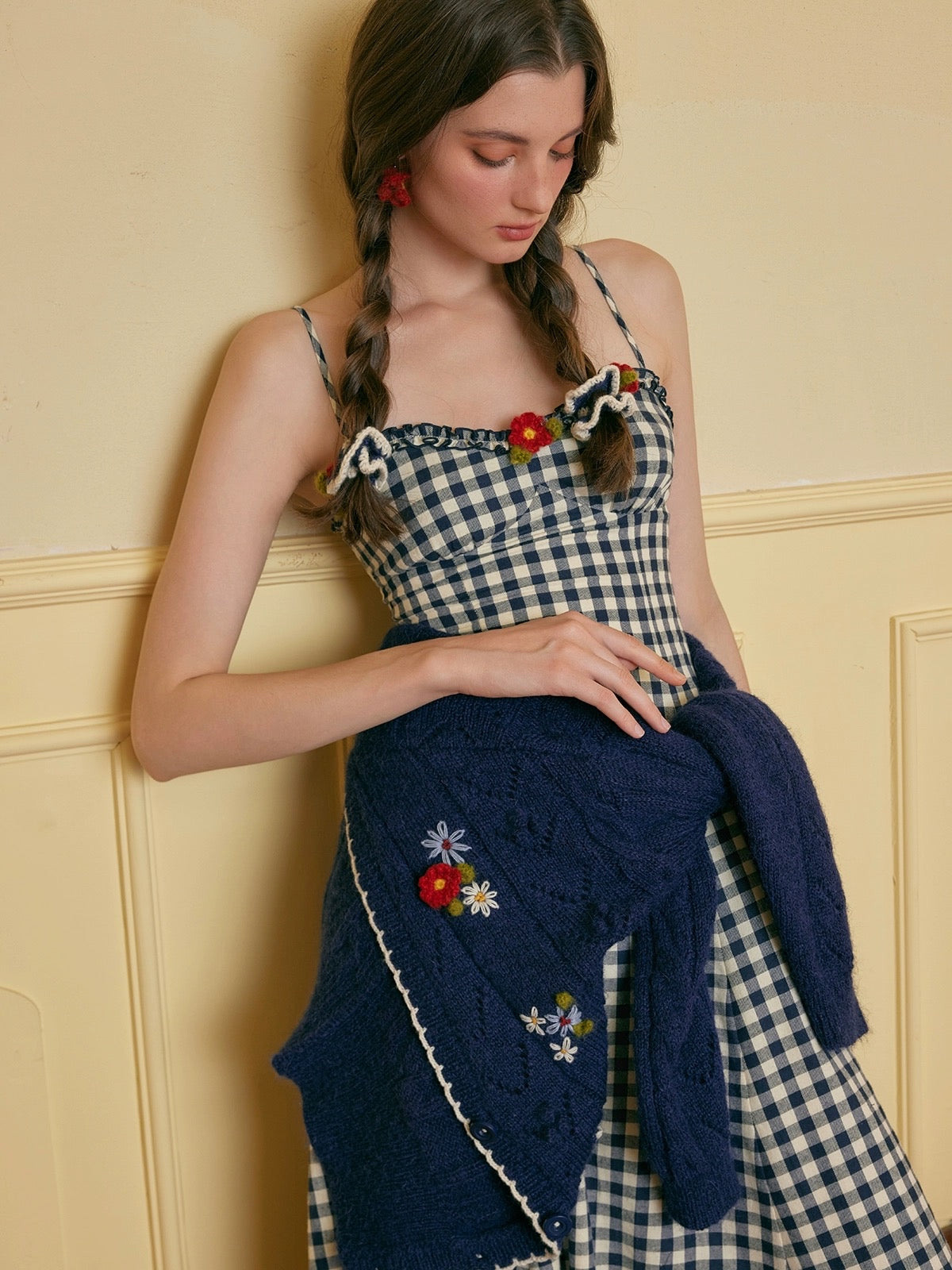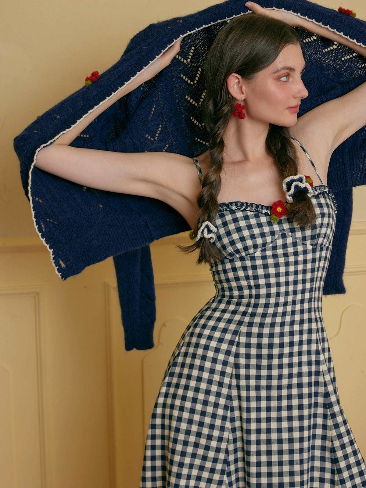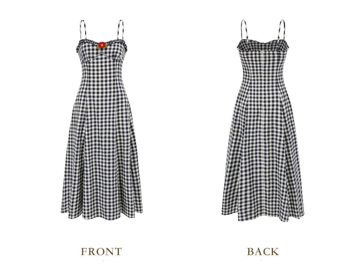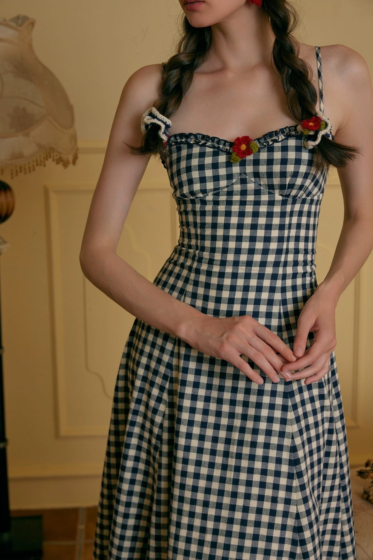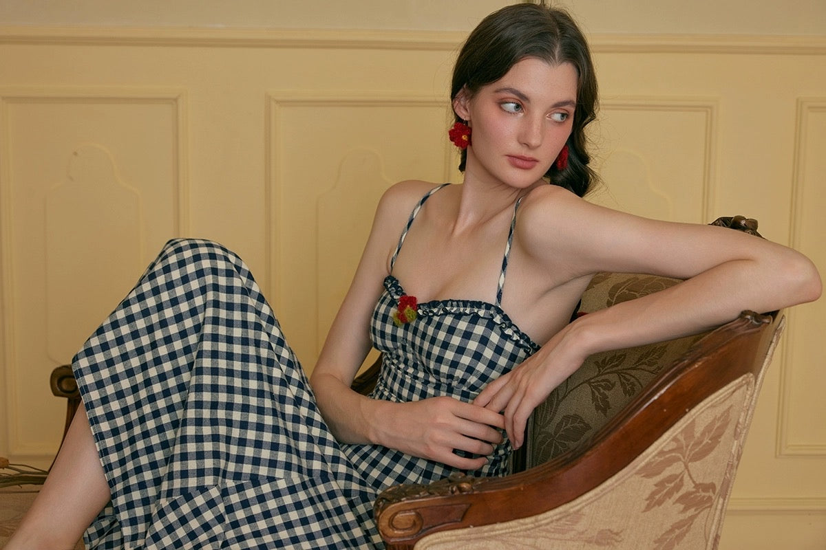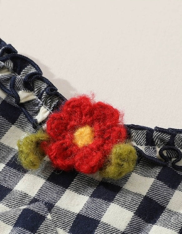 Meet ‘Carmila’, a dreamy duo where comfort meets charm. Crafted from 100% brushed cotton in a delicate gingham pattern, the dress feels buttery-soft, smooth against the skin, and oh-so breathable thanks to its airy cotton voile lining, perfect for warm days or cozy layering. Ruched at the bust for a flattering fit, with playful ruffle trim at the neckline, adjustable straps because we know the perfect fit matters. A hand-crocheted flower brooch adds that sweet, eye-catching touch. And the back zip? Smooth and easy, so you’re out the door in seconds.