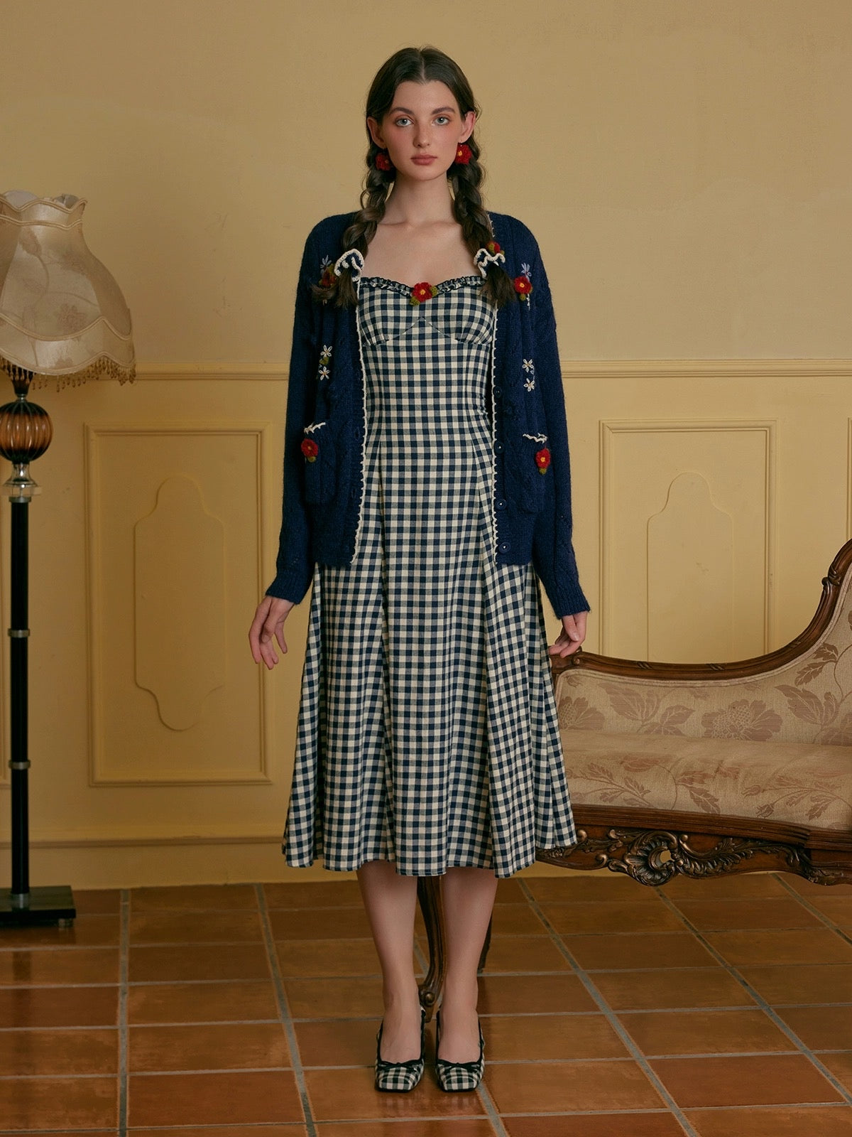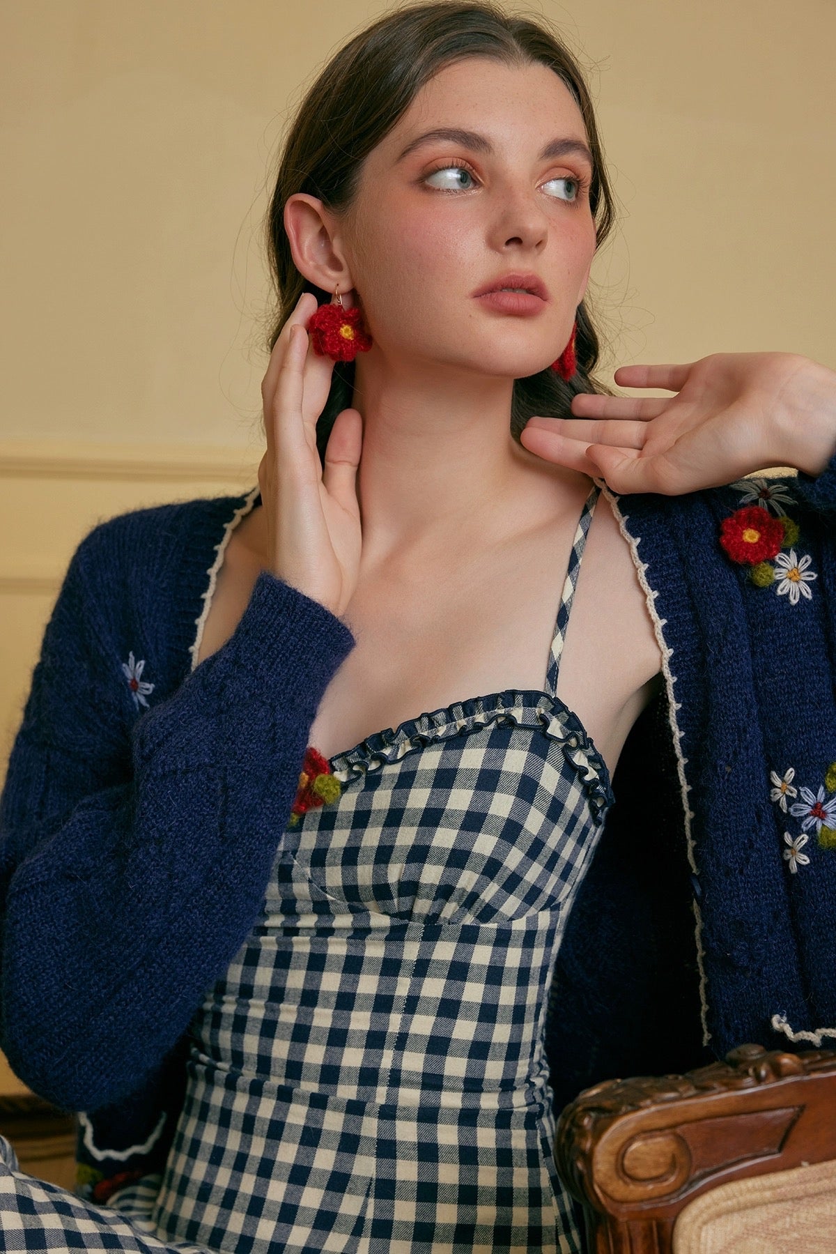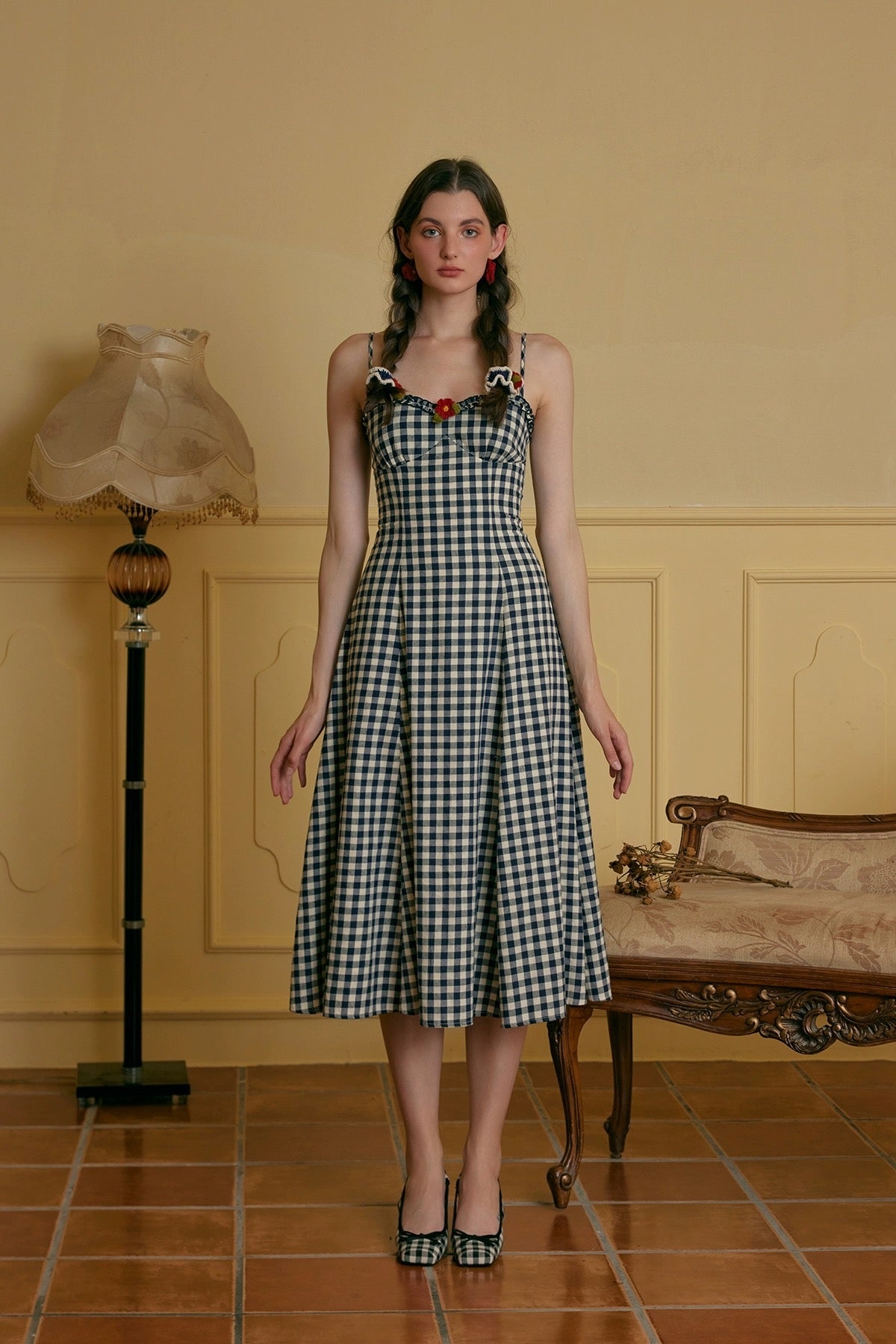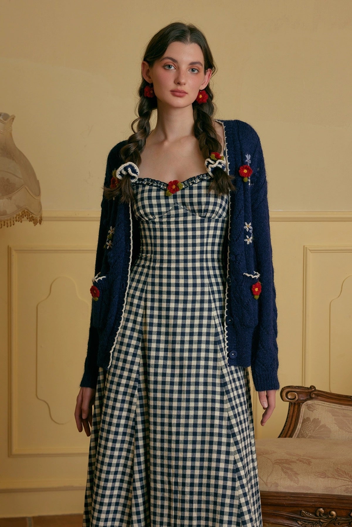 Meet ‘Carmila’, a dreamy duo where comfort meets charm. Crafted from 100% brushed cotton in a delicate gingham pattern, the dress feels buttery-soft, smooth against the skin, and oh-so breathable thanks to its airy cotton voile lining, perfect for warm days or cozy layering. Ruched at the bust for a flattering fit, with playful ruffle trim at the neckline, adjustable straps because we know the perfect fit matters. A hand-crocheted flower brooch adds that sweet, eye-catching touch. And the back zip? Smooth and easy, so you’re out the door in seconds.