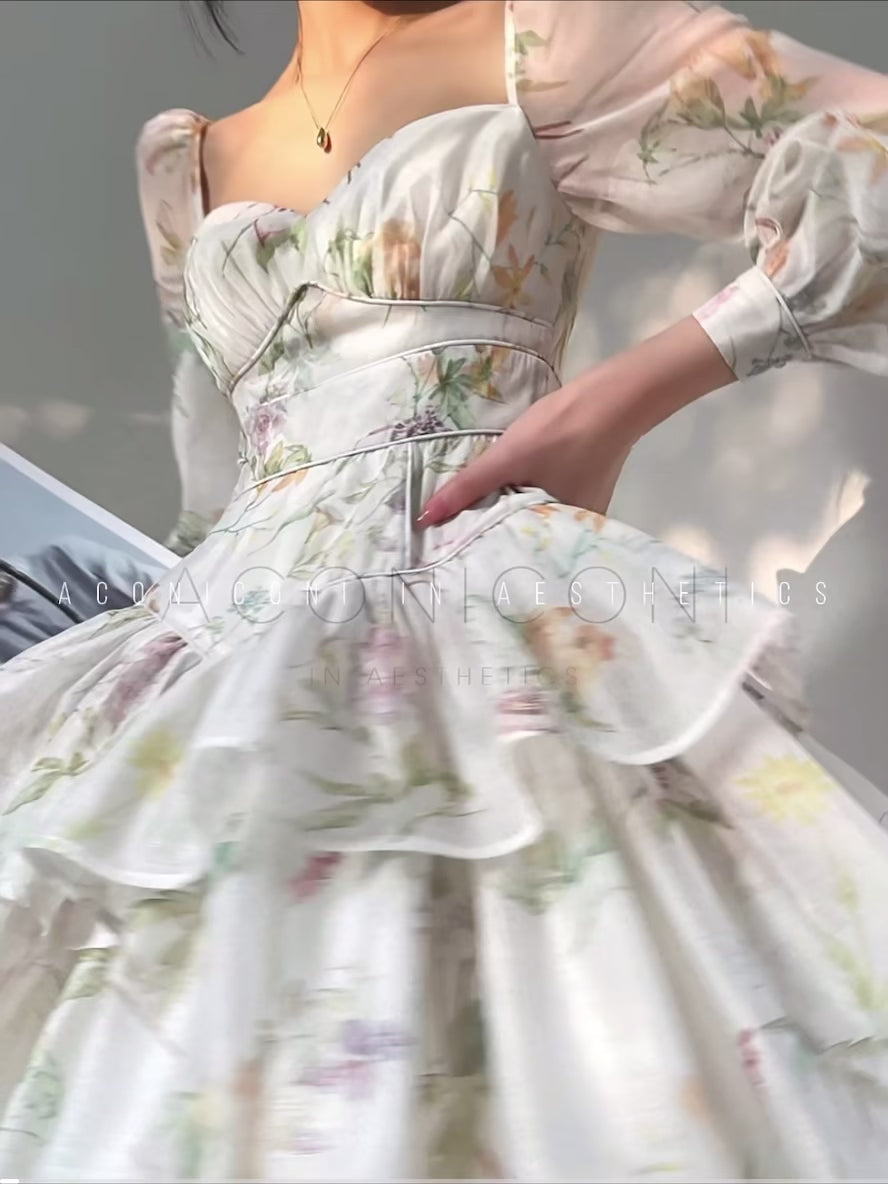 Crafted from delicate imitation Tencel with a subtle sheen and just the right touch of structure, this floaty number balances softness and silhouette like a charm. The buttery beige fabric is lightly marbled and blooming with painterly florals—so ethereal, they almost look like they’re drifting across the fabric.