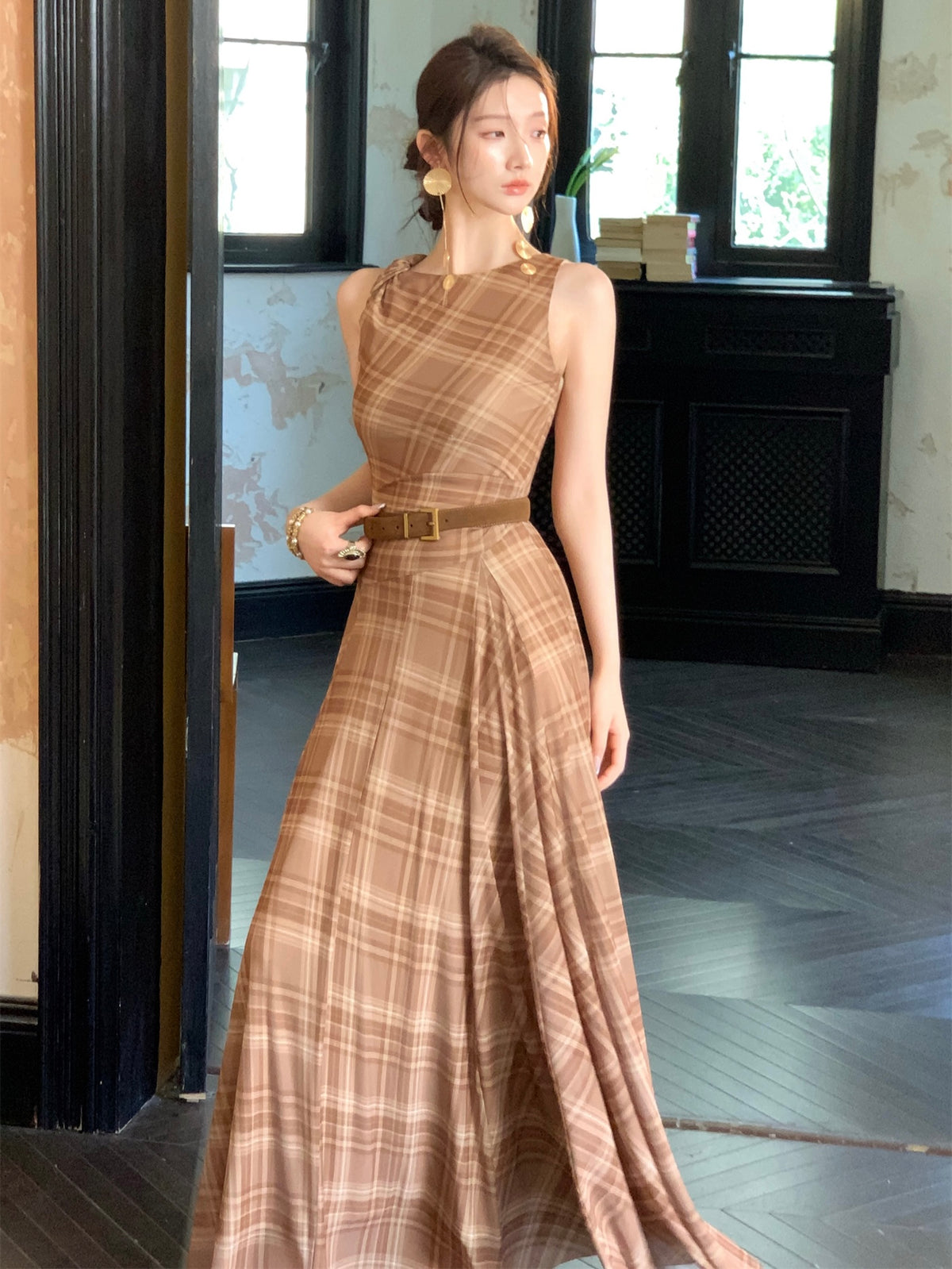 You get two stunning moods to choose from: the vintage charm of khaki-brown checks or the soft serenity of water-wave blue. Both are made from a lightweight mesh blend with just the right hint of stretch, keeping the print crisp, the silhouette structured, and the fit effortlessly flattering. We lined it with a matte, tonal sand-washed rib fabric that feels breathable and wearable through warmer days.