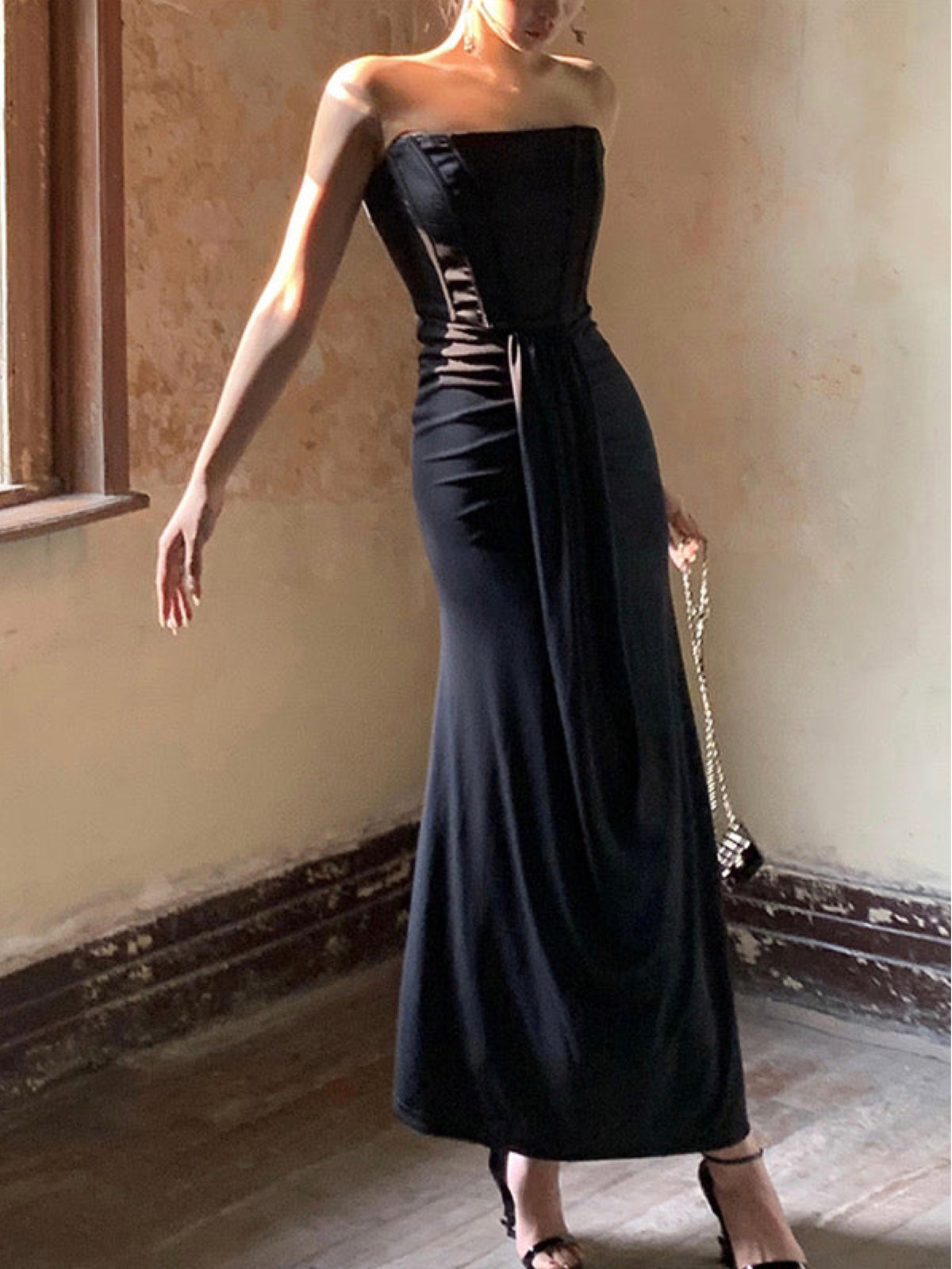 The streamlined neckline gracefully frames the collarbones while subtly covering side curves, softening the shoulders and creating a refined silhouette with just the right amount of allure.