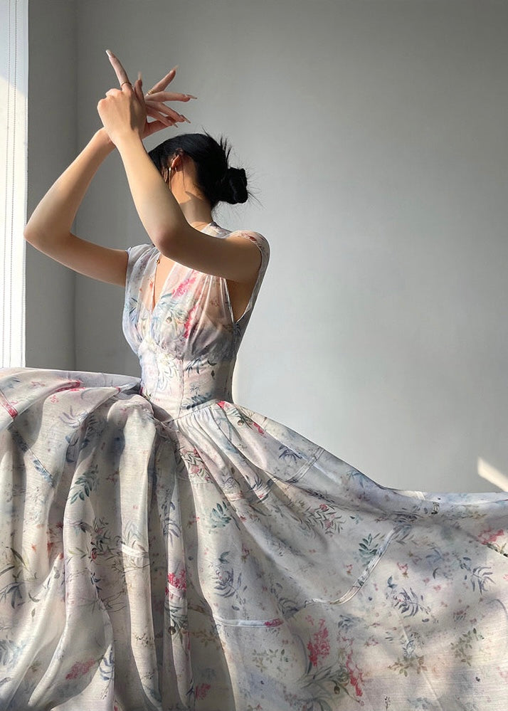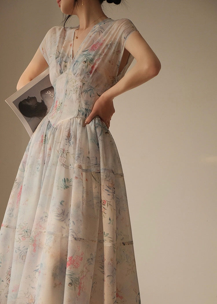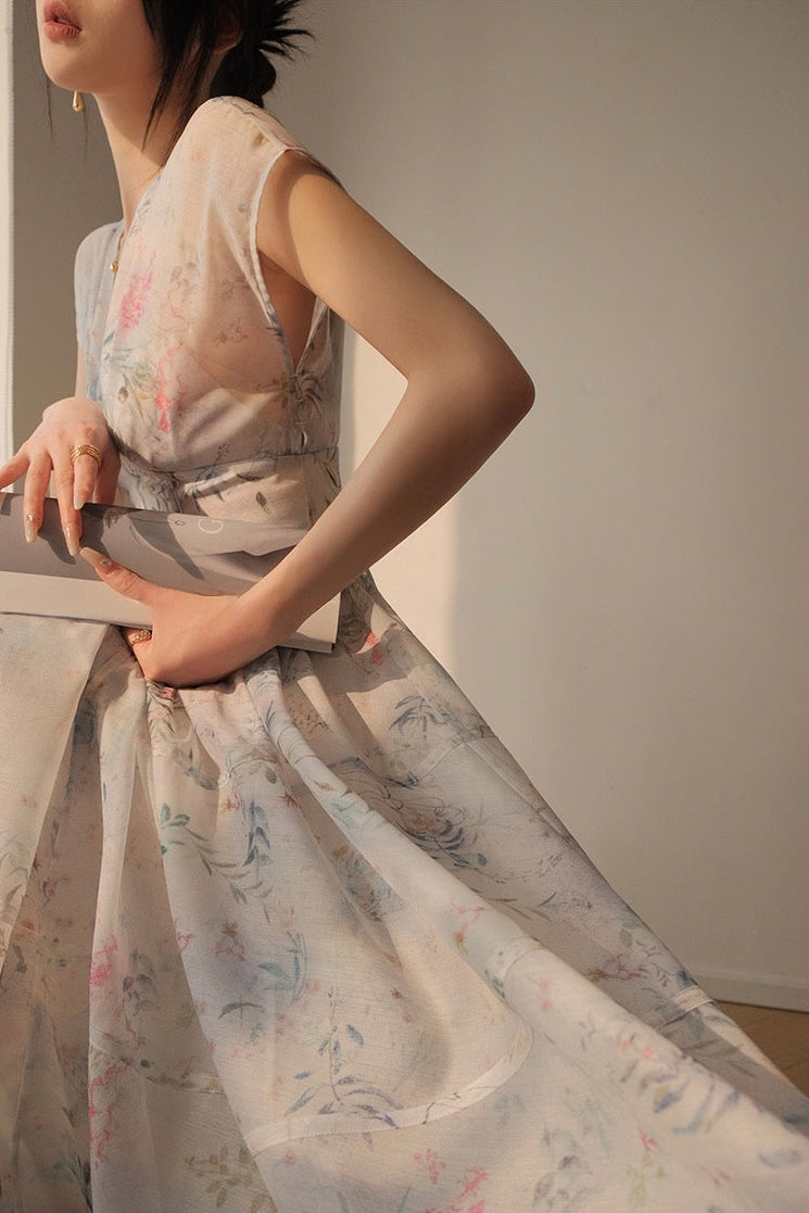 The Oxanna dress is a quiet kind of elegance, wrapped in poetic charm. Crafted from luminous faux Tencel, the ‘Oxanna’ features a delicate ink-wash floral prints—soft yet full of depth, like petals dancing under moonlight.
