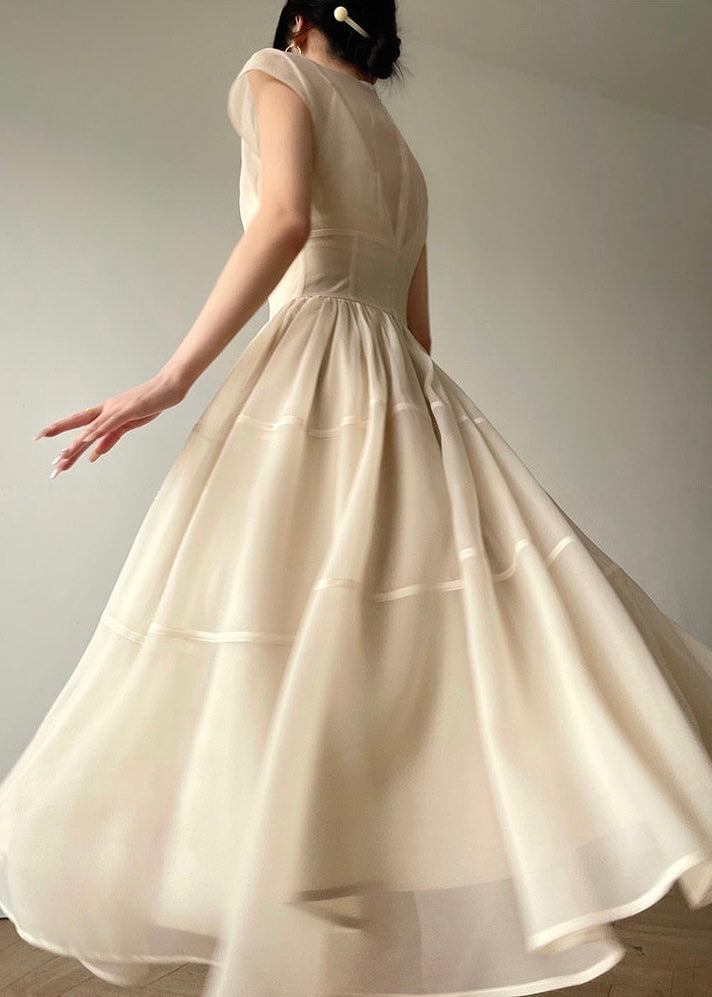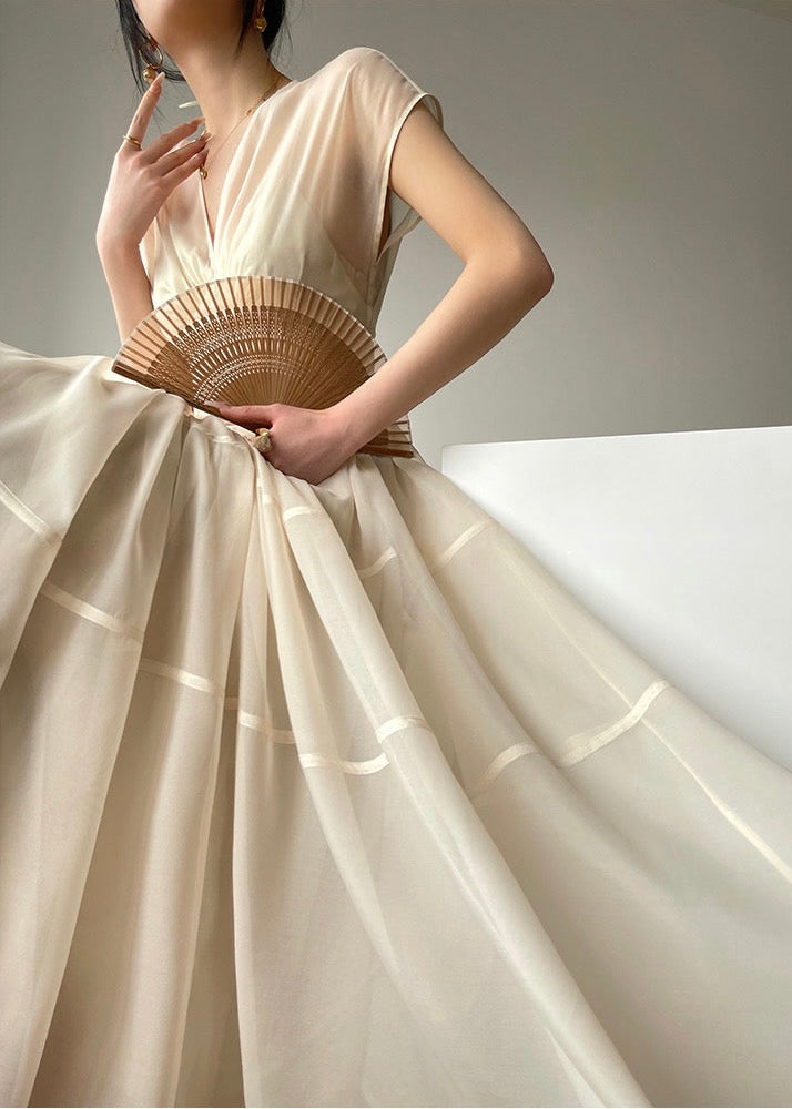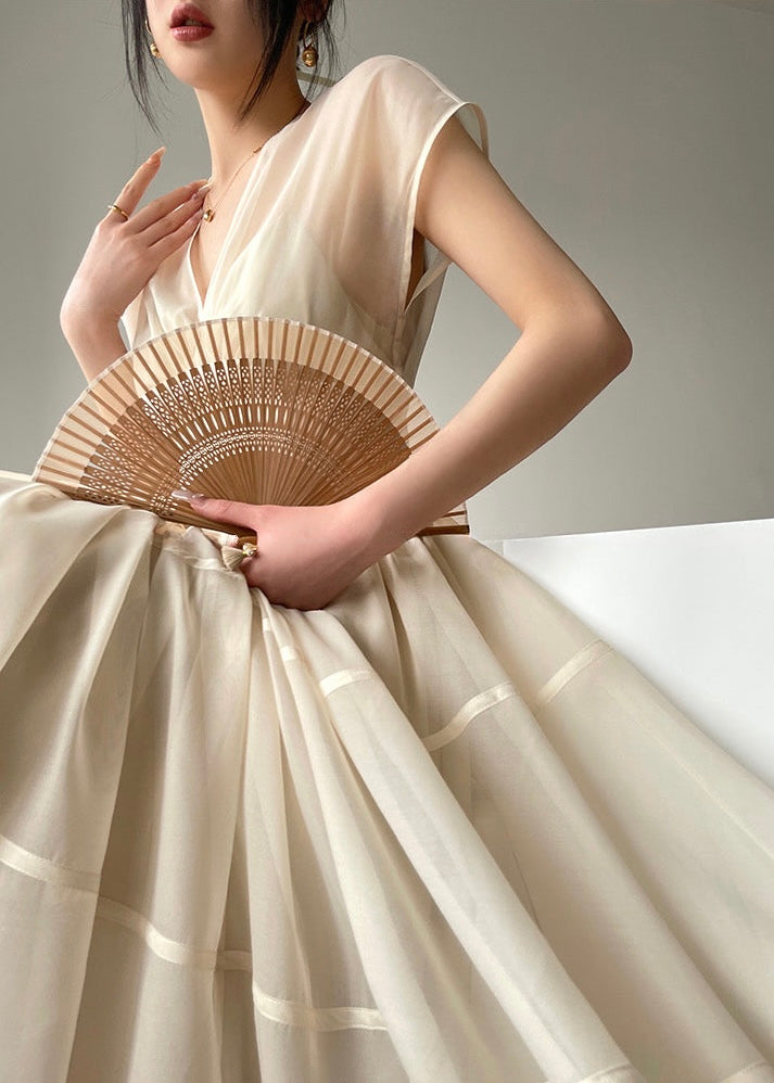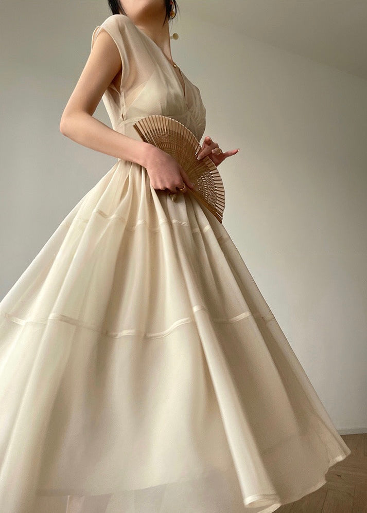 The creamy almond-beige tone? Silky, warm, and quietly elegant—an instant glow-up for your skin. Wide shoulders with a sleeveless cut flatter every frame, while the V neckline softly elongates the neck. We added built-in cups for support and adjustable straps (because we believe fit is everything). The tailored X-line waist cinches gently, sculpting a feminine silhouette without feeling tight.