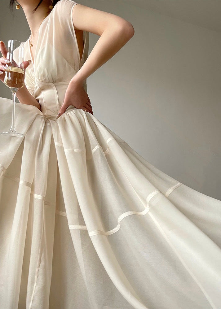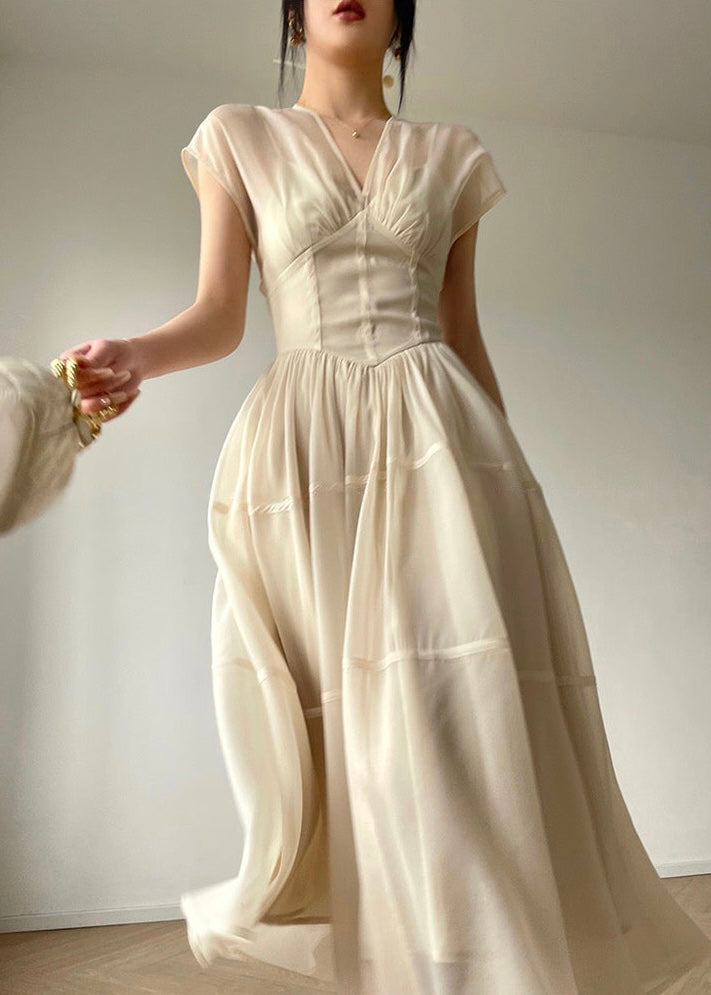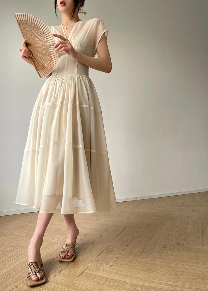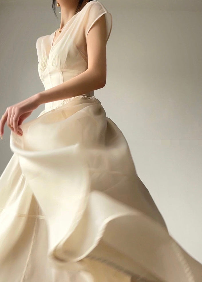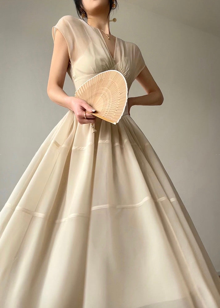 The creamy almond-beige tone? Silky, warm, and quietly elegant—an instant glow-up for your skin. Wide shoulders with a sleeveless cut flatter every frame, while the V neckline softly elongates the neck. We added built-in cups for support and adjustable straps (because we believe fit is everything). The tailored X-line waist cinches gently, sculpting a feminine silhouette without feeling tight.