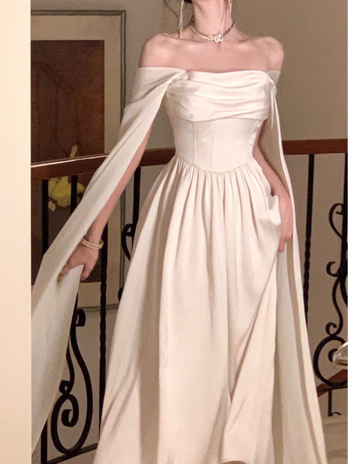 The Radmila Goddess dress is like a two-in-one magic trick, letting you rock two fabulous styles that will make heads turn. First up, we have the stunning off-shoulder look with dreamy cape sleeves that flutter with every step you take. Seriously, it’s perfect for when you want to make an unforgettable entrance!