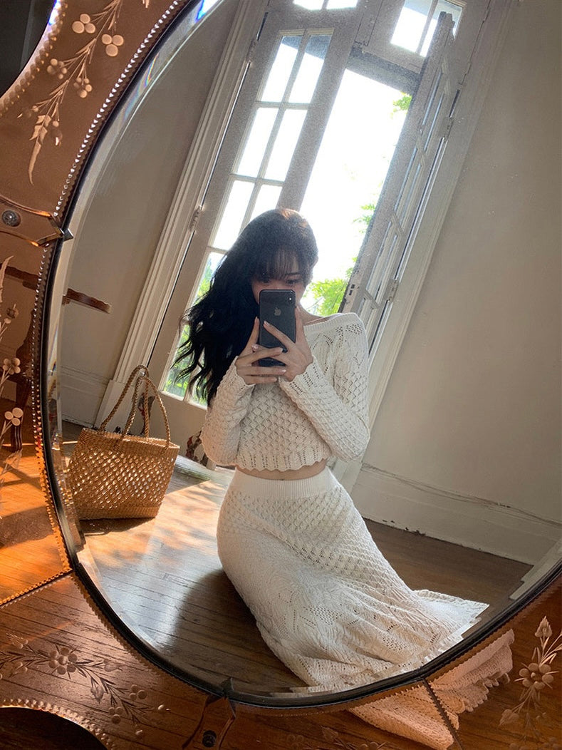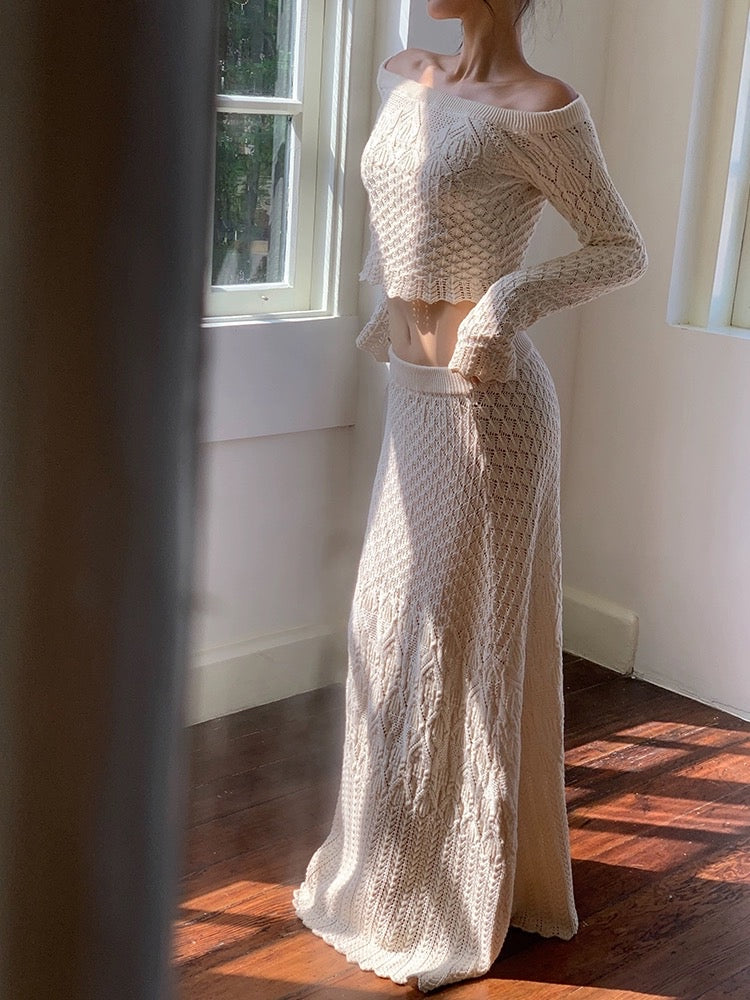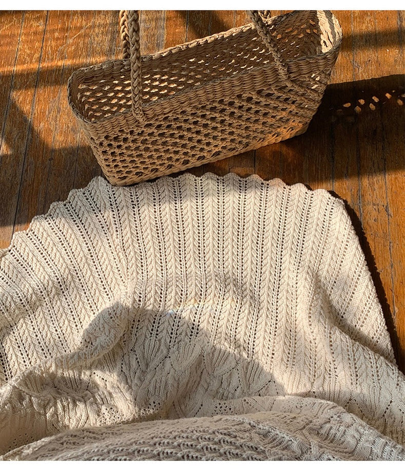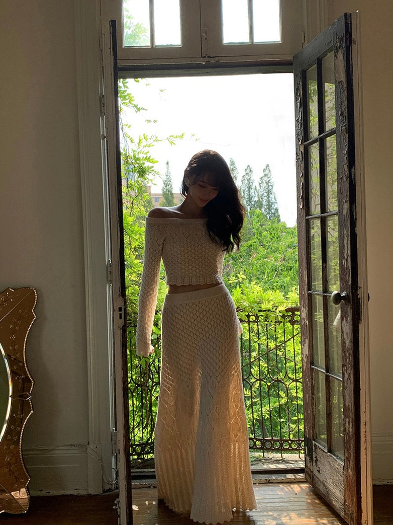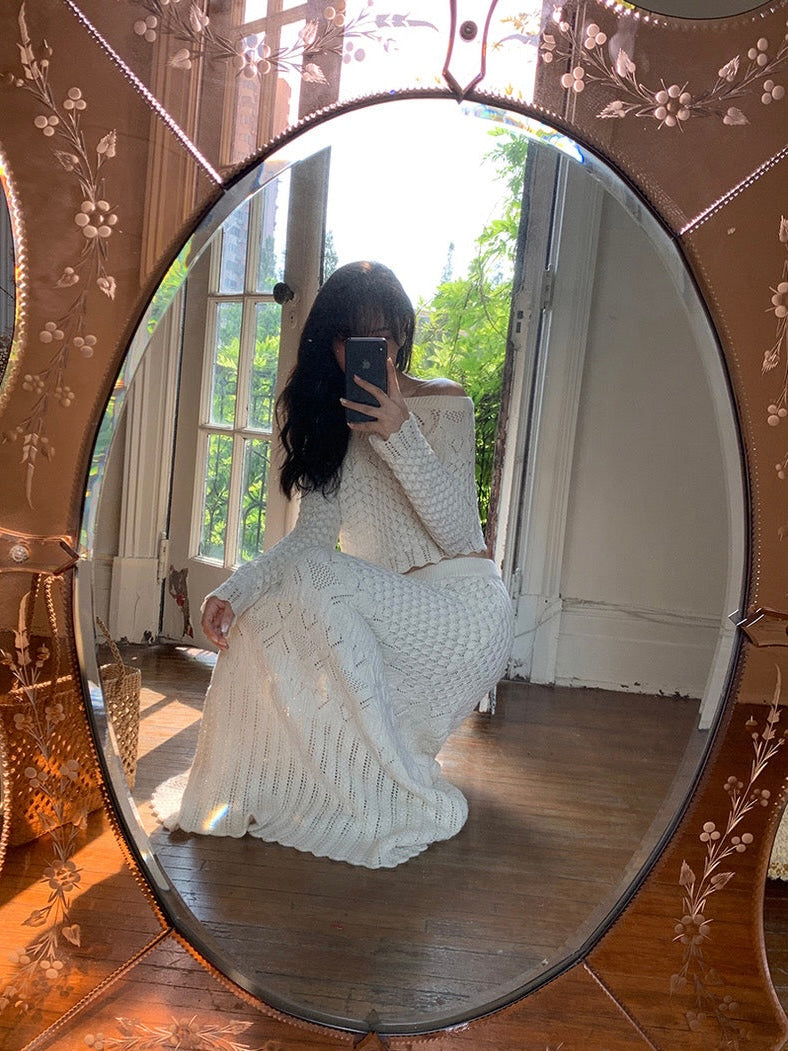 Light filters through the open knit detailing, giving it that soft, breathable quality, just enough skin peeking through to feel effortless and relaxed. It’s the kind of piece that moves gently with you, like swaying reeds in the late autumn sun.