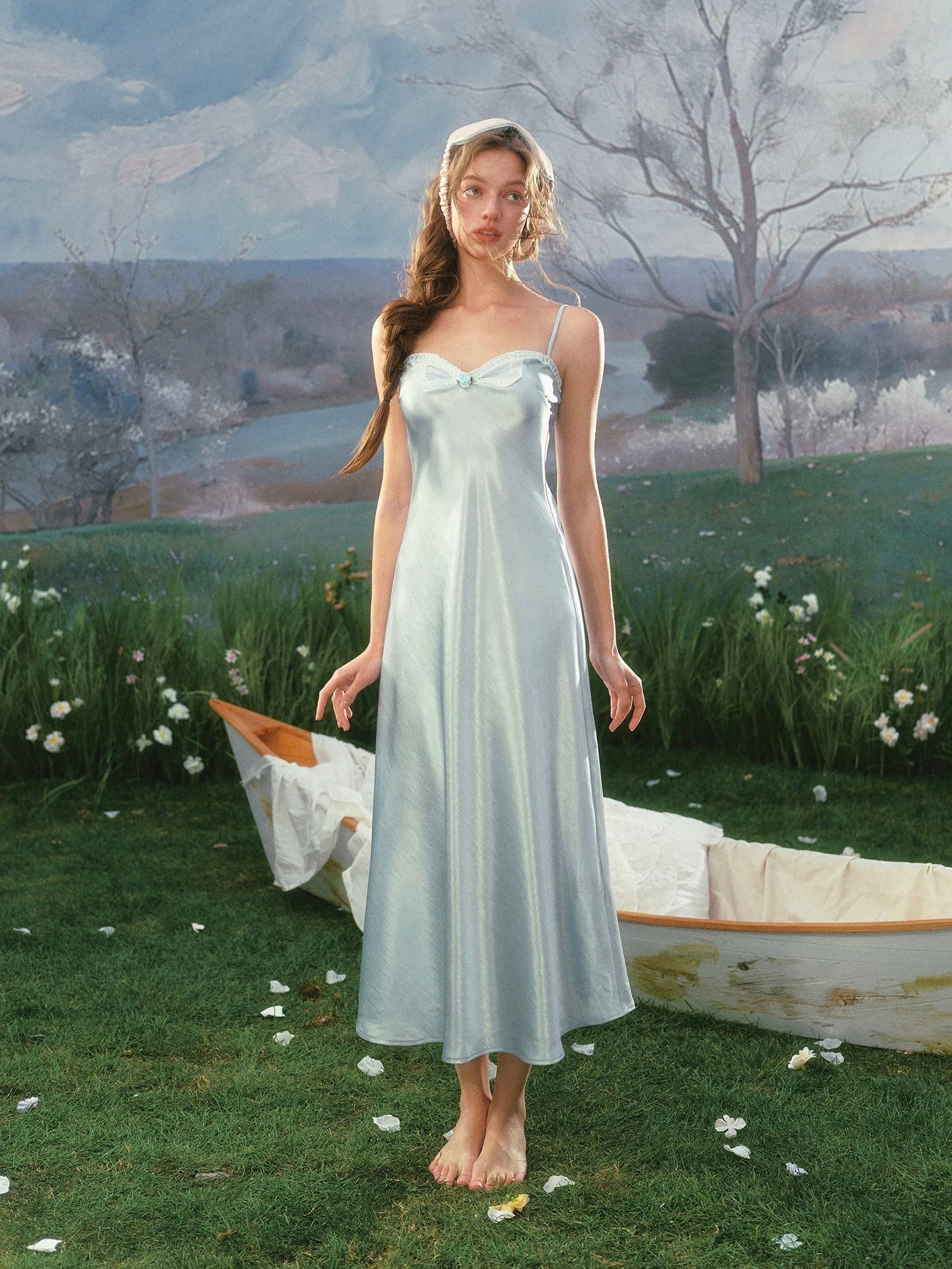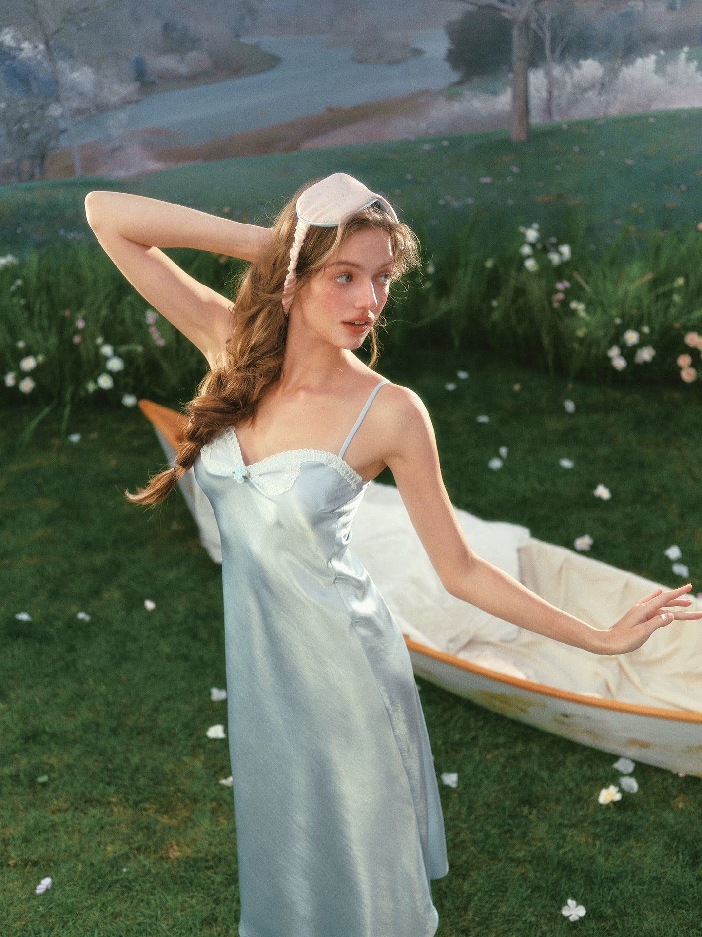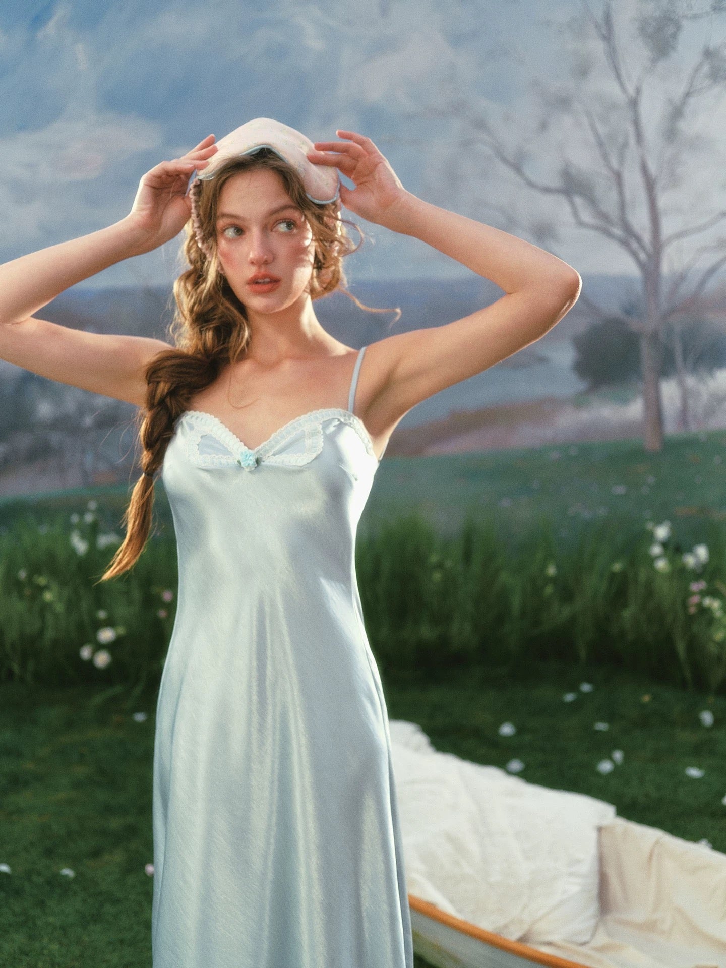 We shaped the satin slip on a bias so it drapes like liquid moonlight, skimming your waist before falling into a graceful midi hem. A peach heart neckline frames the collarbones, while the slender straps adjust easily to sit just where you like them, comfort really can look this pretty.