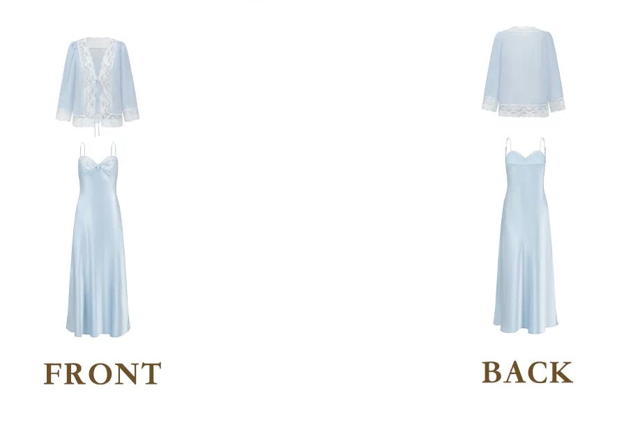 Our ‘Melinda’ dress and cardigan set turns every slow morning into a little cloud nine moment.