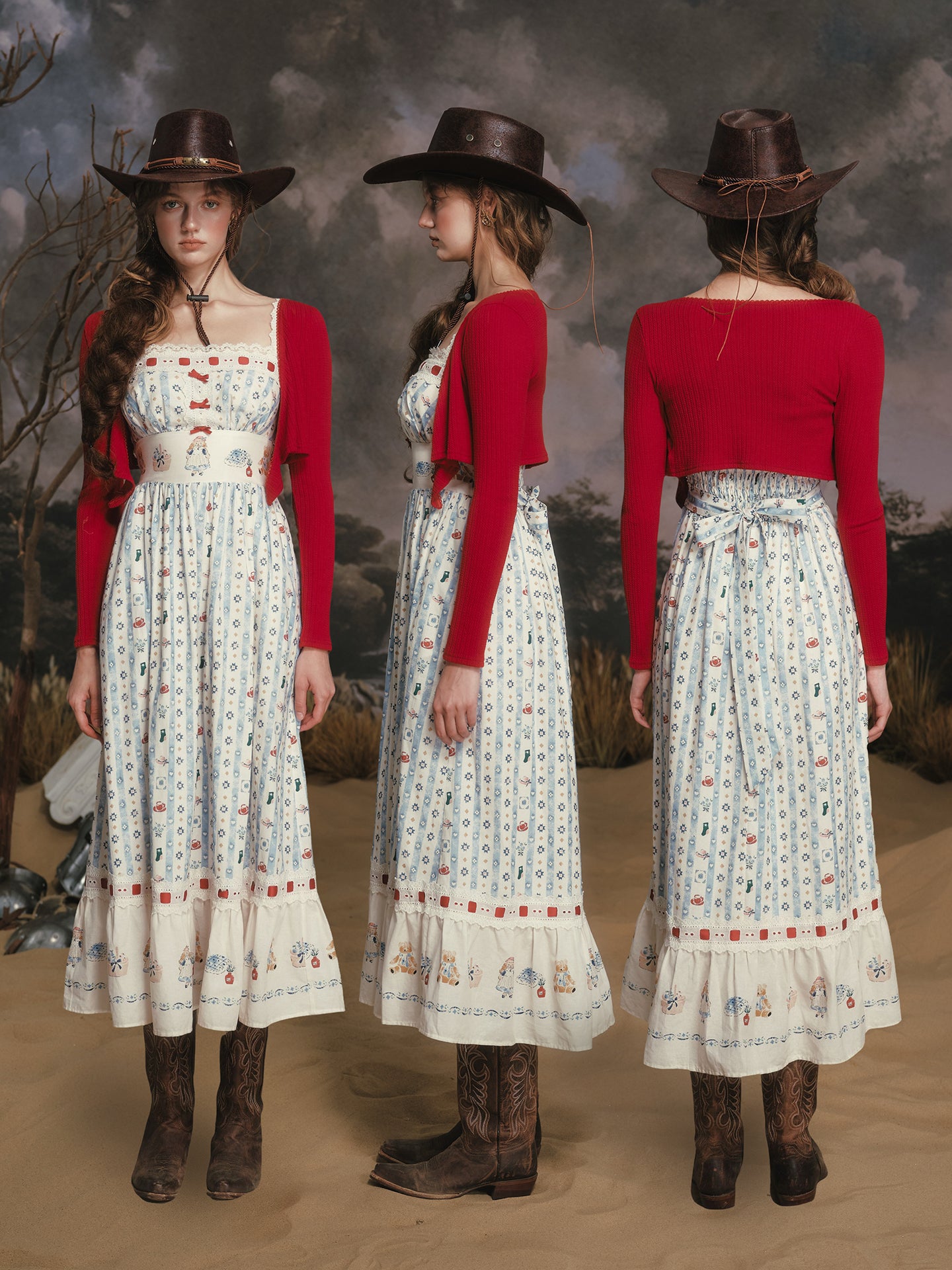 Styling tip: slip on cowboy boots for farmers’-market mornings, trade up to espadrille wedges for sunset apéros, or layer the matching cardi (so très chic) when the breeze rolls in.