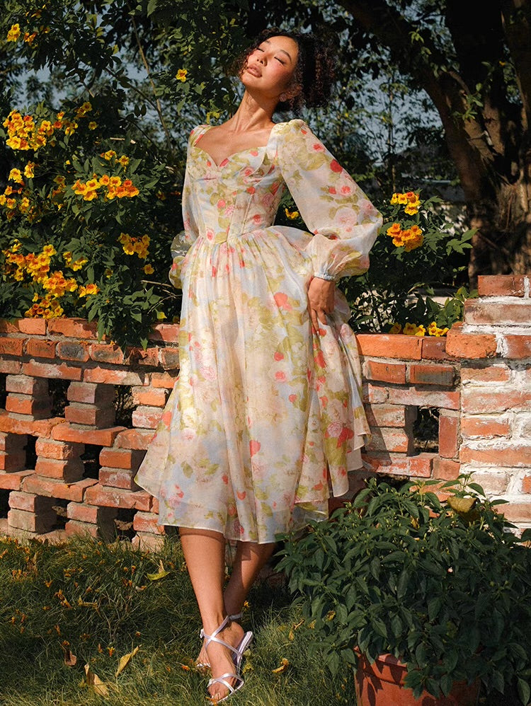 A brush of romance in every detail – the Clarisse dress is our prettiest pastel daydream, wrapped in vintage charm and modern whimsy.