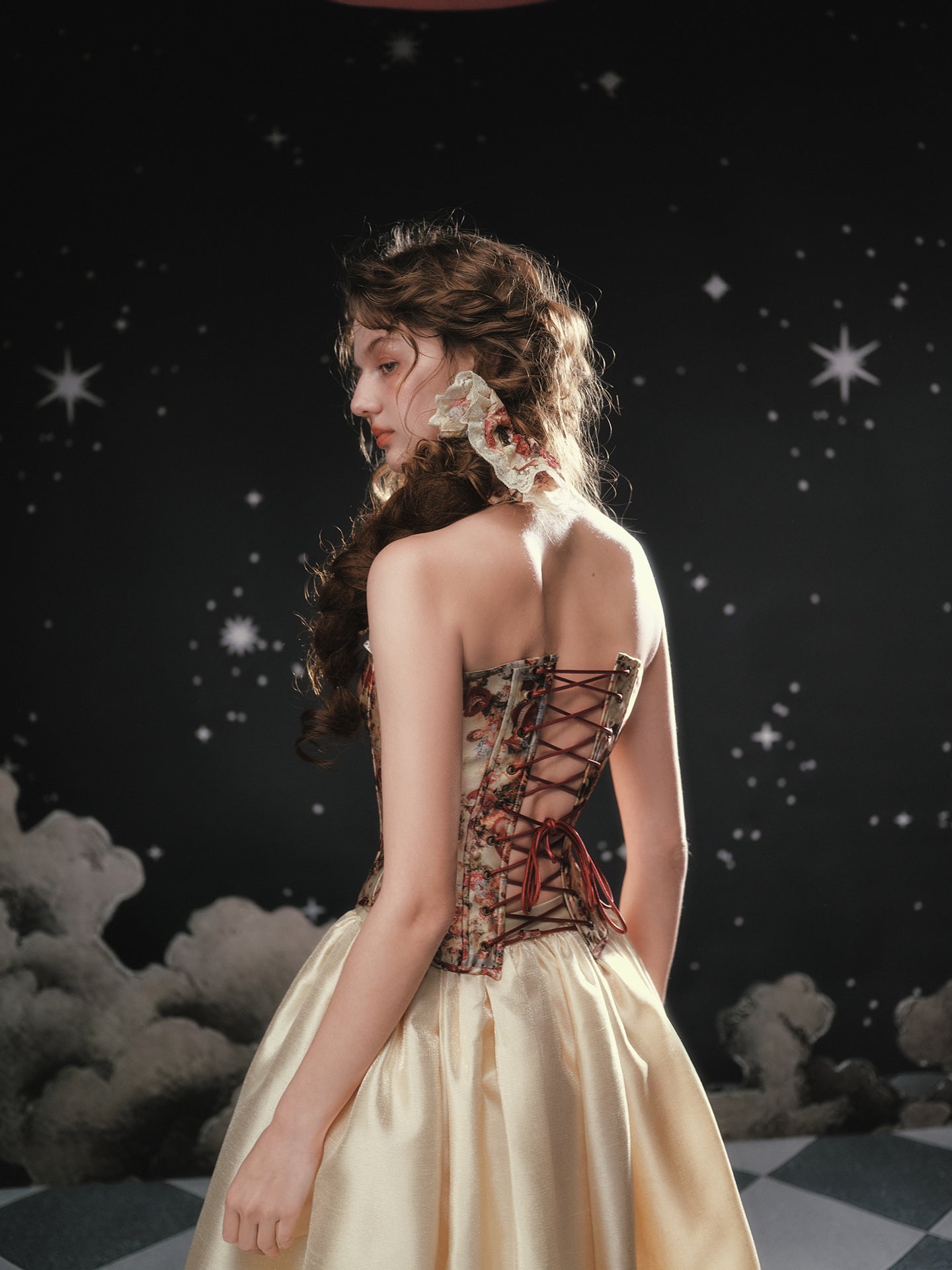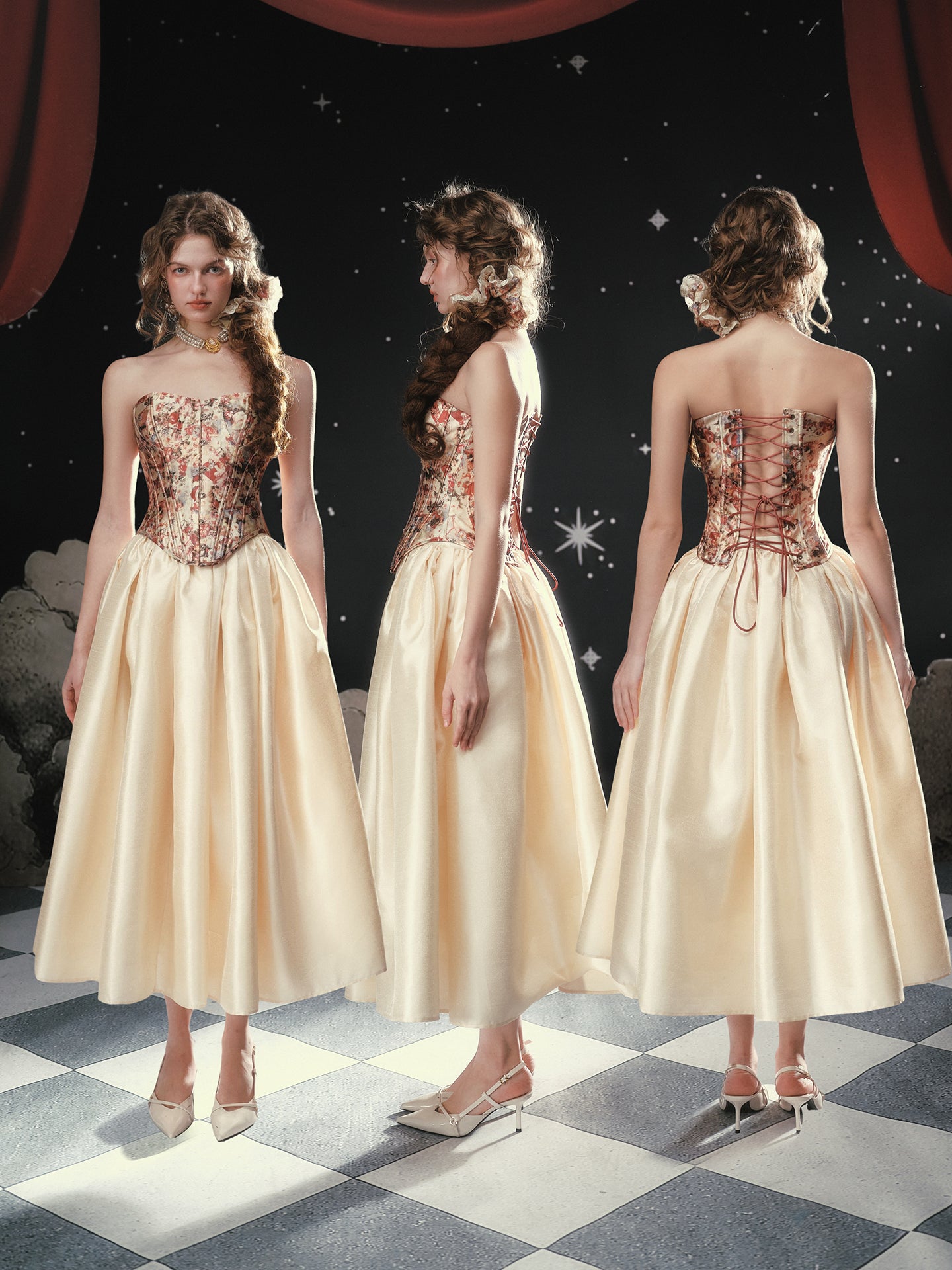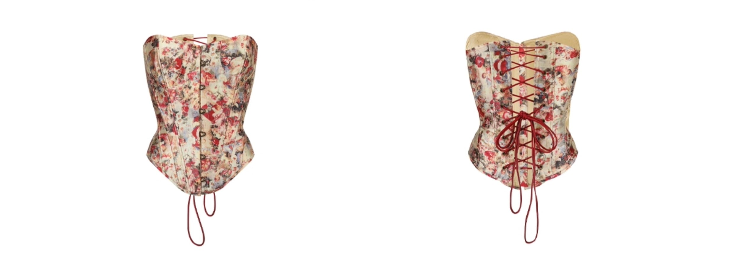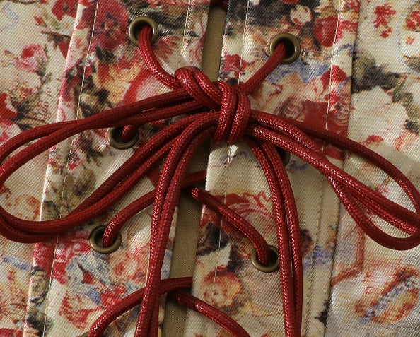 We finished the front with tiny gilt busk clasps – think antique jewellery vibes – while the back laces with matching wine-red ribbon so you can dial the fit from snug to slinky in a heartbeat. Inside, a smooth cotton lining keeps the feel breathable and skin-friendly, even when the dance floor heats up.