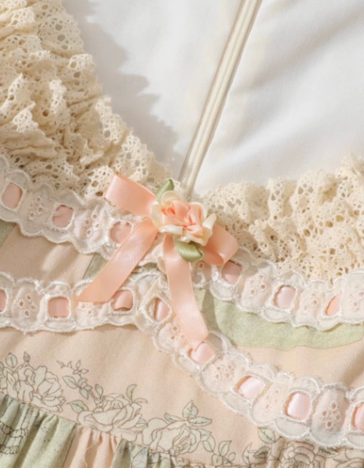 The multi-layered lace design on the chest adds a touch of vintage charm, while the heavy industrial retro details bring sophistication. A pink satin belt at the waist beautifully defines your figure, creating a slimmer silhouette.