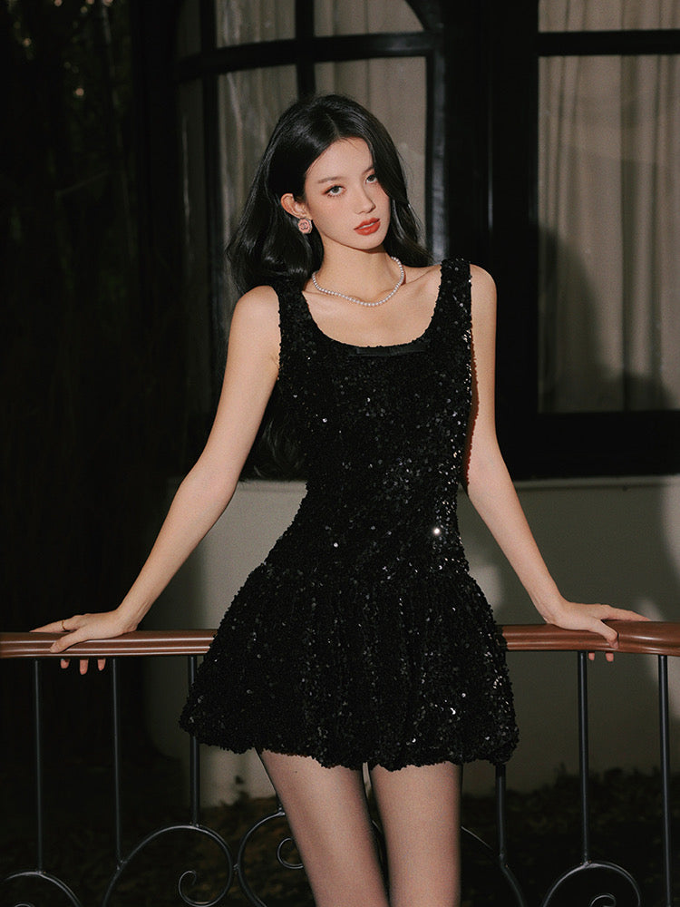 We adore the sequin knit fabric – gently stretchy with a subtle shimmer, it catches the light in all the right ways. Each sequin is placed with care, adding a soft sparkle without overwhelming the look. Layered textures and carefully structured lining add more shape and volume – it’s fun, flirty, and effortlessly cute.