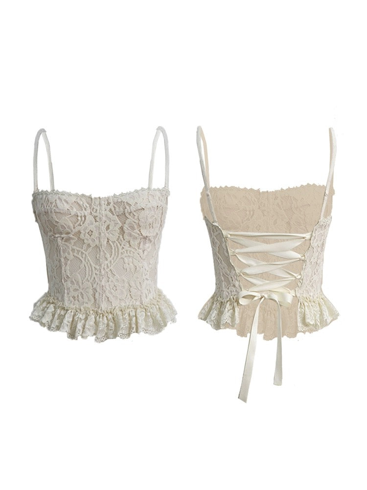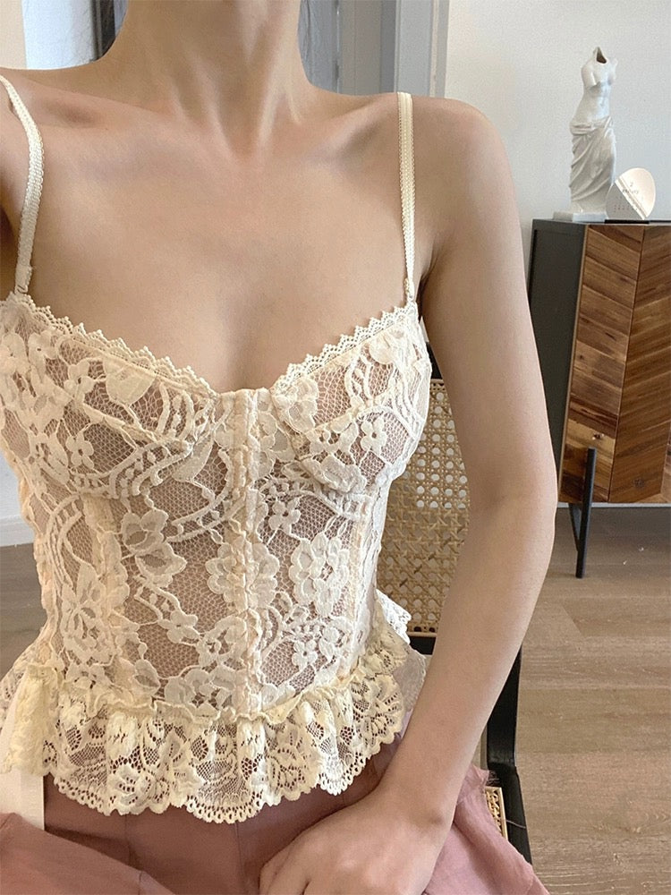 This lace corset top is everything we love: feminine textures, romantic detailing, and a fit that flatters with every stitch. The floral-patterned lace has a special crinkled silk-like texture that catches the light in all the right ways, making it feel just as luxurious as it looks.