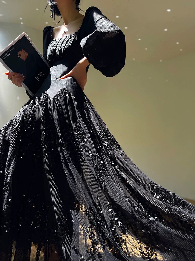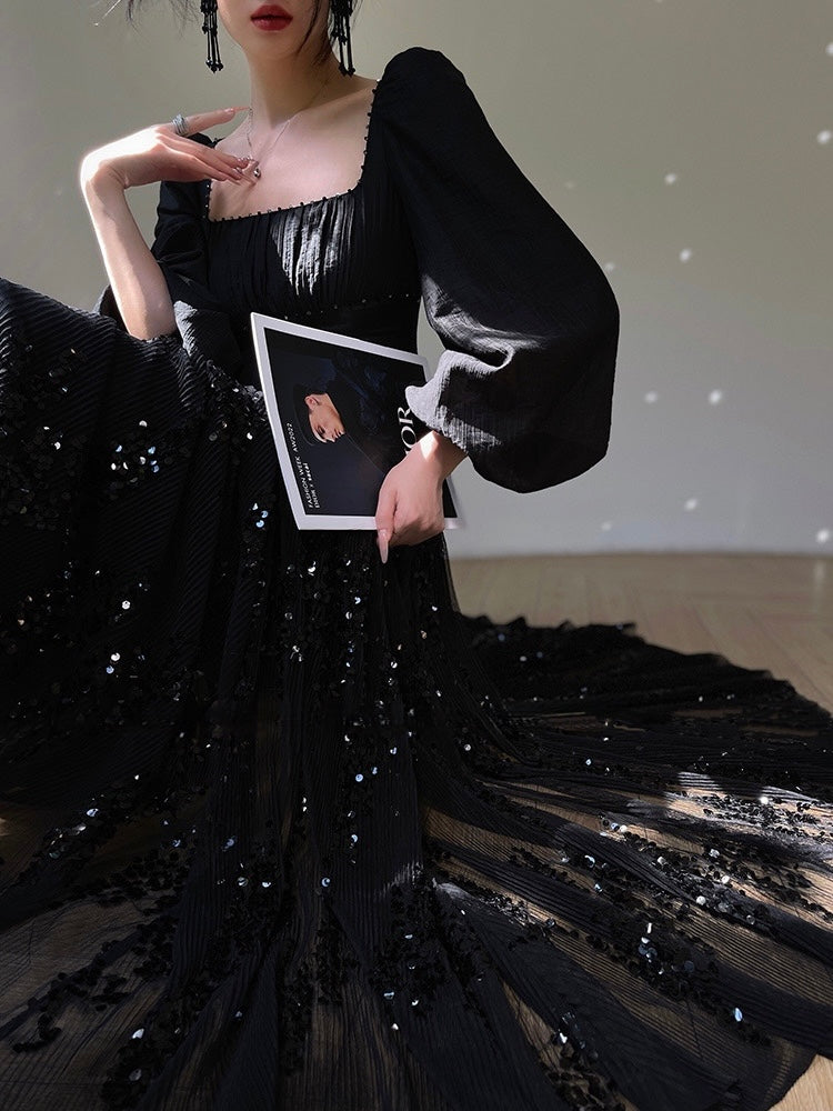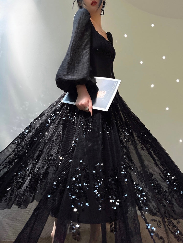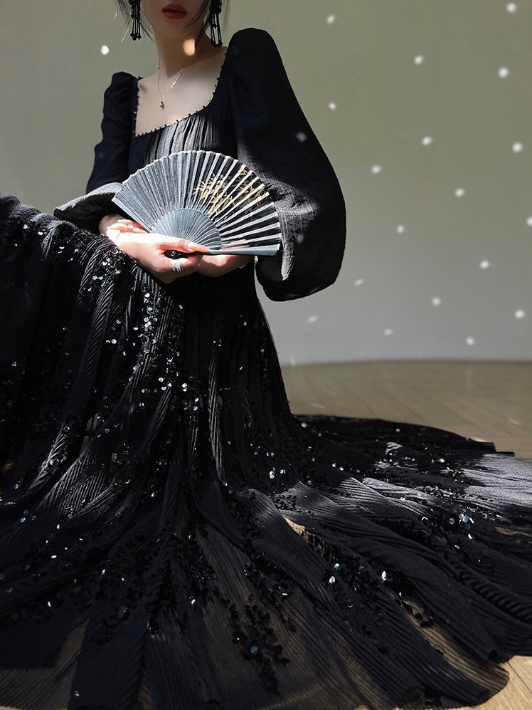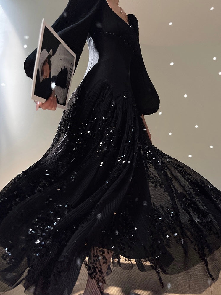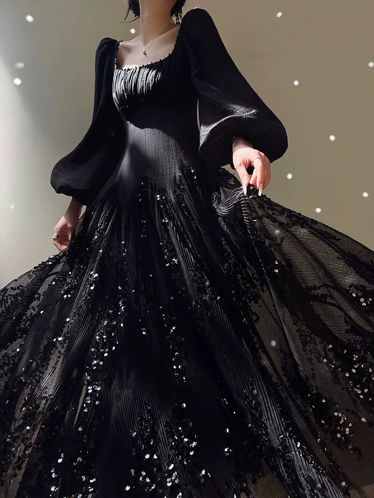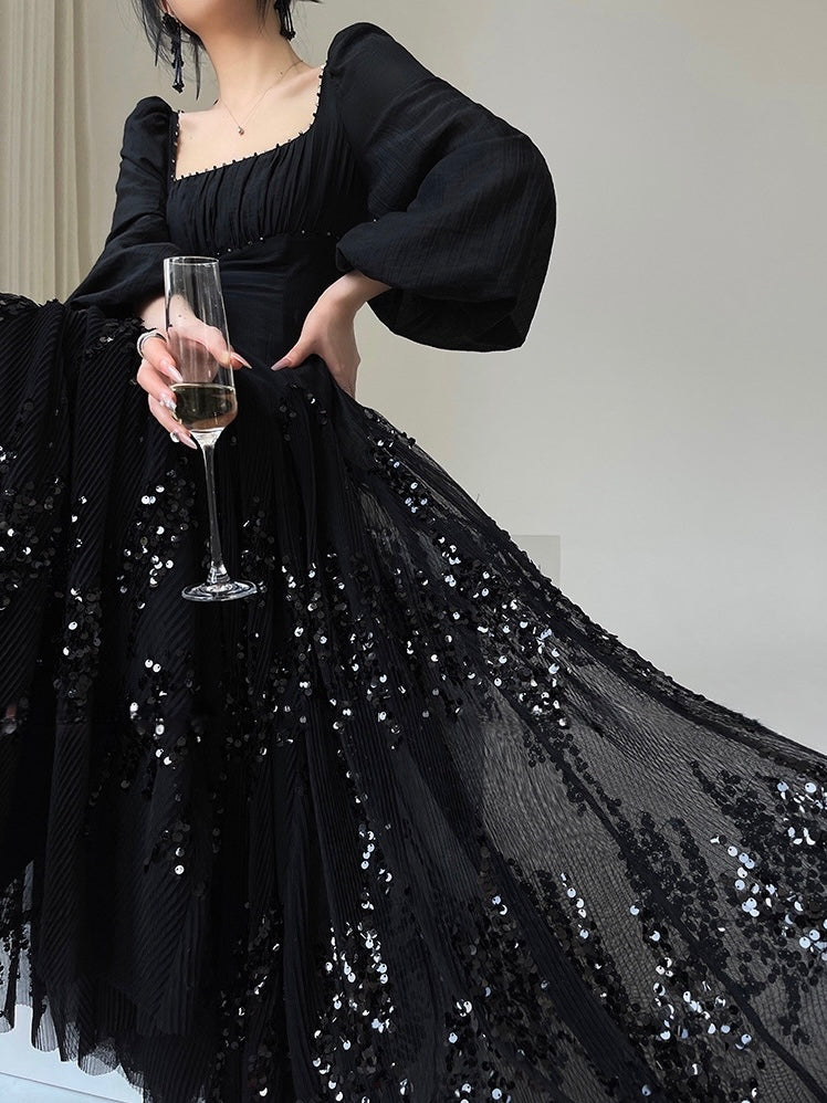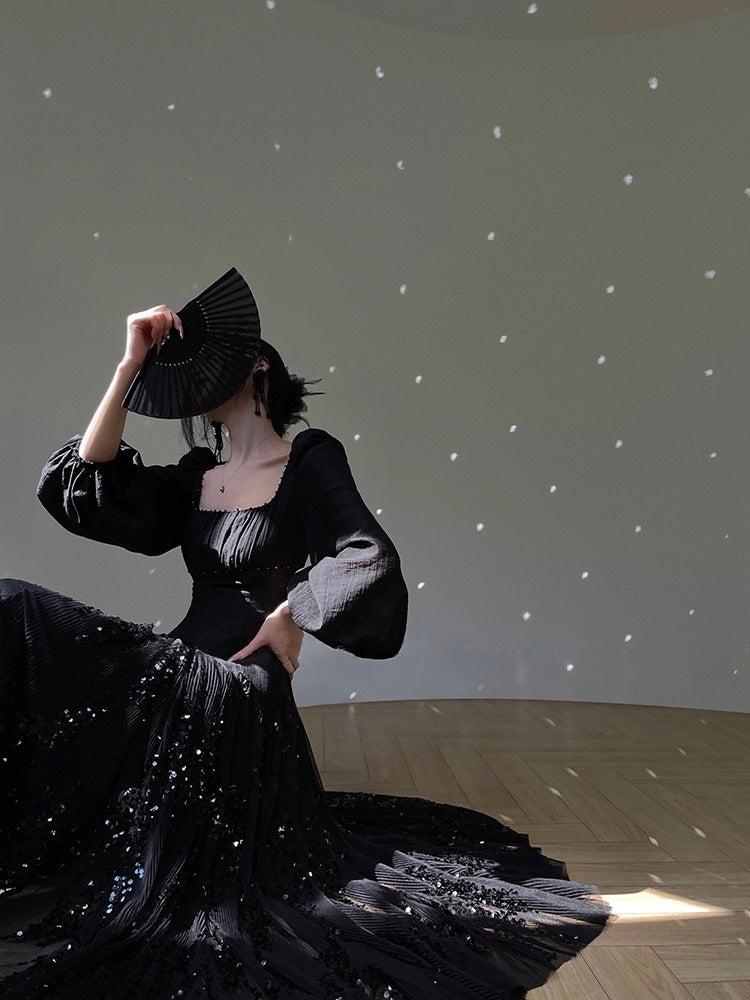 Offered in Shadow Black, glowing with starlit sequins and a flattering silhouette that’s all mystery and poise; and Soft Almond, a milky champagne-beige that radiates softness and glamour—perfect for art shows, birthdays and bridesmaids.