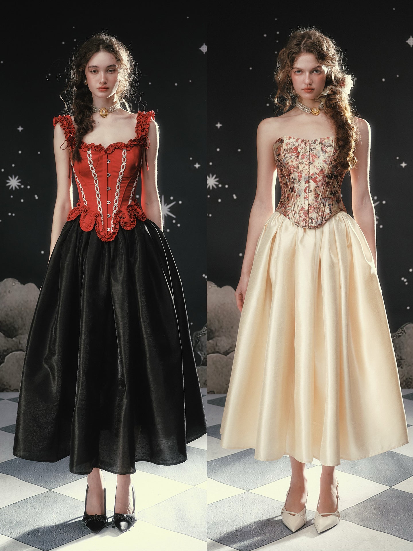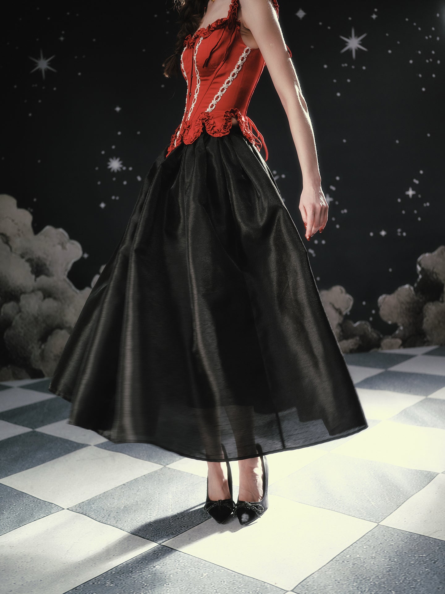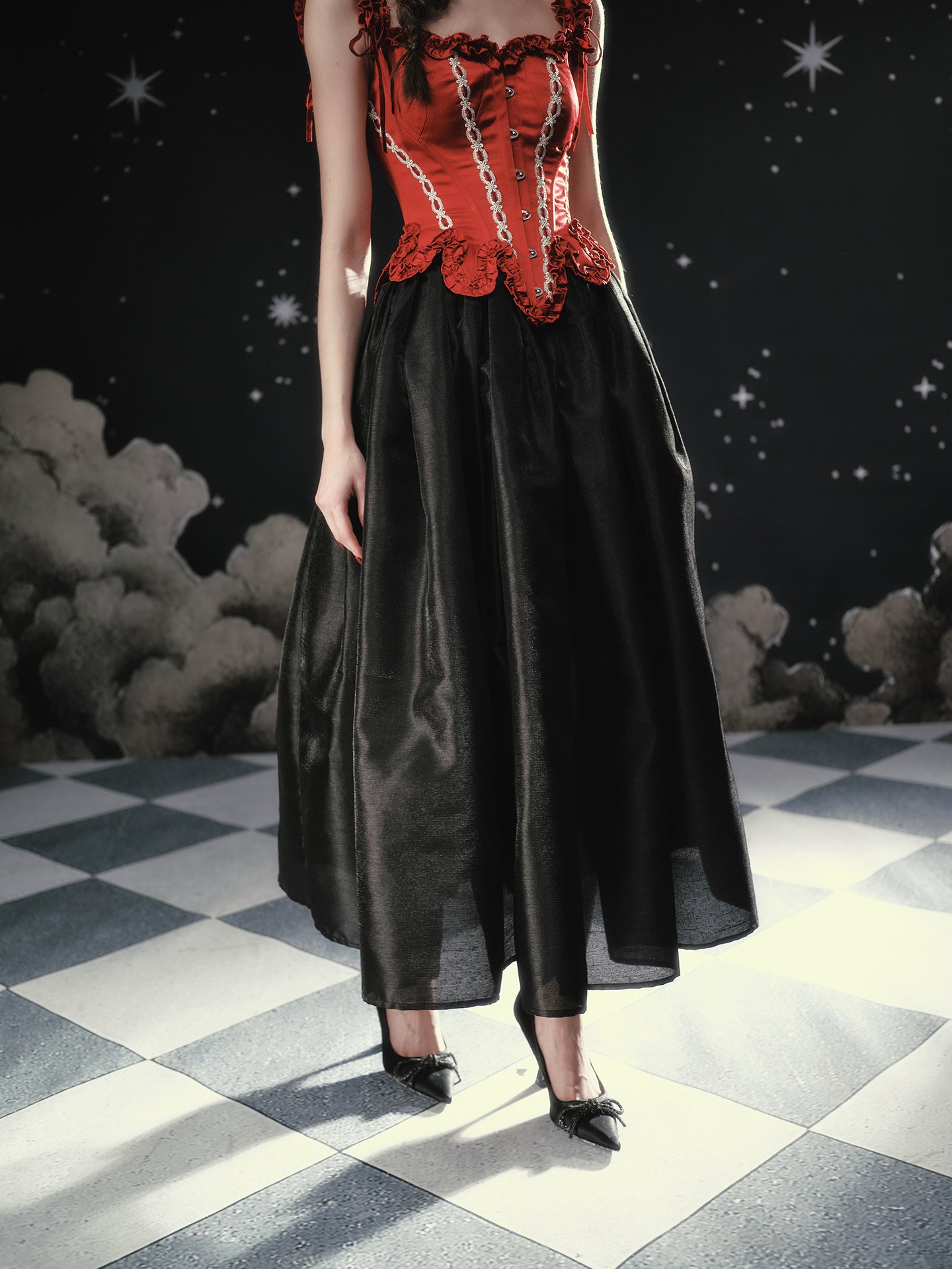 Available in Obsidian Black or Antique Apricot, ‘Fallen Eros’ pairs beautifully with anything corseted – think sculpted bodices, delicate blouses, even a cropped knit on off-duty days. Reach for ‘Fallen Eros’ whenever you want your skirt to do the talking: polished, dramatic, and effortlessly chic.