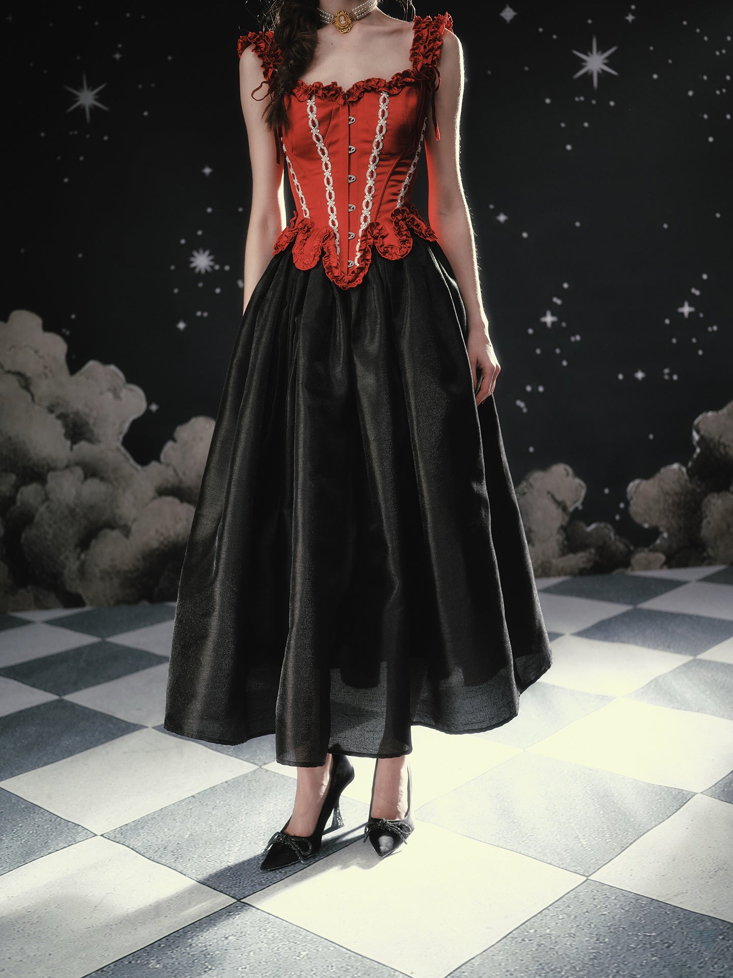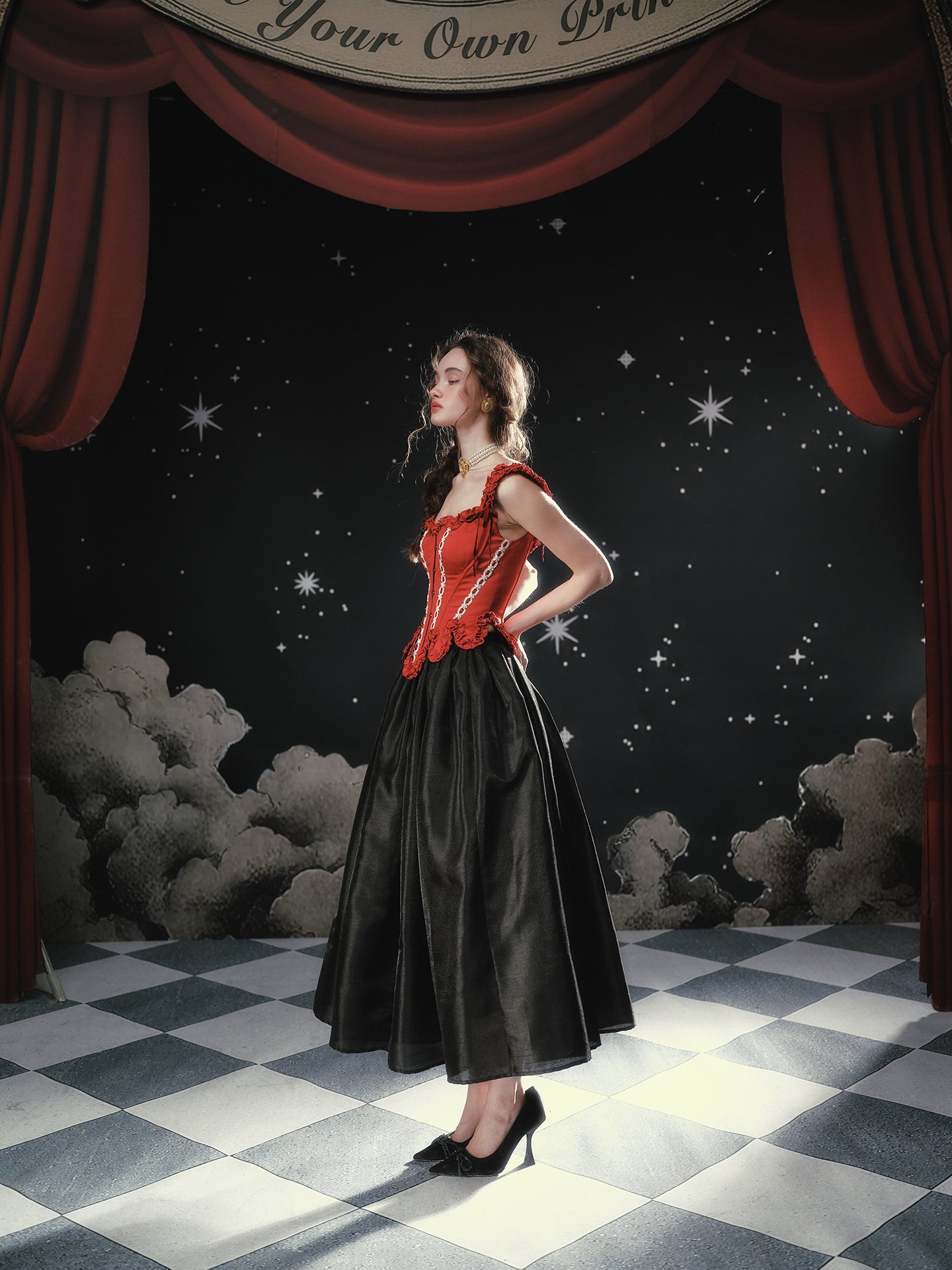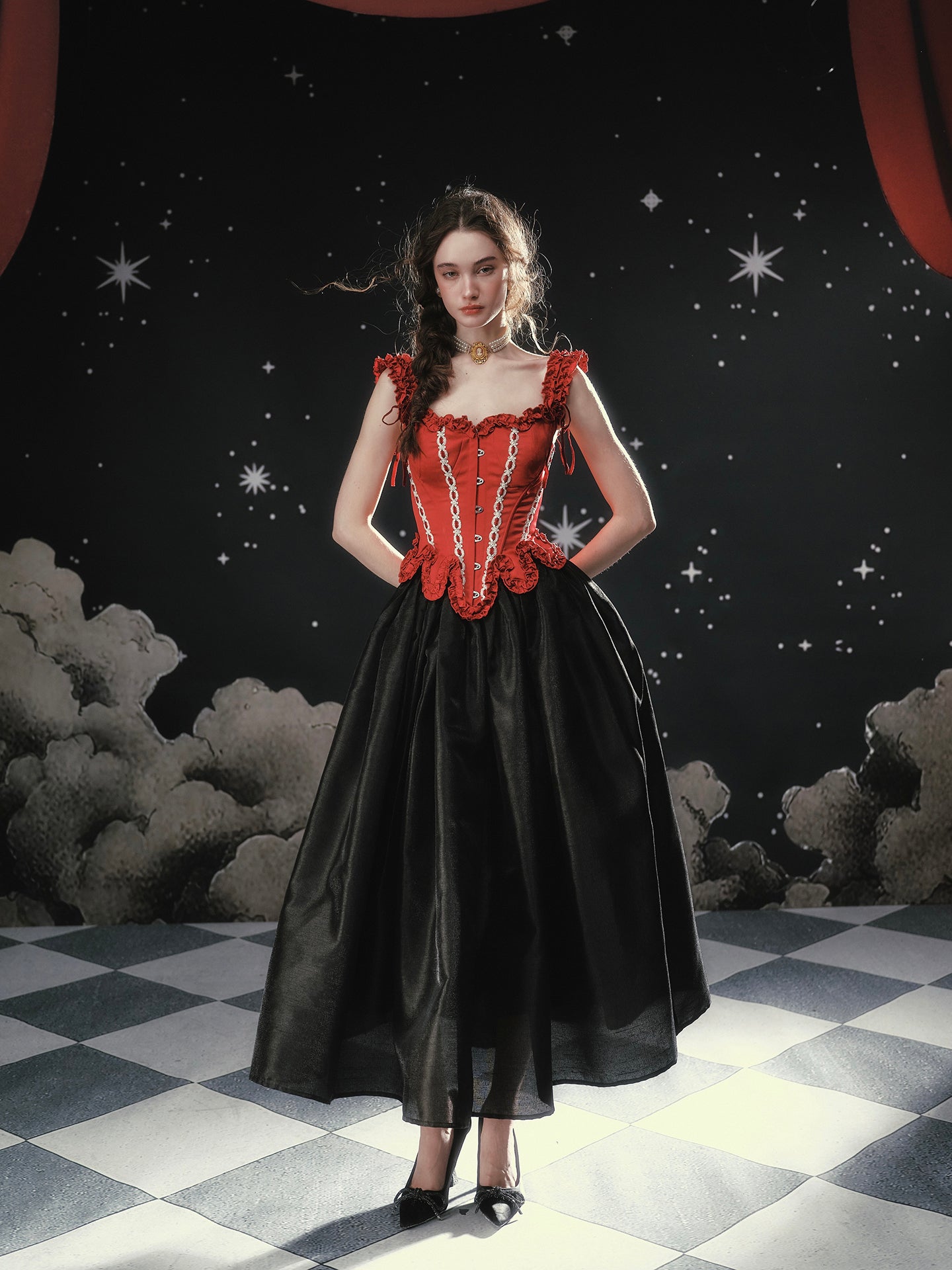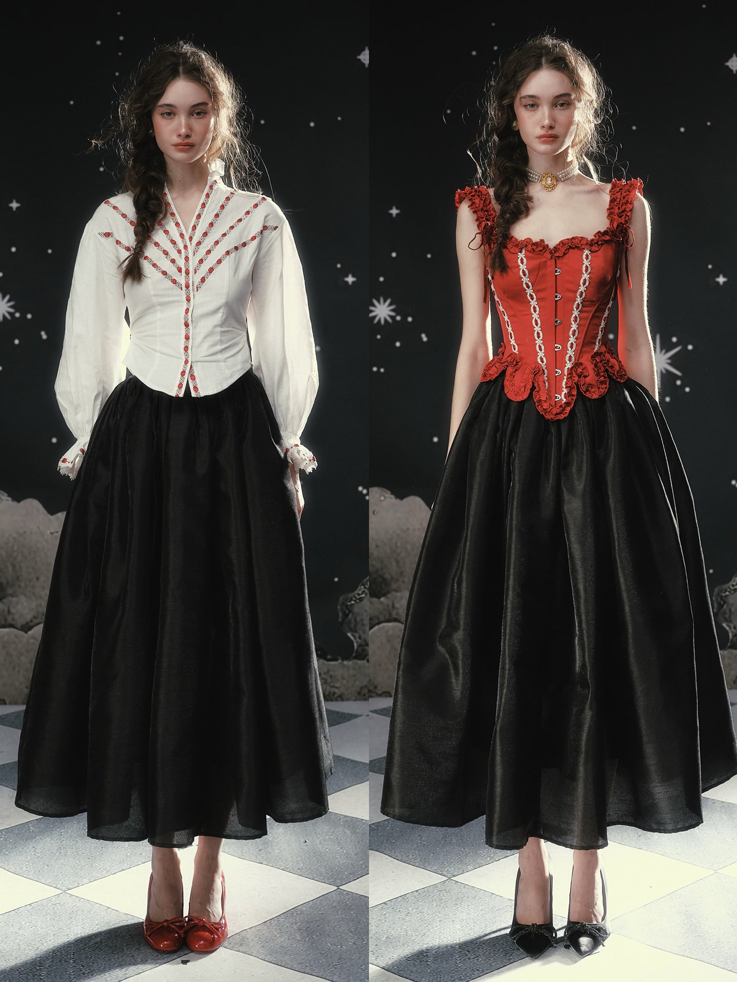Available in Obsidian Black or Antique Apricot, ‘Fallen Eros’ pairs beautifully with anything corseted – think sculpted bodices, delicate blouses, even a cropped knit on off-duty days. Reach for ‘Fallen Eros’ whenever you want your skirt to do the talking: polished, dramatic, and effortlessly chic.