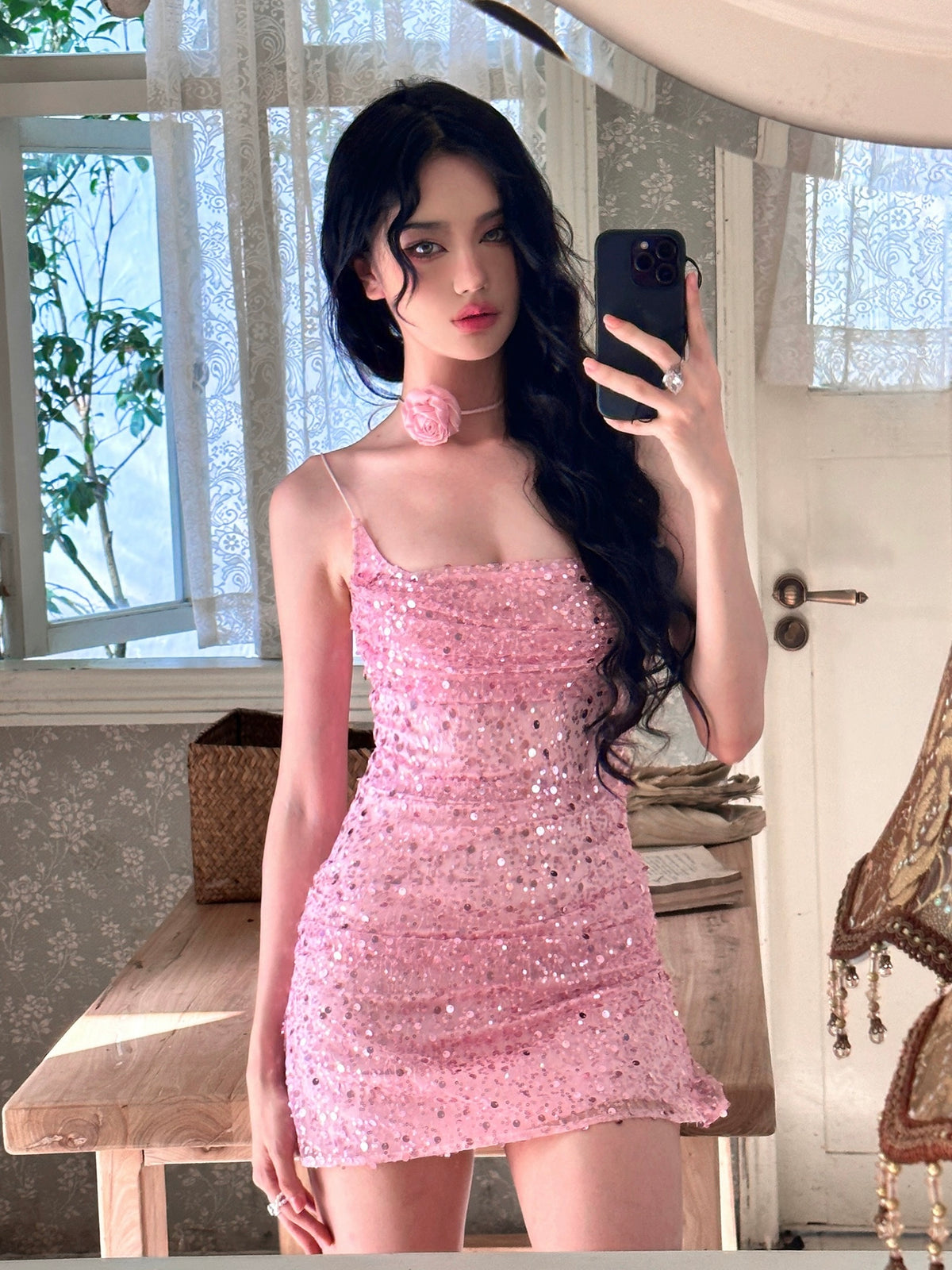 Adorned with shimmering beads that catch the light beautifully, this dress radiates a captivating brilliance, exuding a sense of luxury and elegance perfect for evening parties, festive celebrations, and special gatherings. The design effortlessly balances sophistication and glamour, making it both refined and striking.