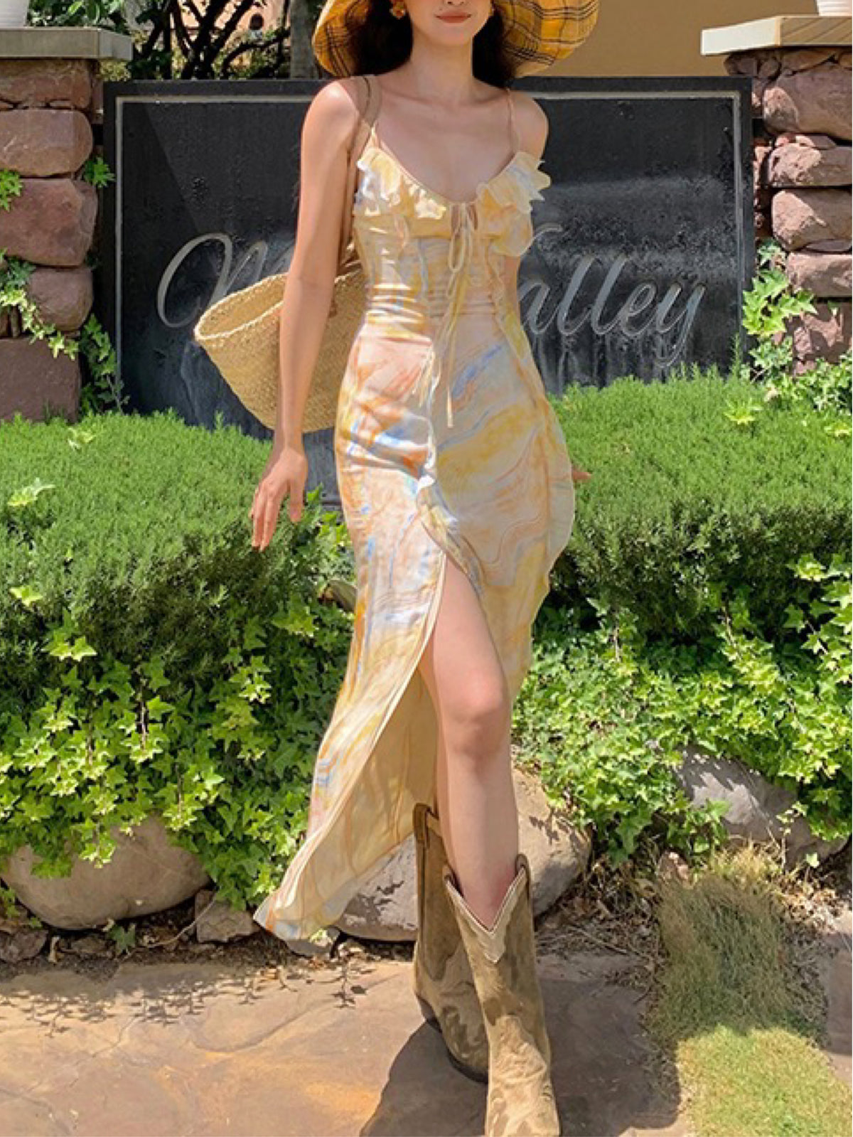 Delicate ruffles create a flattering shape that elongates proportions, effortlessly enhancing your figure and showcasing your natural beauty. The chic thigh-high slit adds fashion-forward flair while ensuring comfort with every graceful step—don’t you adore dresses that flow with you?