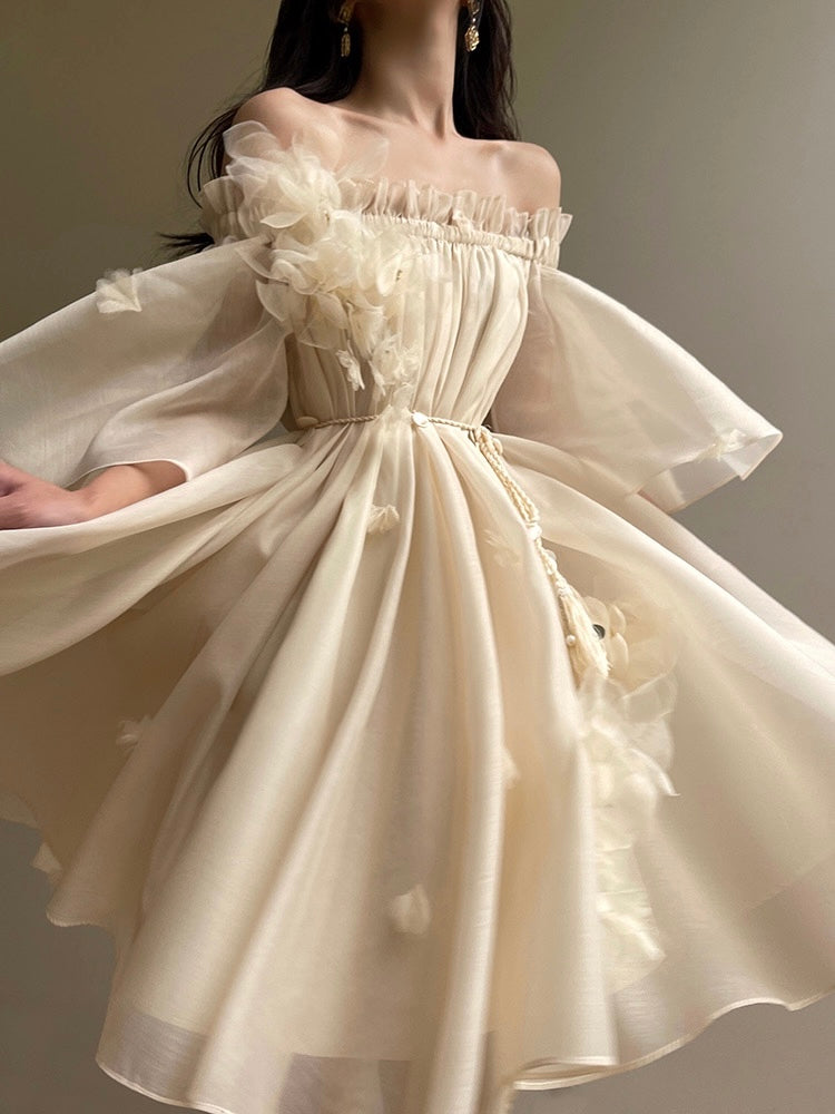 The Magnolia Lotus Fragrance dress captures the ethereal beauty of soft clouds mingling with pristine blossoms, inviting you to experience the refreshing essence of summer. Radiating like a young Venus in full bloom, this piece exudes a delightful allure, dancing with butterflies in a floral romance.
