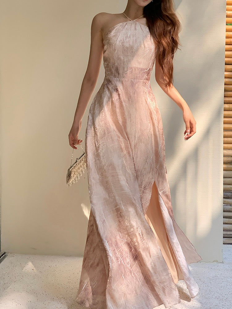 A horizontal waist panel enhances proportion and highlights your curves, while the front bodice’s dyed gradient flows like soft brushstrokes—textured, fluid, and full of quiet drama.