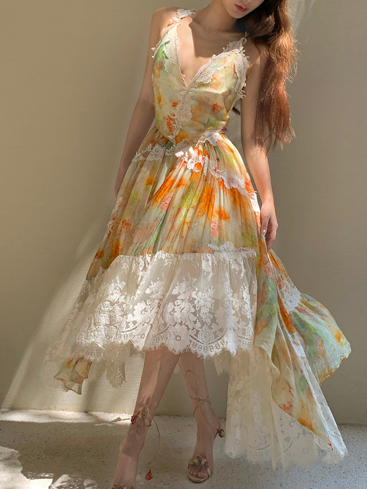 Finished with a soft yellow haze and painterly ink-wash print, ‘Oravera’ captures the mood of sunlit gardens and slow, romantic afternoons. It’s not just another pretty dress—it’s poetry in lace.