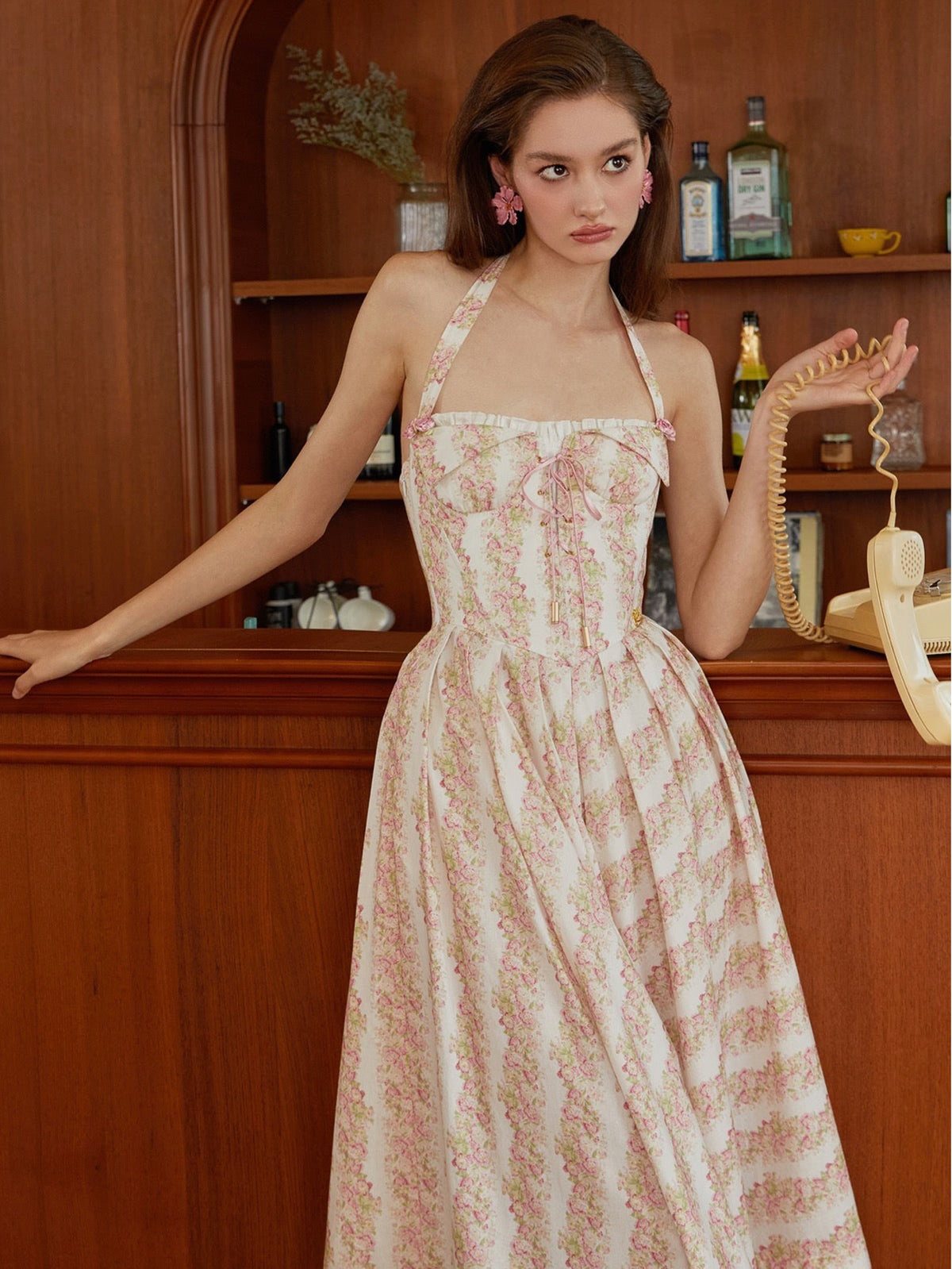 At the neckline, a custom satin rosette adds a soft, layered pop—dainty, dimensional, and just a little bit sweet. The hardware? Light gold-toned for that extra touch of quiet luxury, finished with a delicate branded charm.