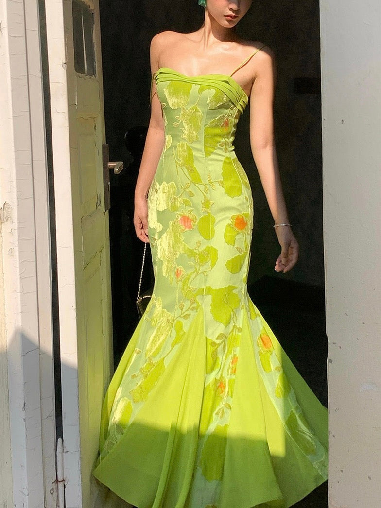 We designed the side seams with subtle slits to sculpt the waistline more naturally, and to create that soft, mermaid-like flow, the hem features six tailored triangular inserts—so every step you take sends light glimmering along the folds.