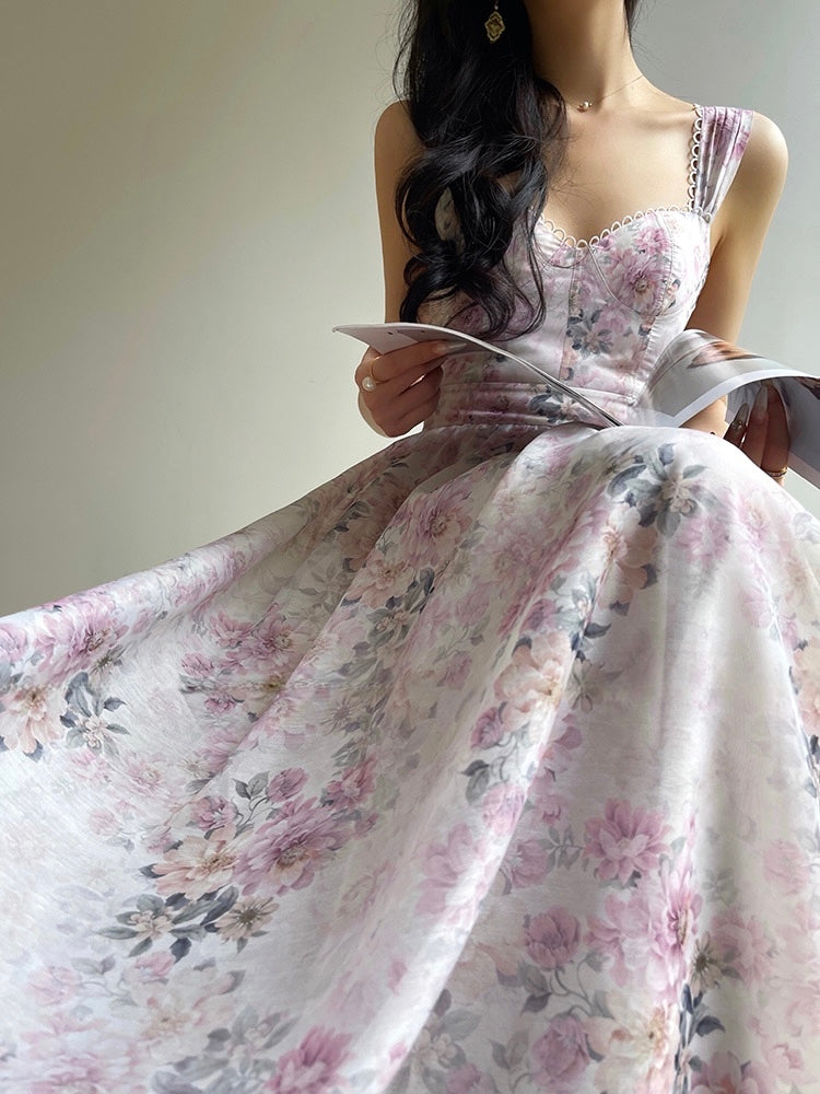 Lined with breathable milk silk chiffon, the Spring Pond Flower Gradient dress ensures you feel as fabulous as you look, whether during a chic brunch or a romantic evening.