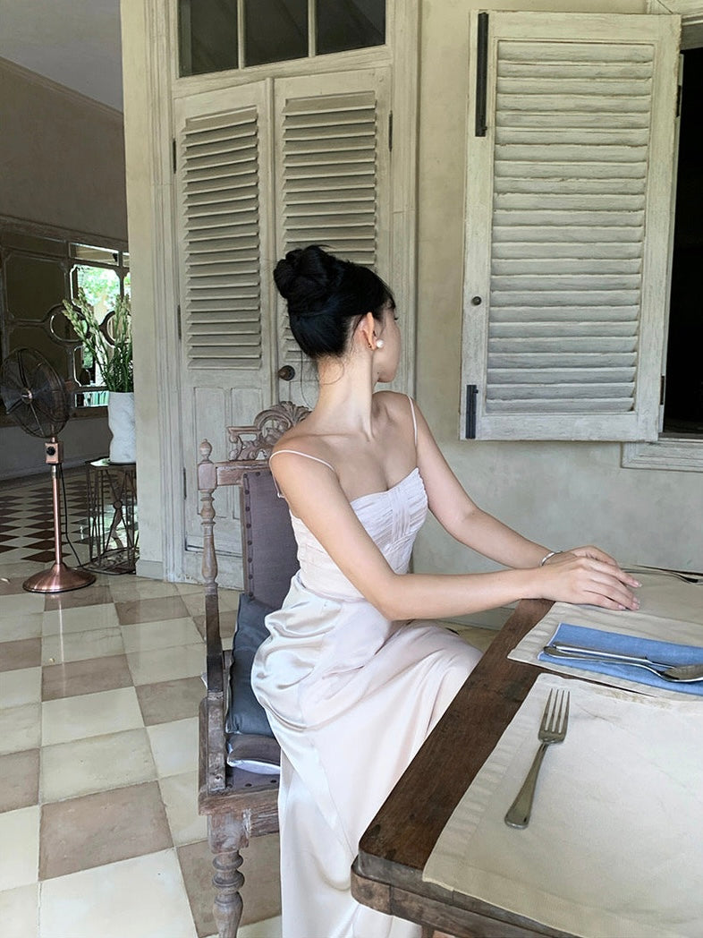 The well-placed pleating flows gracefully around your silhouette, enhancing your feminine shape while the high waistline gives a refined, sophisticated vibe. As you move, the lightweight material glides fluidly, radiating a quiet charm that tells a story of mystery and grace.