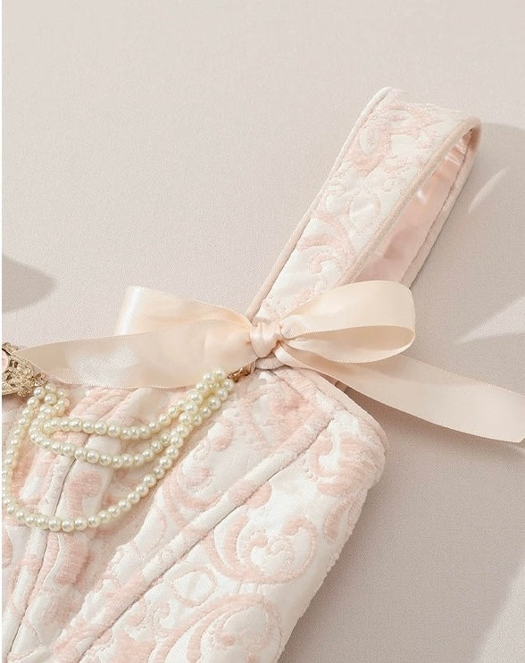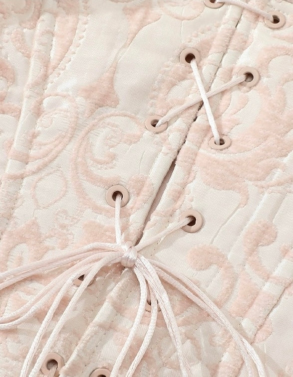Built-in with eight metal bones for shaping, this corset stays beautifully in place while highlighting the waistline. We love the silky velvet trim detailing, adding a subtle contrast in texture. Adjustable ribbon shoulder straps in a matching glossy finish let you tie it your way – how cute is that?