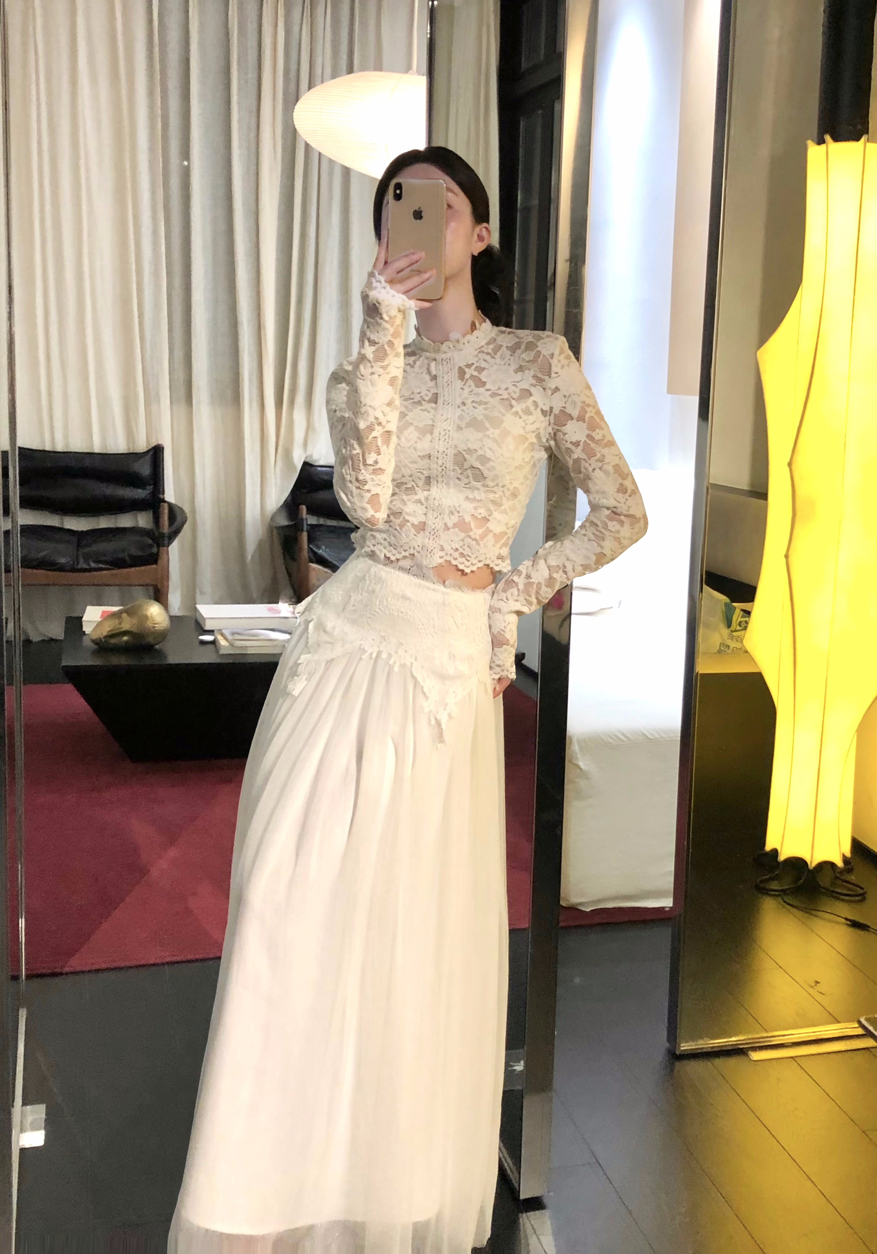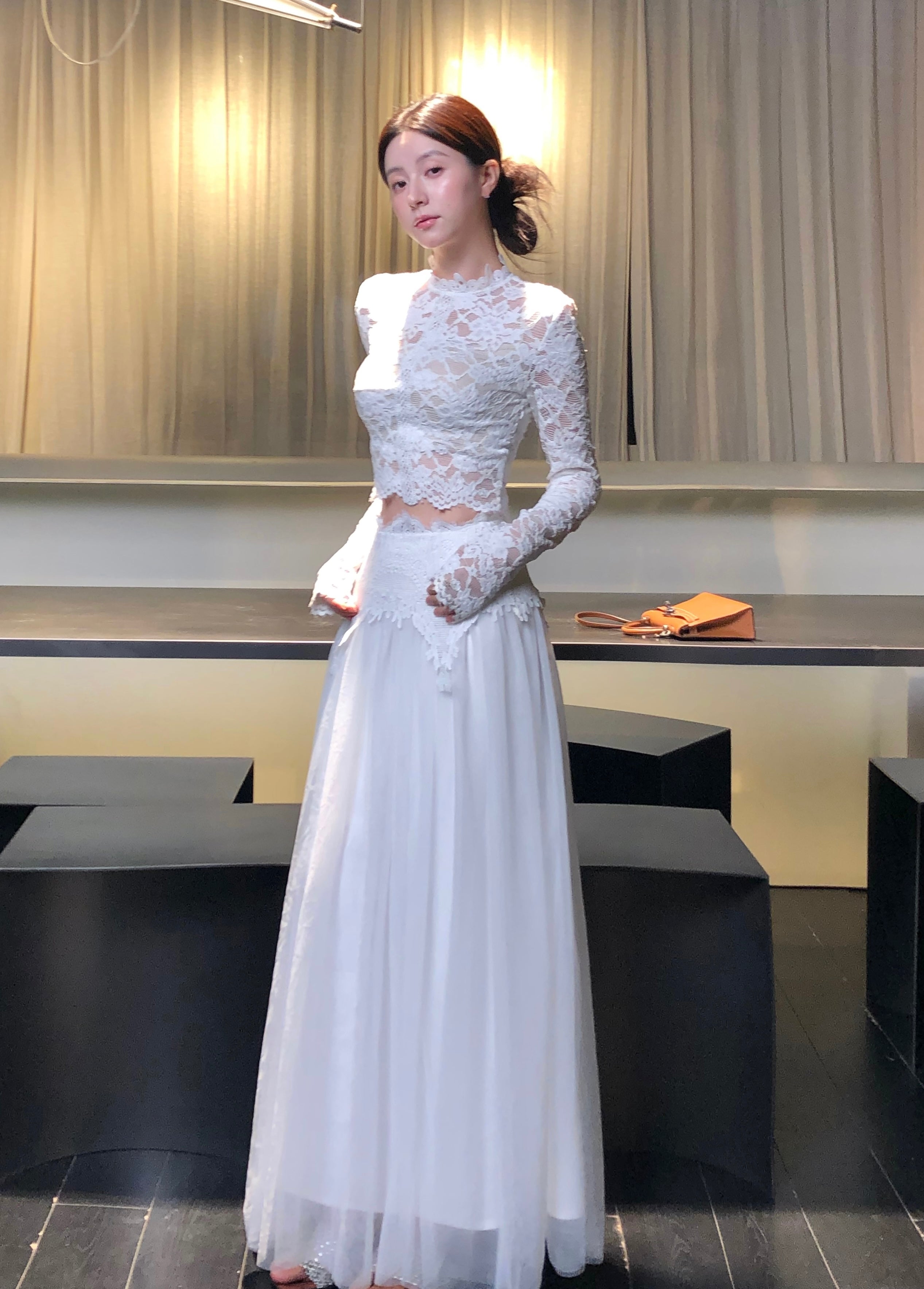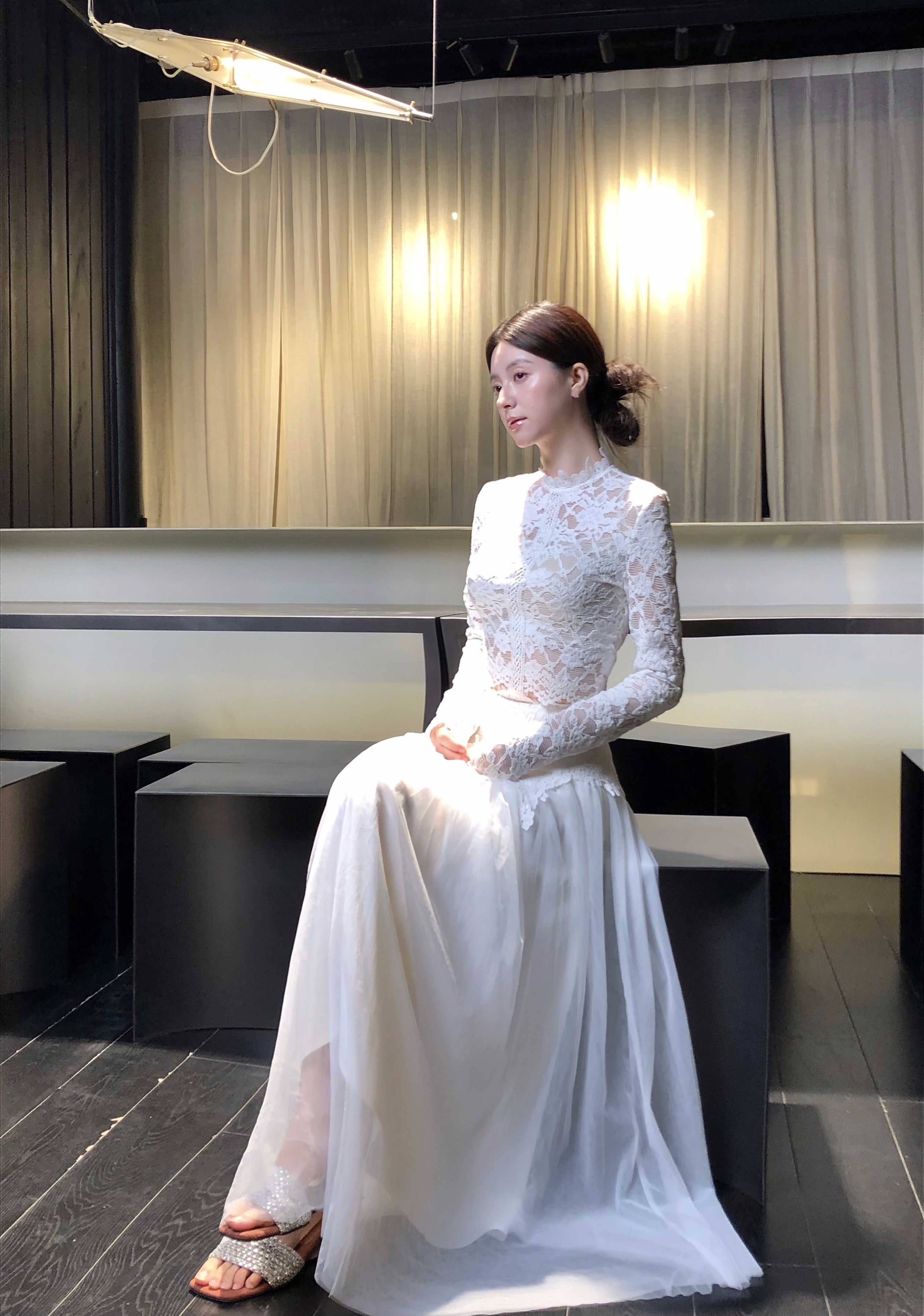 But the true showstopper? Over 4 meters of soft layered tulle, forming a floaty, petal-like skirt that moves like a dream. Light, layered, and full of presence, the skirt flutters with every step, equally perfect for dreamy café dates, birthday soirées, or capturing golden hour in photos.