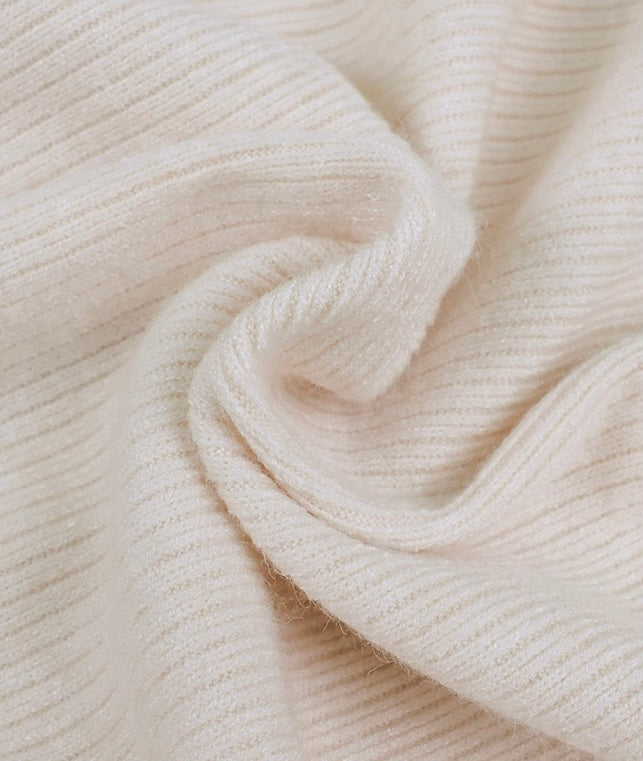Crafted in a thick, soft-touch knit, it feels plush and smooth on the skin while keeping you warm. The ribbed surface gives it structure and dimension, and the fabric blend is breathable, stretchy, and drapes like a dream.