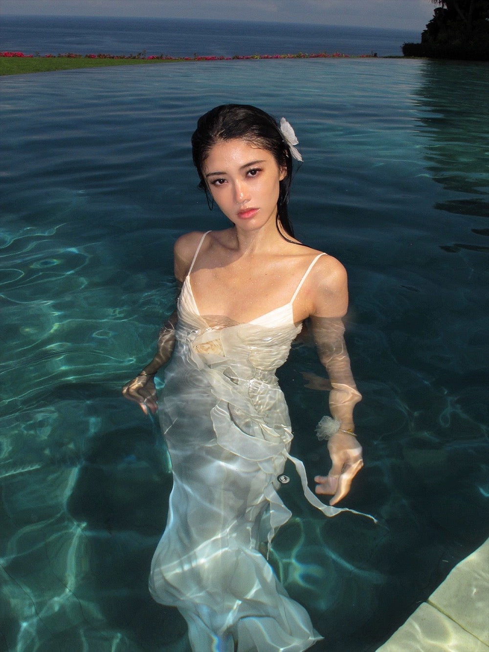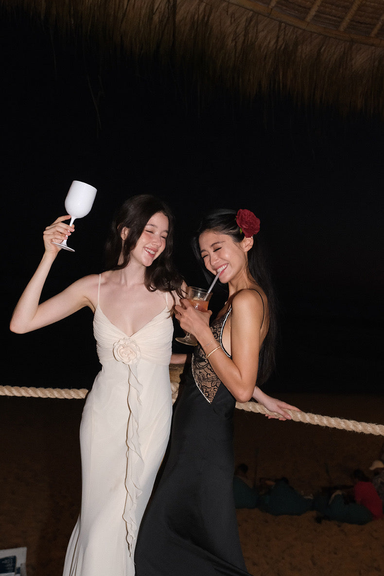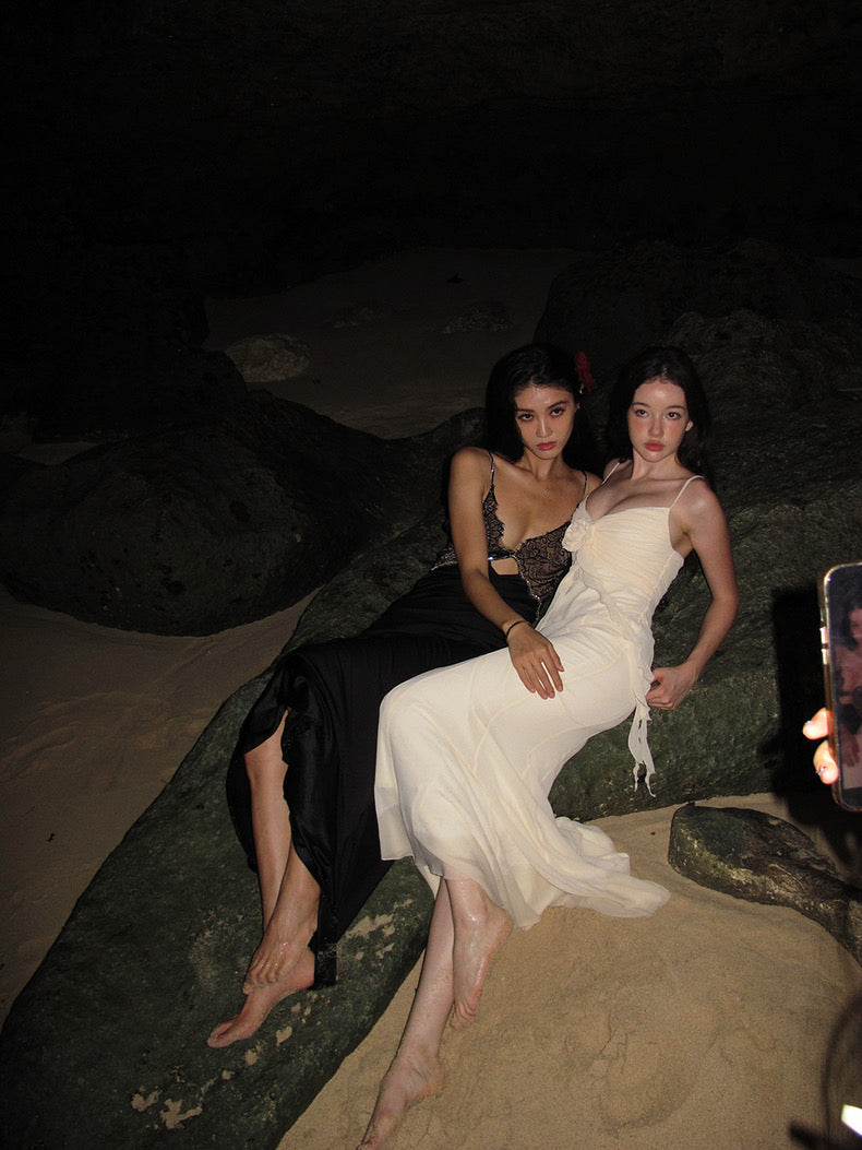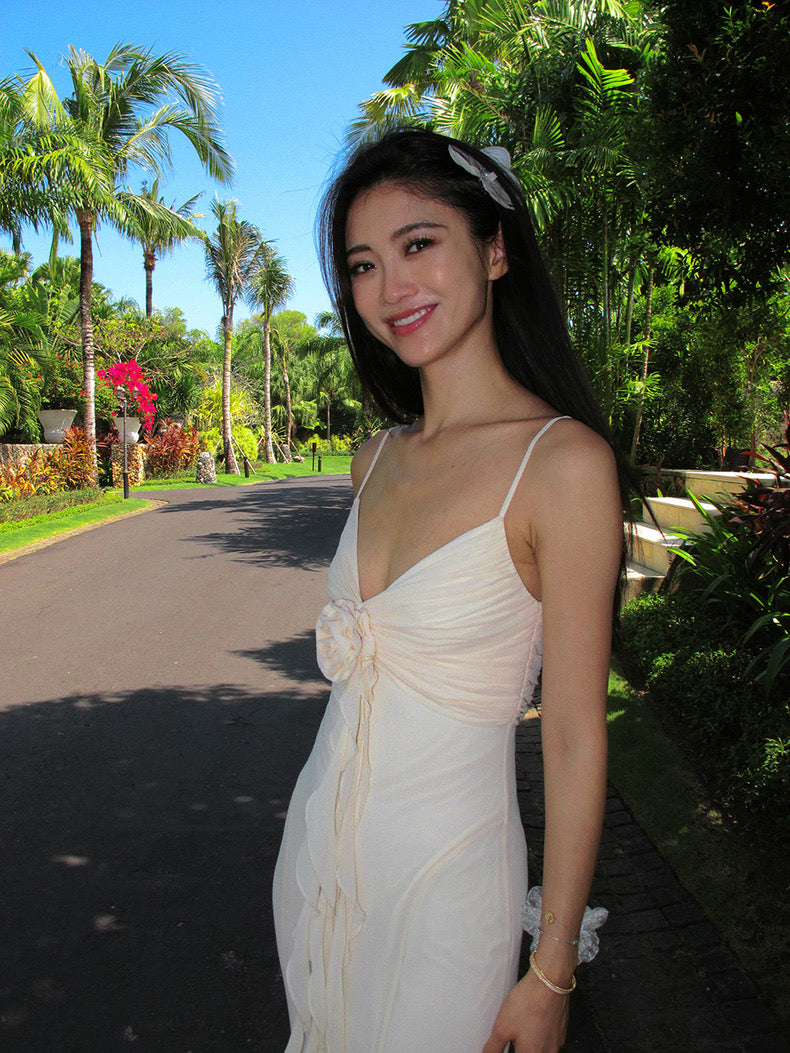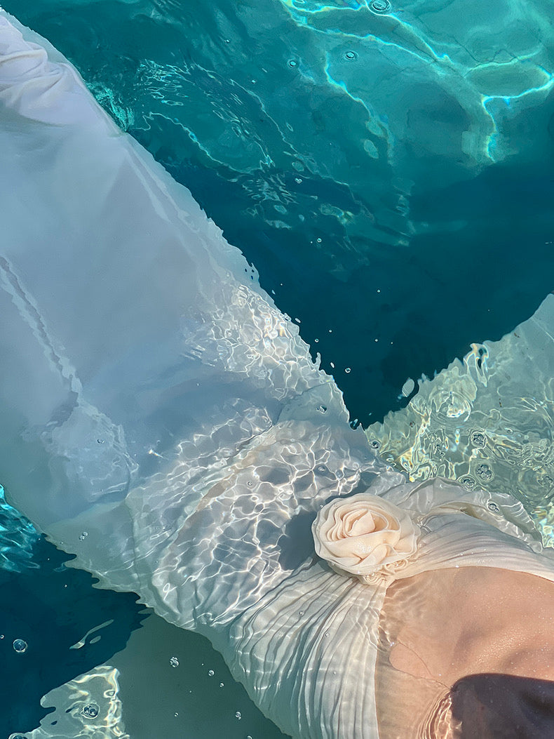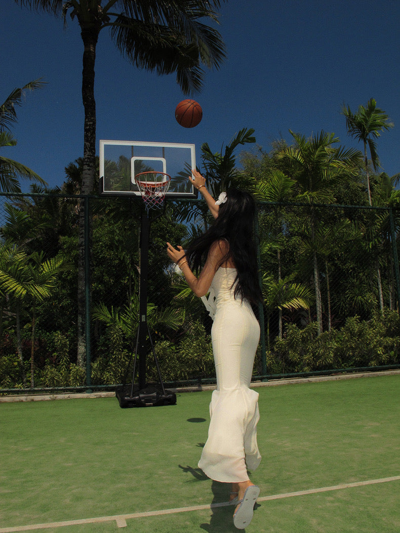 This elegant and romantic Owena dress is a perfect choice for vacations, blending style and sophistication effortlessly. Designed with just the right amount of skin exposure, the flowing fishtail skirt catches the breeze, creating a graceful silhouette with every step.