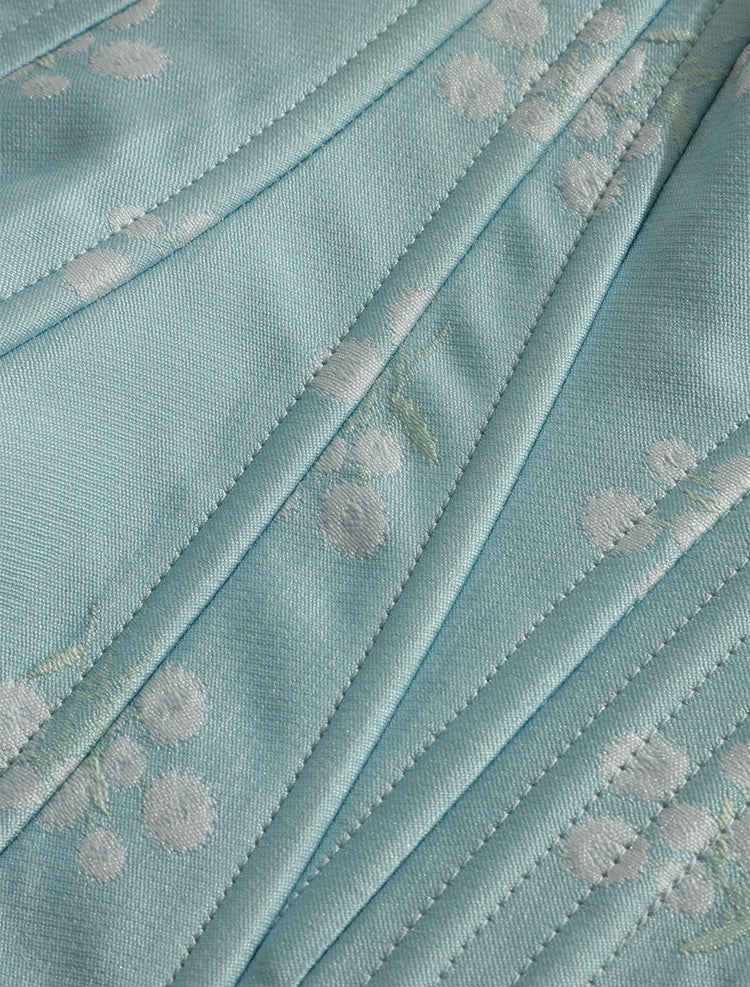 Made from 100% cotton jacquard, the fabric feels soft, crisp, and breathable, with a delicate floral texture that brings out that timeless, refined charm. Even in white, the high-density weave keeps it reassuringly opaque, while the full cotton gauze lining adds an extra layer of softness and coverage—no sheerness, no worries.