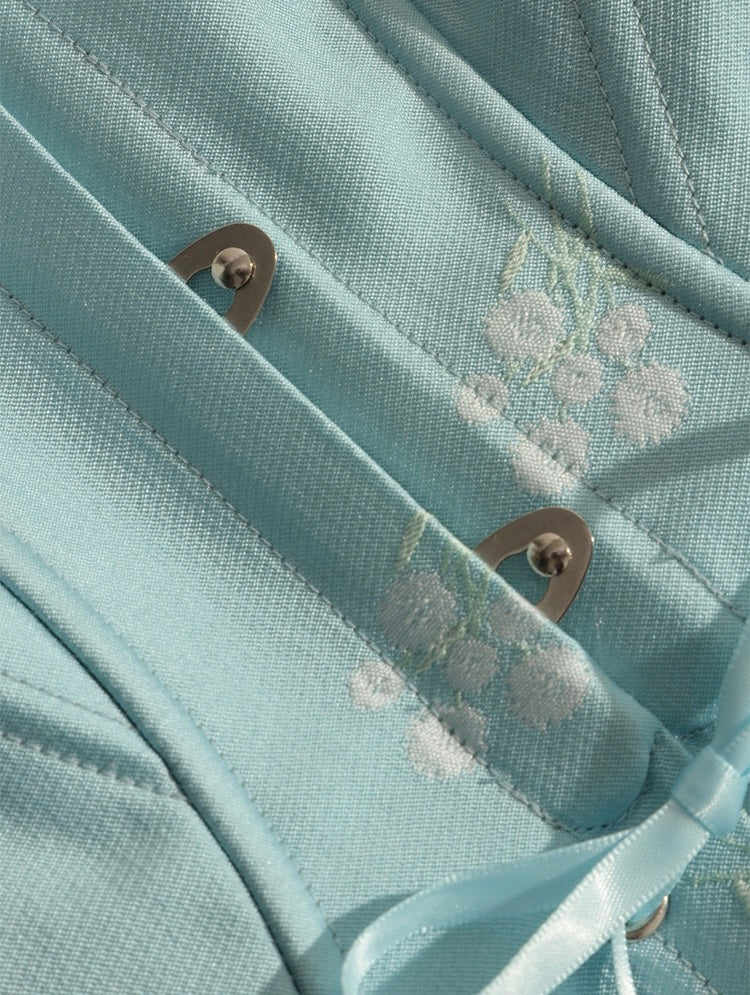 At the back, the lace-up ties cinch at the narrowest point of the waist to create that ideal hourglass curve. The waist is cleverly divided into two adjustable sections, allowing for a more personalized, flattering fit. A row of polished metal hook-and-eye closures at the center front ensures ease, while grommeted lacing at the lower half lets you shape to your liking.