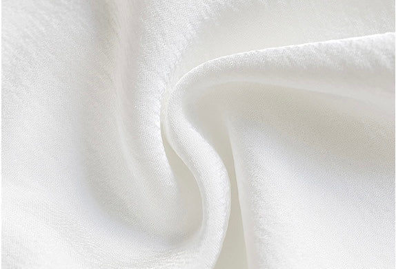 Crafted from a lightweight acetate-blend satin, the fabric has a soft, breathable feel with a gentle glow — like a built-in soft-focus filter.