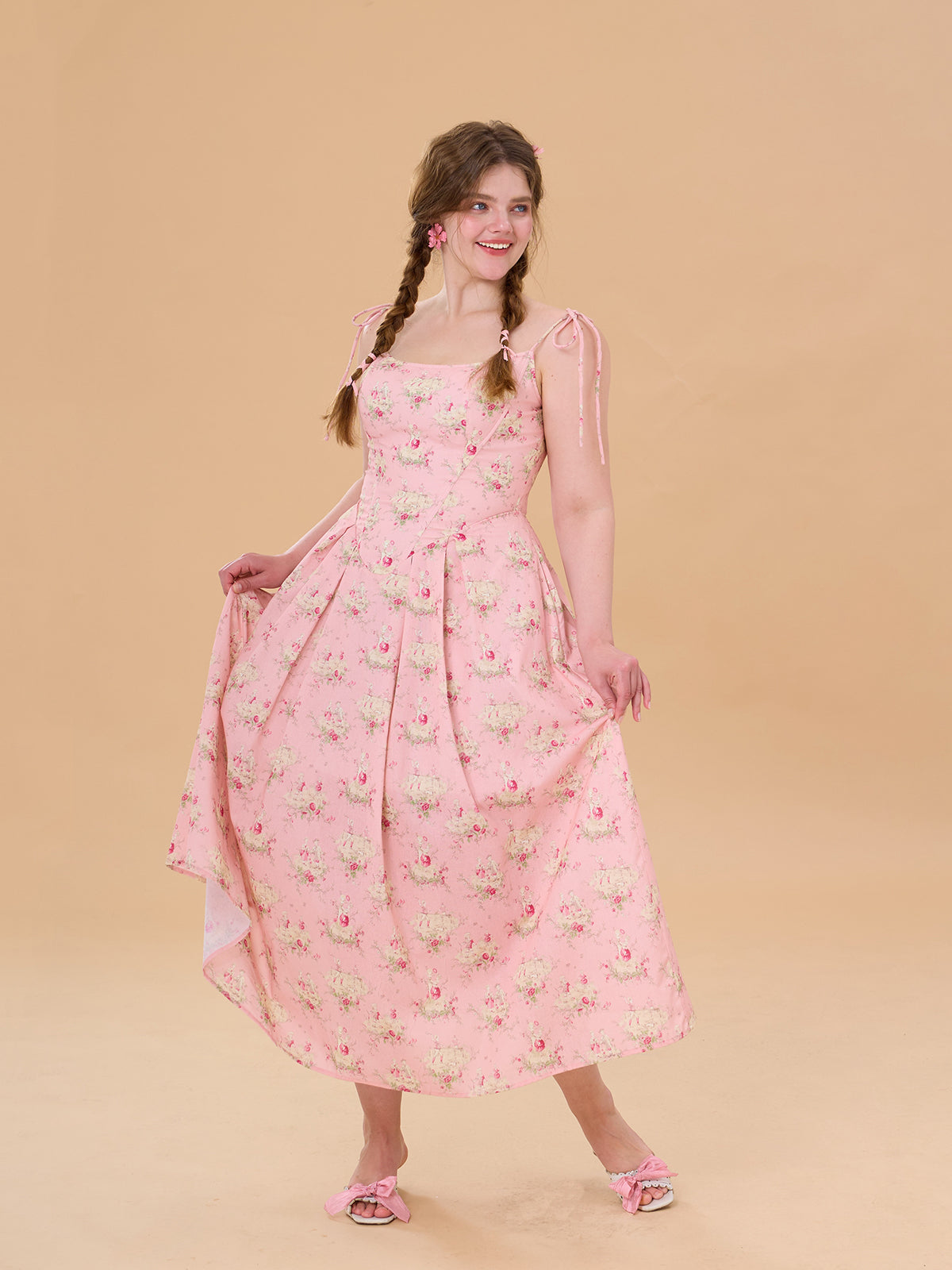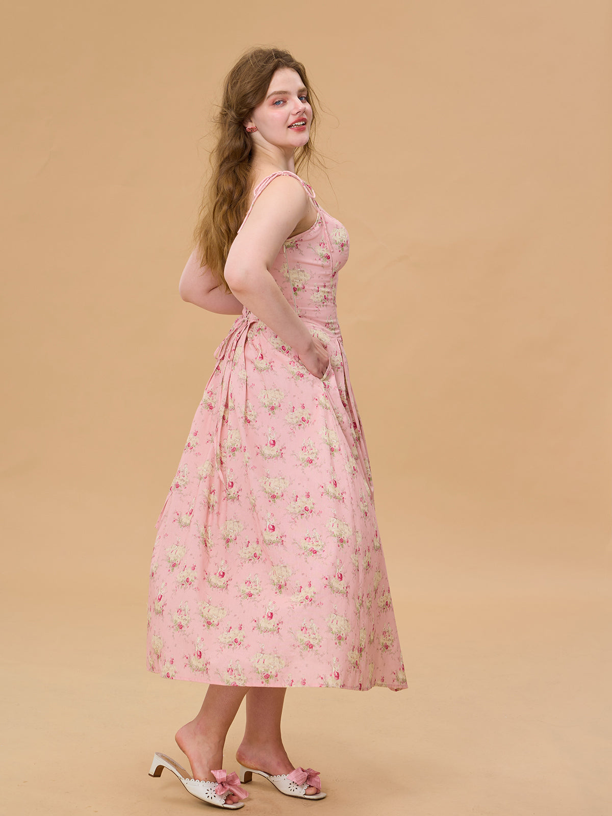 The dress's structured hourglass support features delightful fishbone detailing, offering flattering shaping that enhances your natural curves. And let’s talk about that fabulous full skirt! It adds a beautiful flow to your every step while providing generous coverage, making it perfect for twirling or just enjoying a breezy day out. Convenience meets chic with cleverly hidden side pockets, so you can keep your essentials close without sacrificing style. To top it all off, the adjustable back ties let you further customize the fit for maximum comfort and versatility.