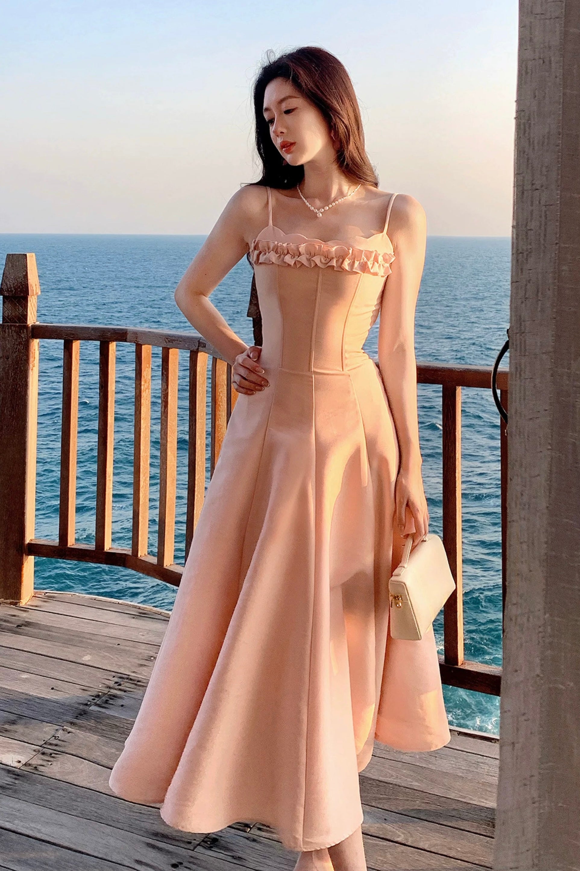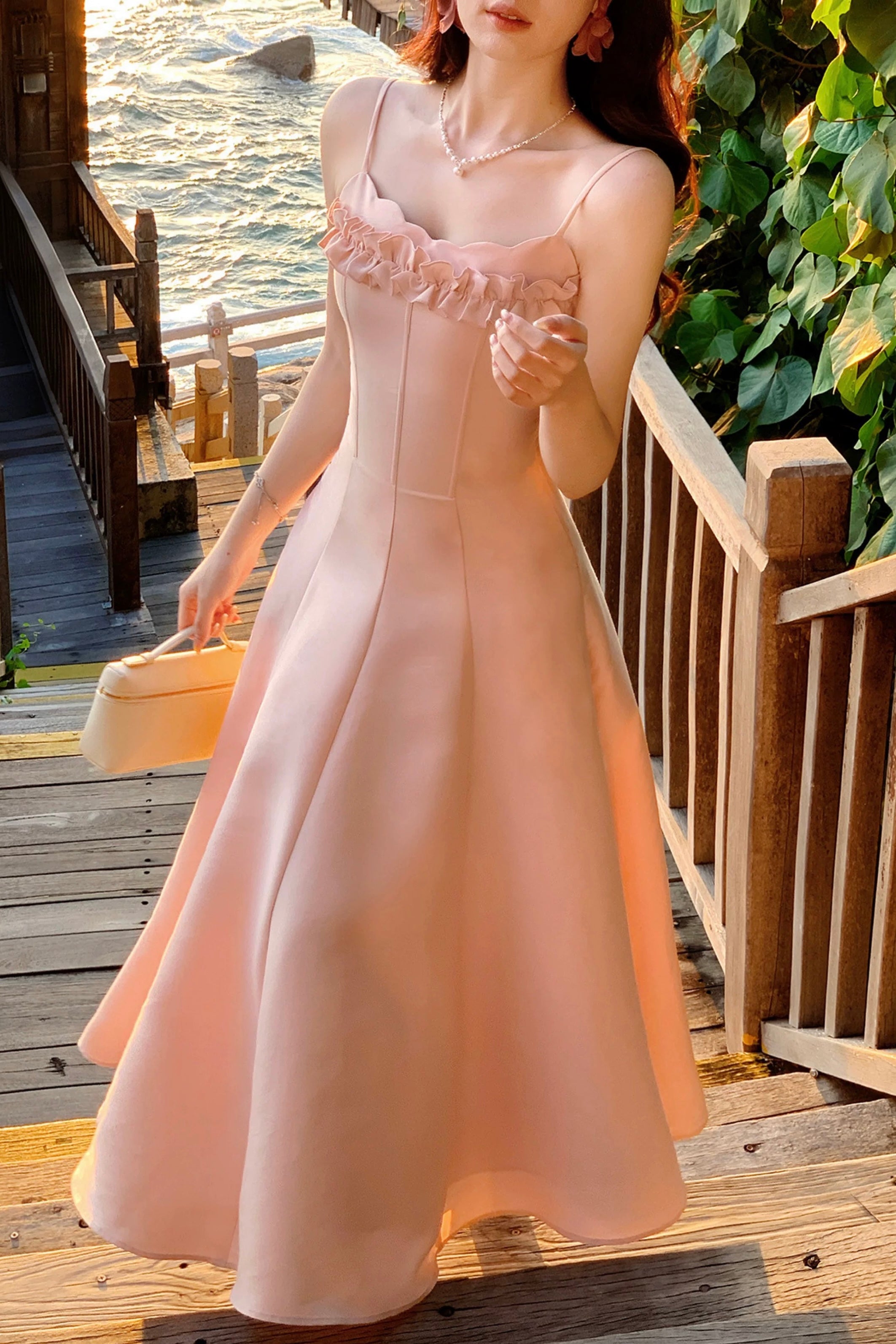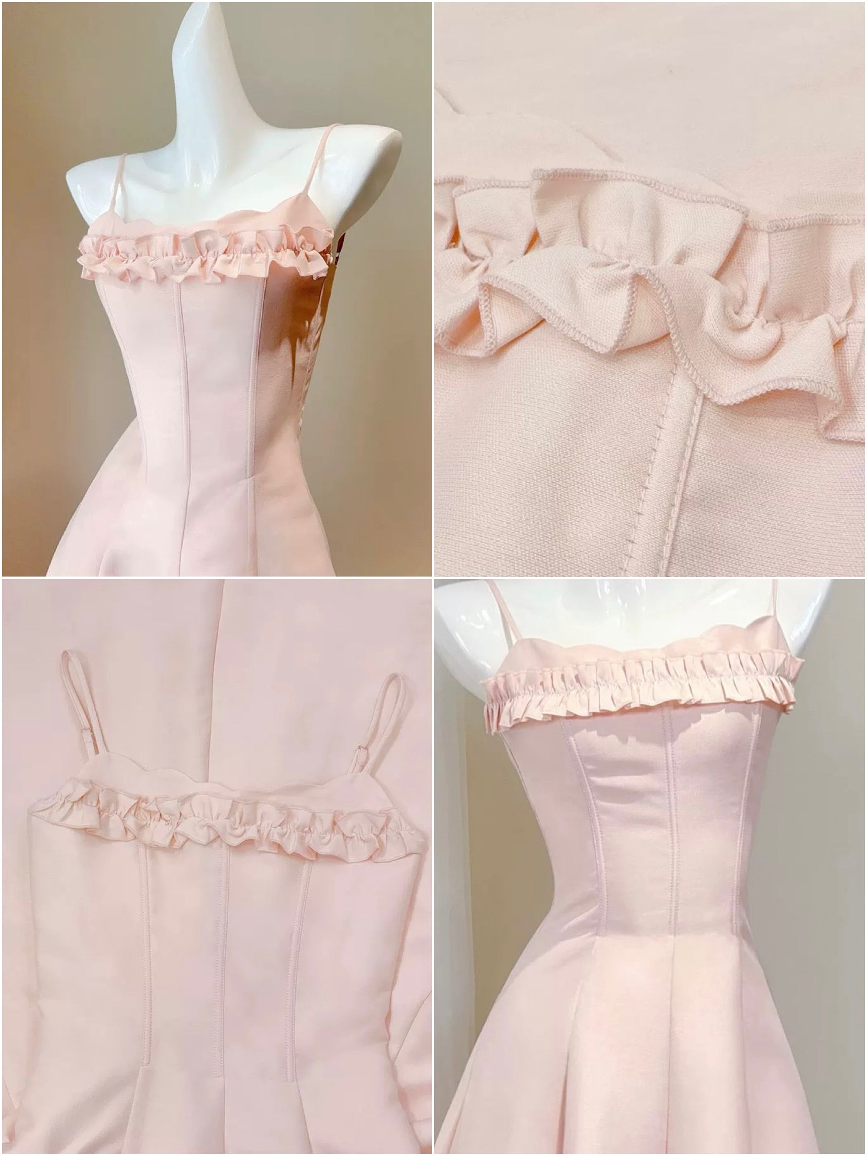 We designed ‘Cassidy’ with delicate slim straps that frame the shoulders and highlight the collarbones so beautifully, while the petal-inspired neckline softly traces the bust for that effortless French allure. The three dimensional ruffled trim across the chest adds layers of sweetness and movement, subtly enhancing the bust shape in the prettiest way – smaller busts feel fuller, fuller busts look refined and elegant. It’s all about balance, and we’ve got dressmaking down to a fine art.