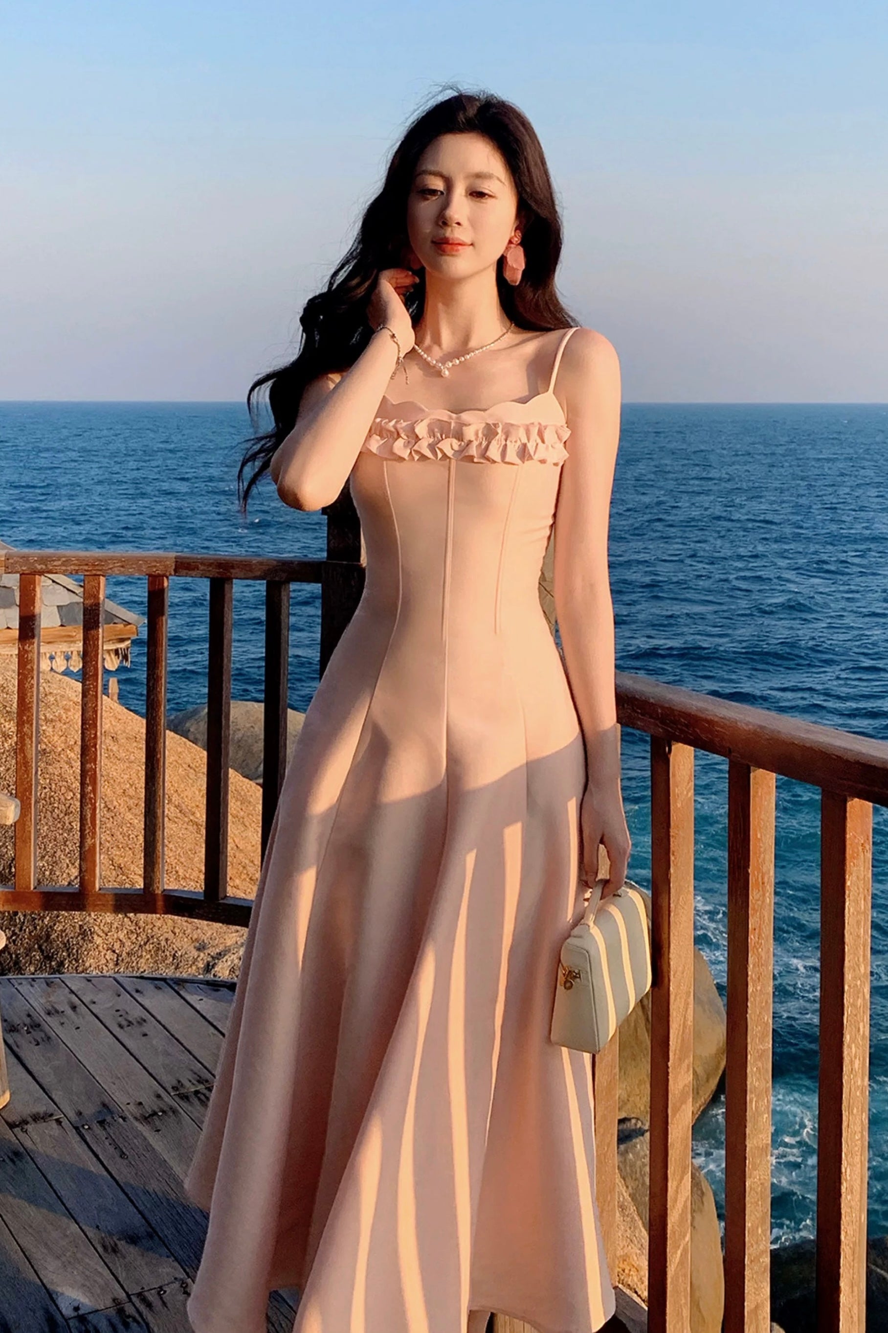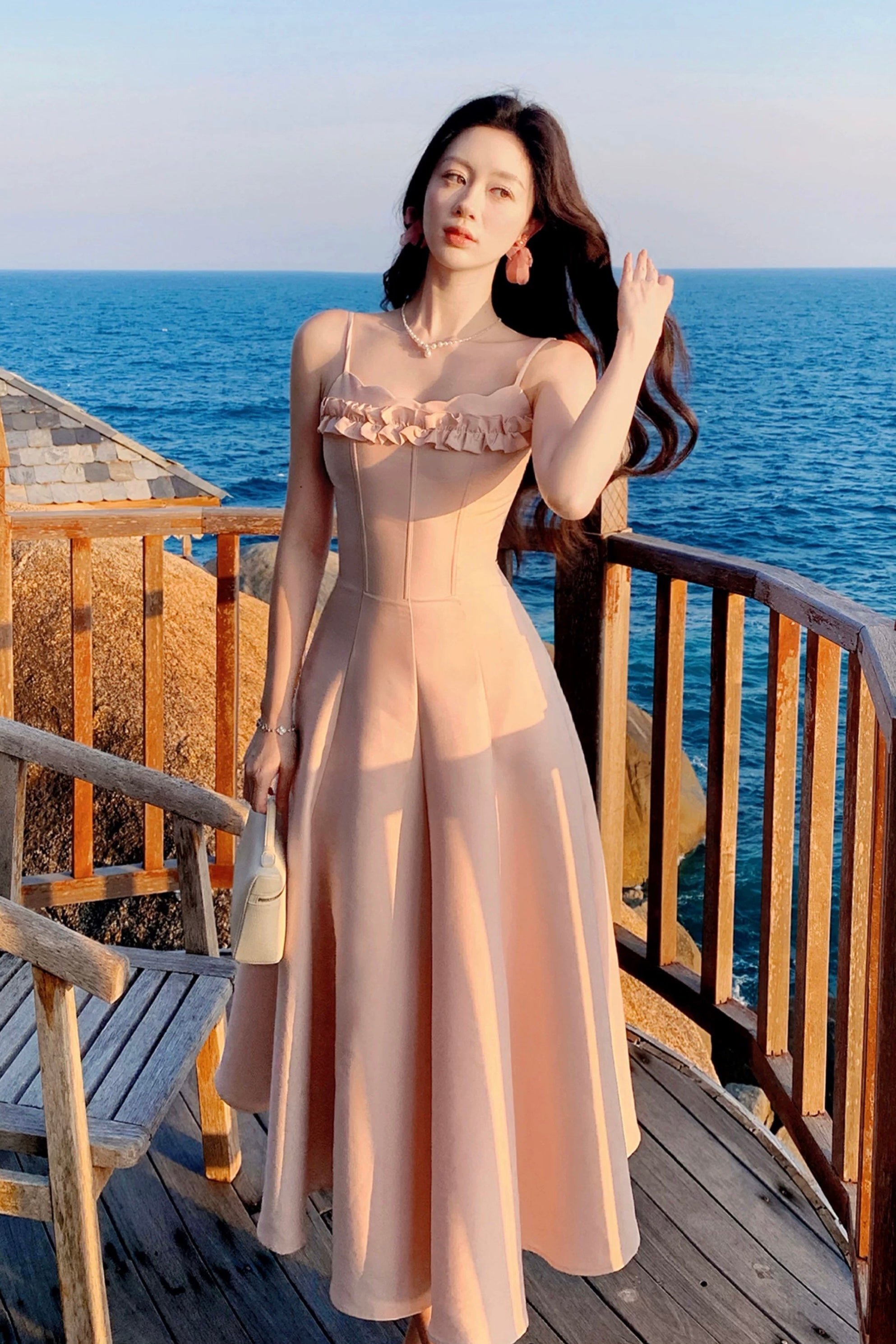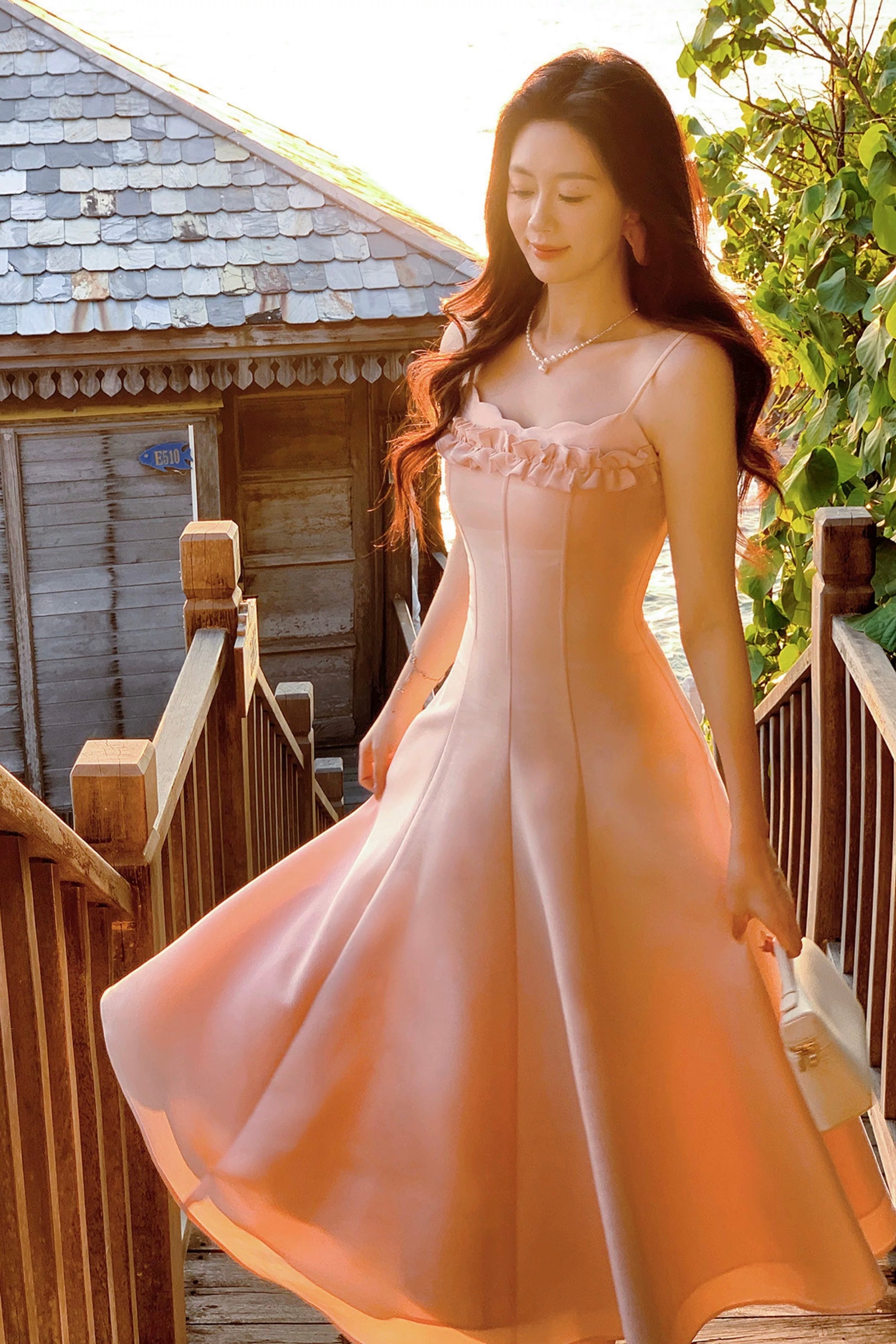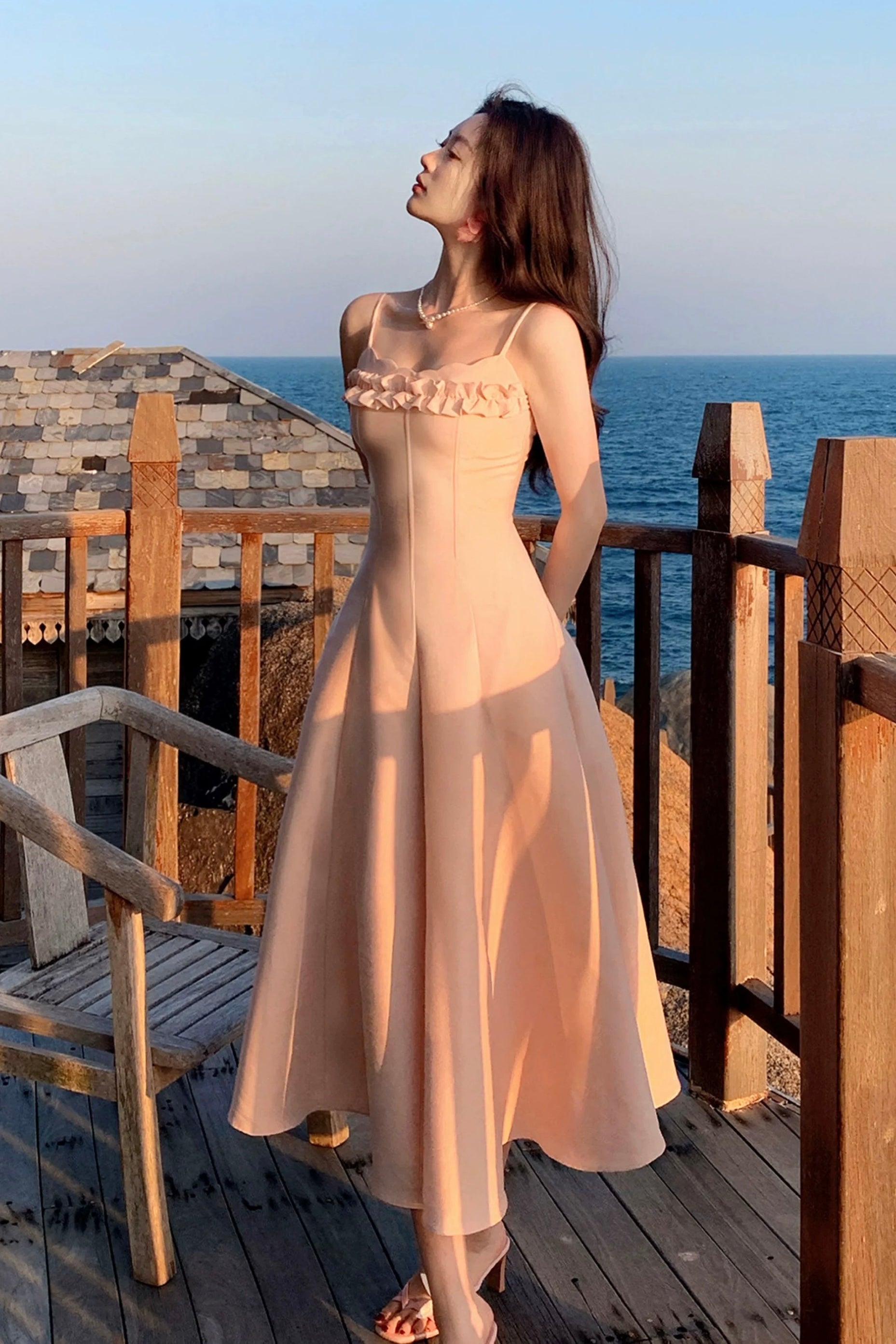 We designed ‘Cassidy’ with delicate slim straps that frame the shoulders and highlight the collarbones so beautifully, while the petal-inspired neckline softly traces the bust for that effortless French allure. The three dimensional ruffled trim across the chest adds layers of sweetness and movement, subtly enhancing the bust shape in the prettiest way – smaller busts feel fuller, fuller busts look refined and elegant. It’s all about balance, and we’ve got dressmaking down to a fine art.